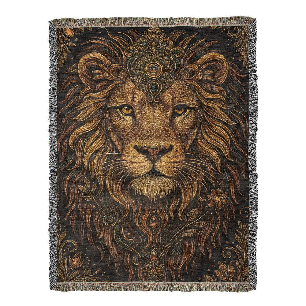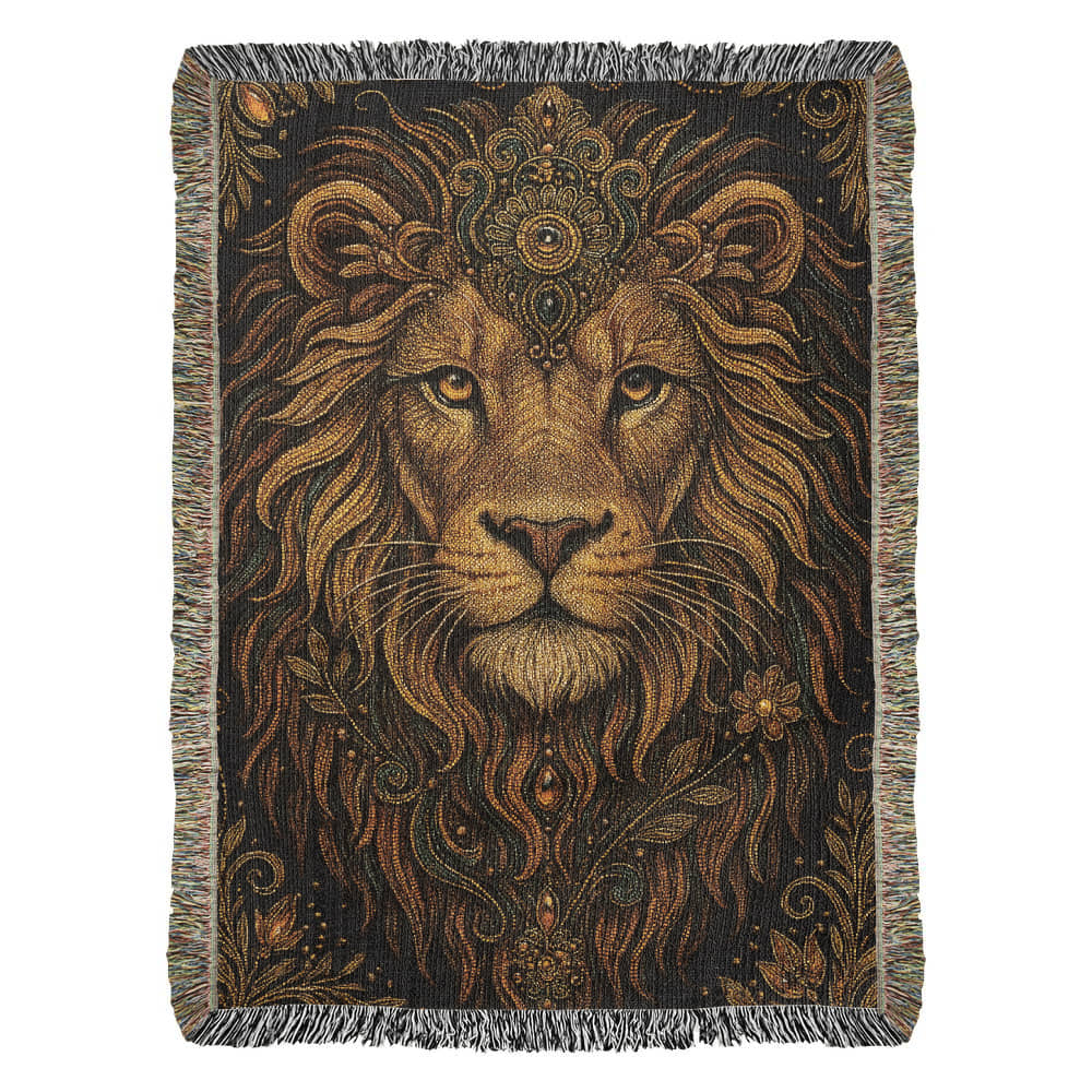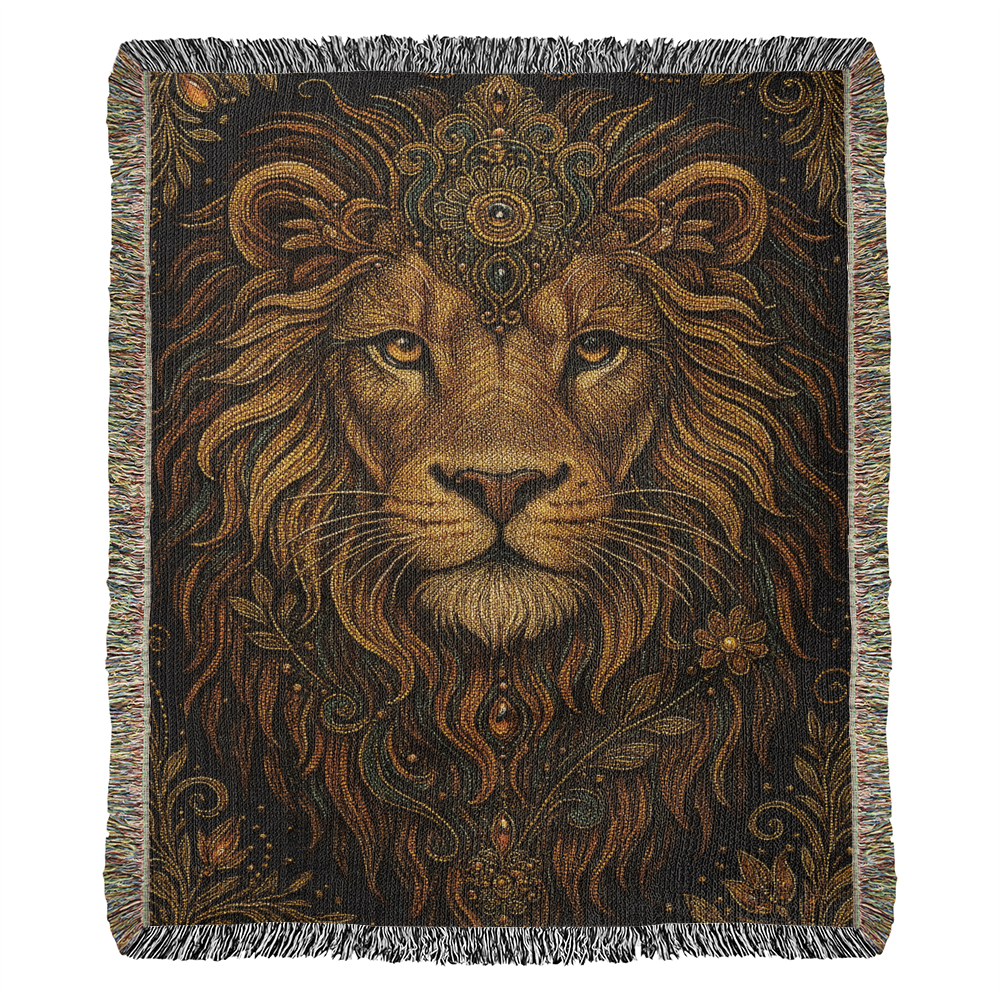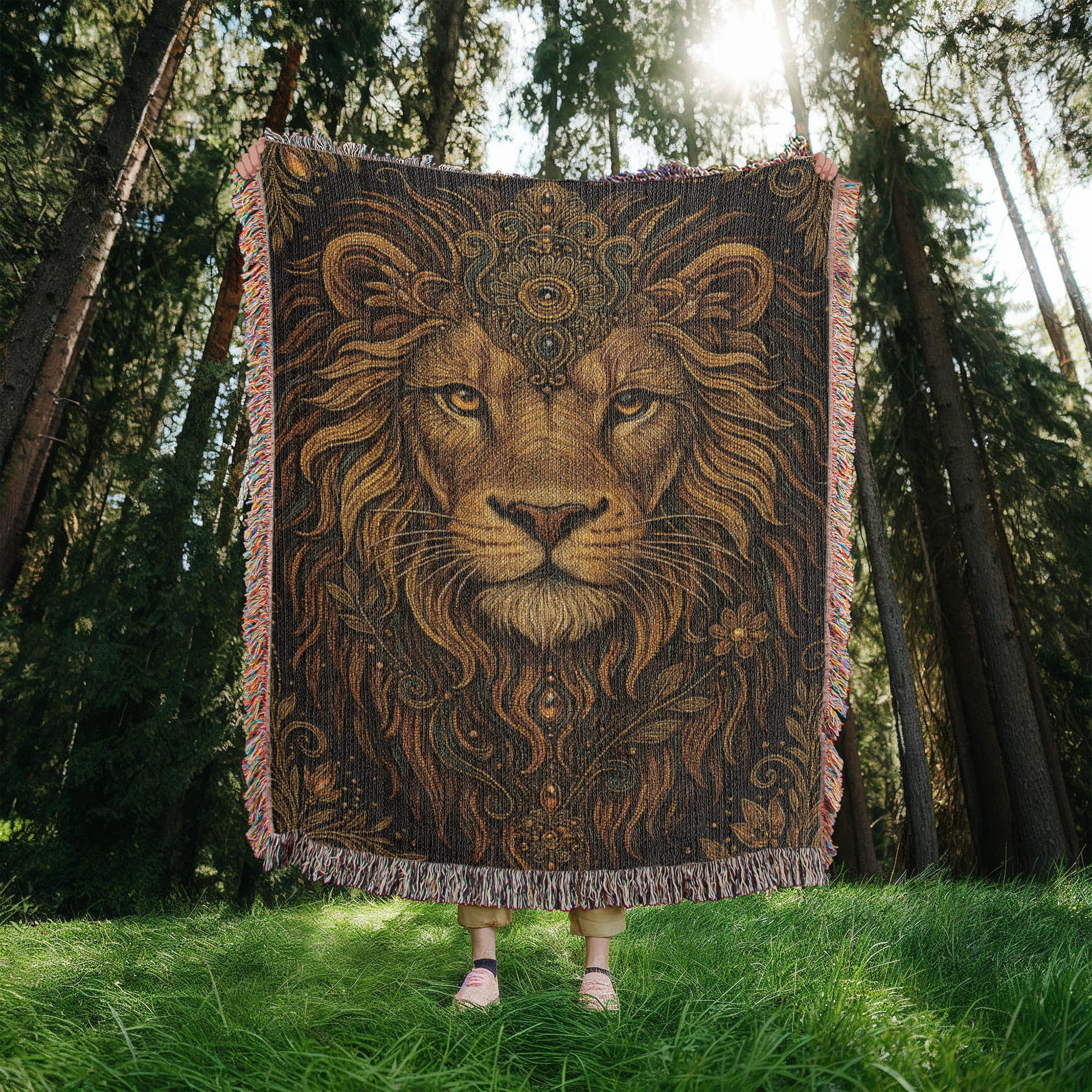 Beaded Lion Blanket – Spiritual Strength & Regal Bohemian Tapestry Throw