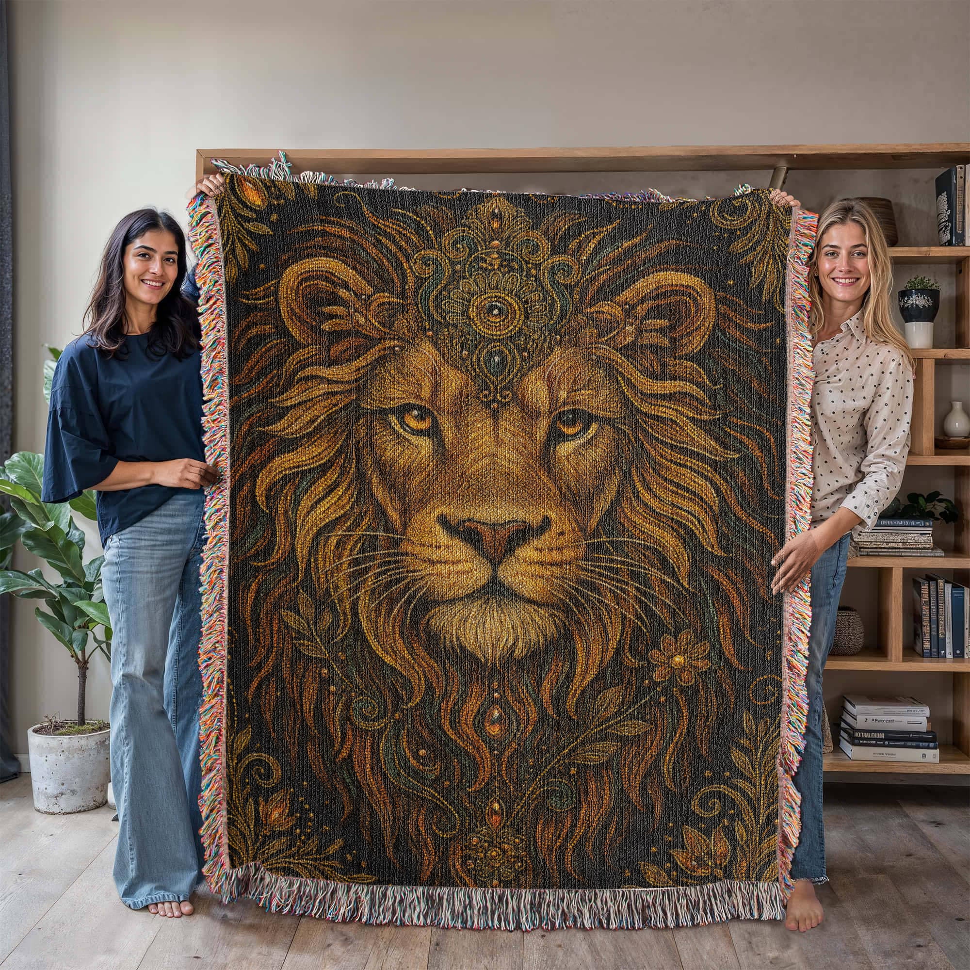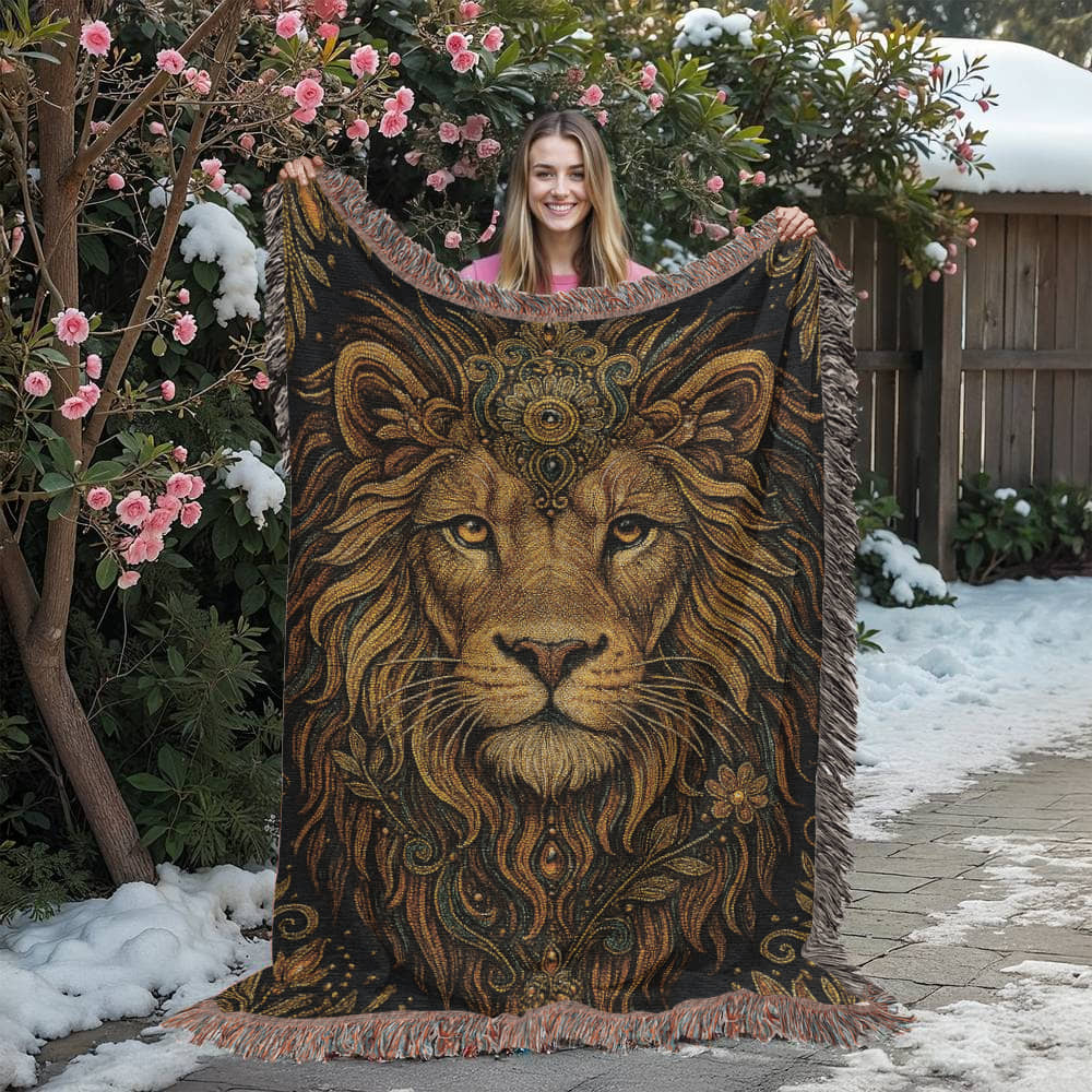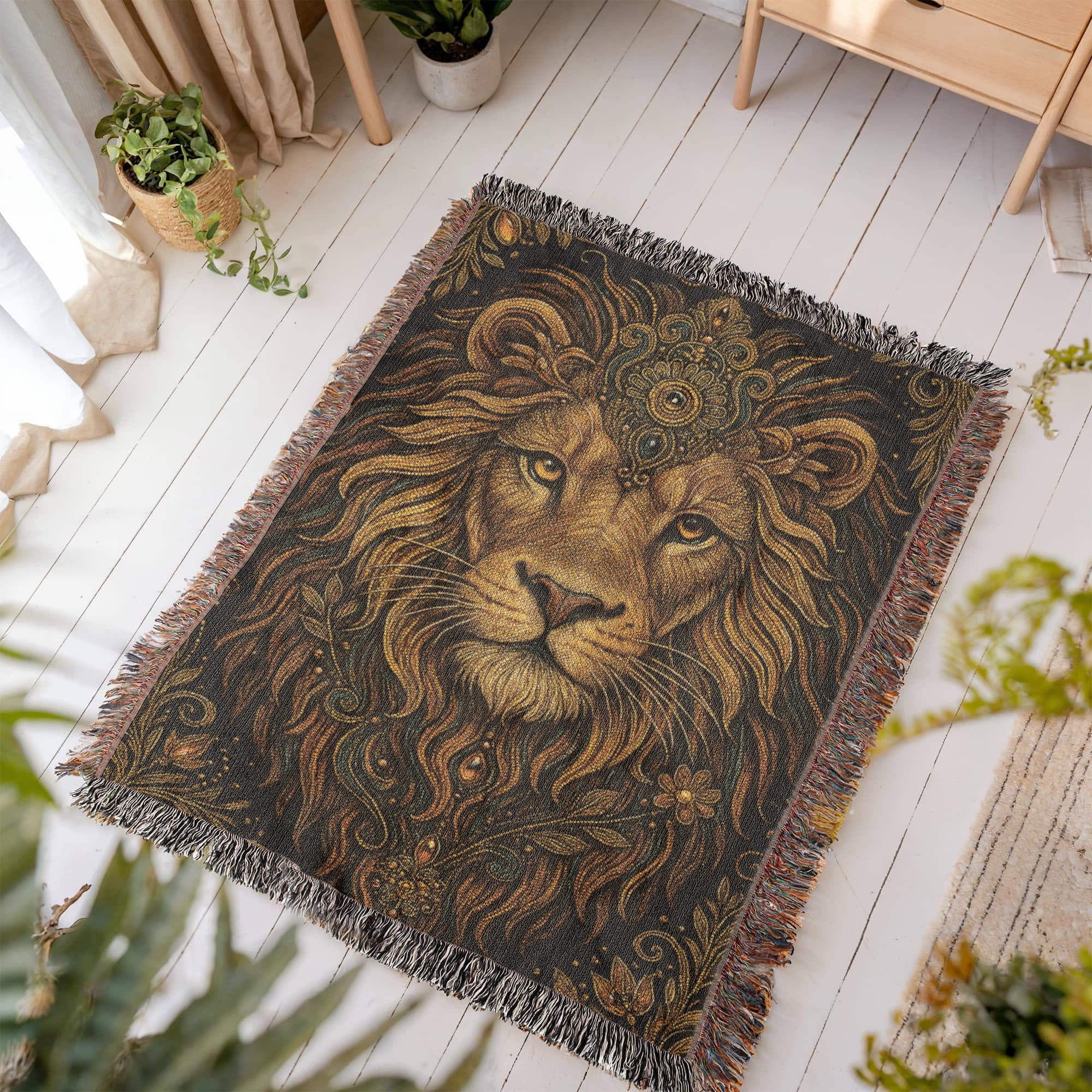 Beaded Lion Blanket – Spiritual Strength & Regal Bohemian Tapestry Throw
