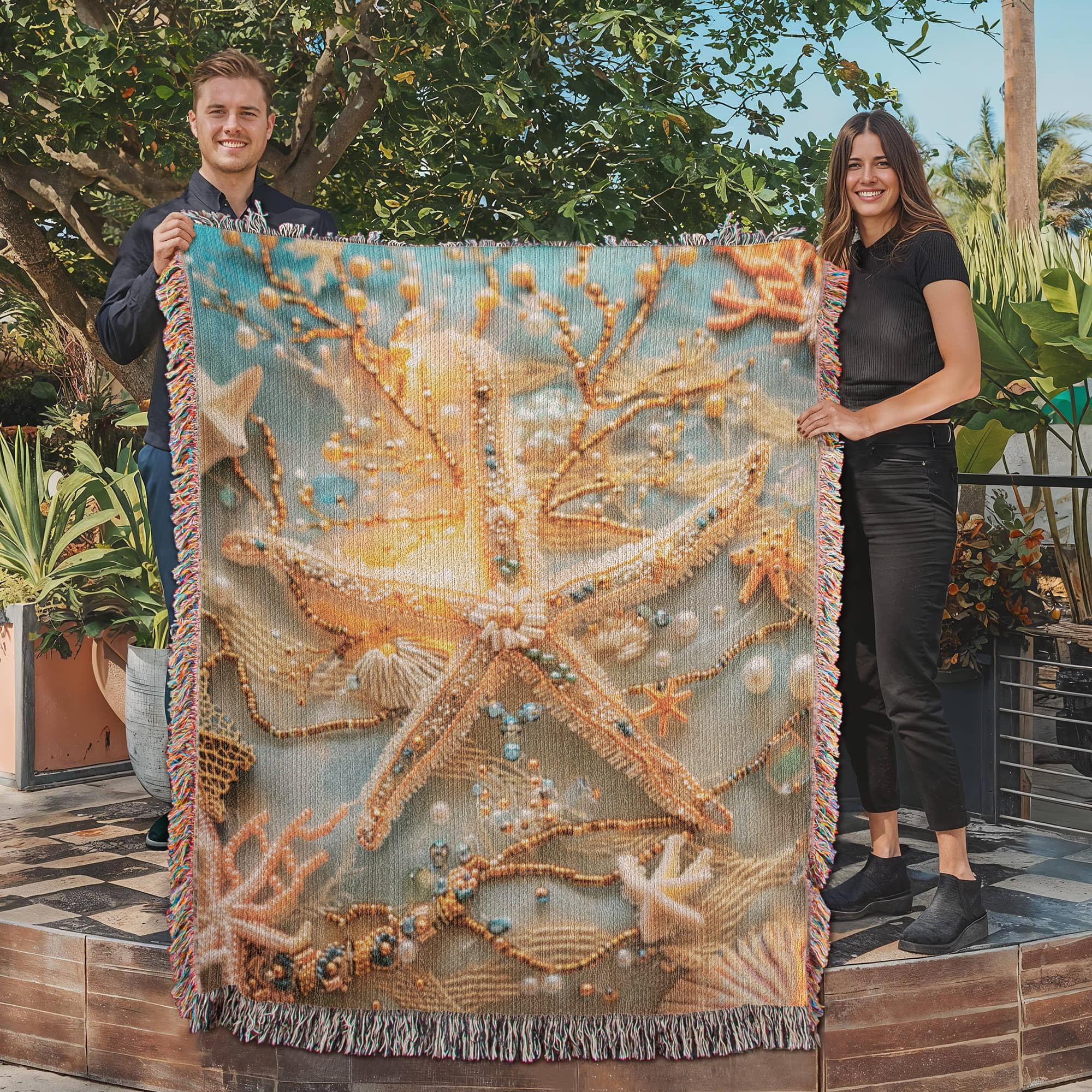 Beaded Look Starfish Blanket – Woven Coastal Fantasy Throw | Ocean-Inspired Decor by Lace & Grit