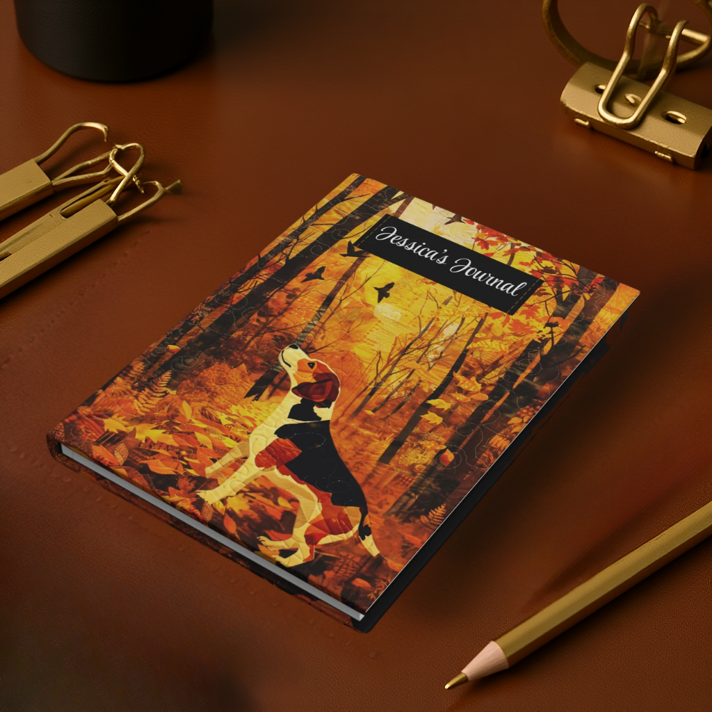 Quilted-Look Beagle Journal - Autumn Woods Scene, Dog Lover Gift