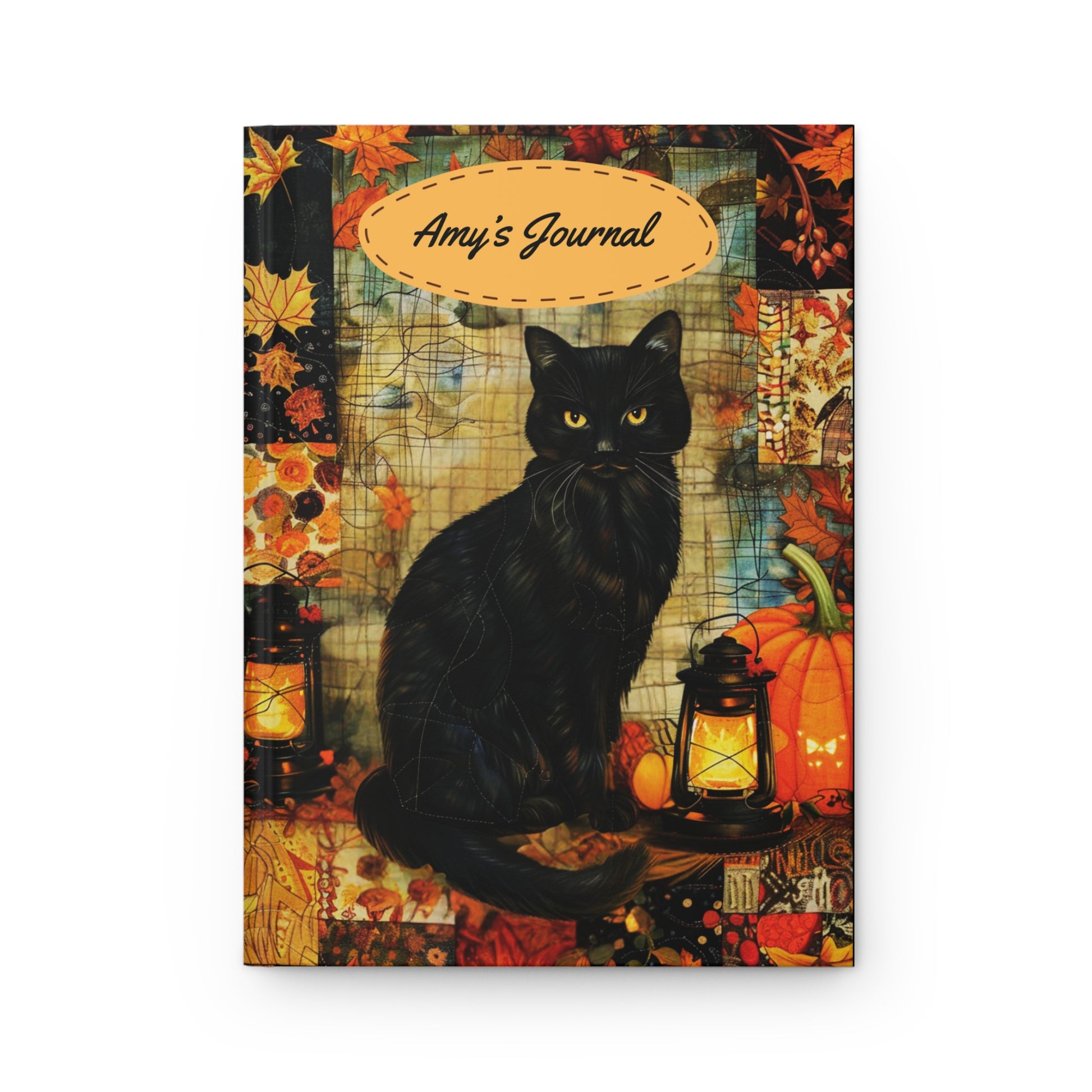 Quilted-Look Black Cat Journal - Autumn Lantern Scene, Cat Lover Gift