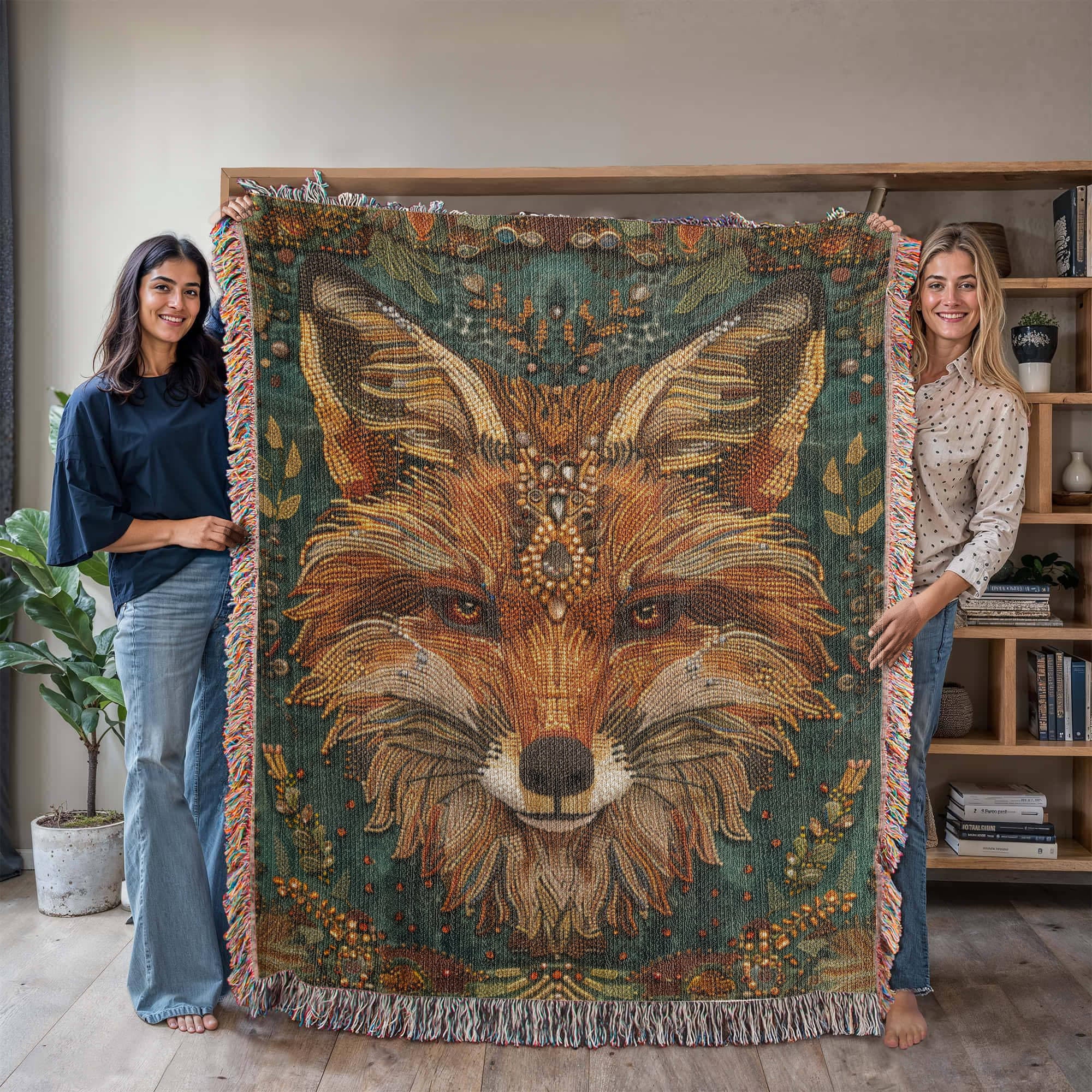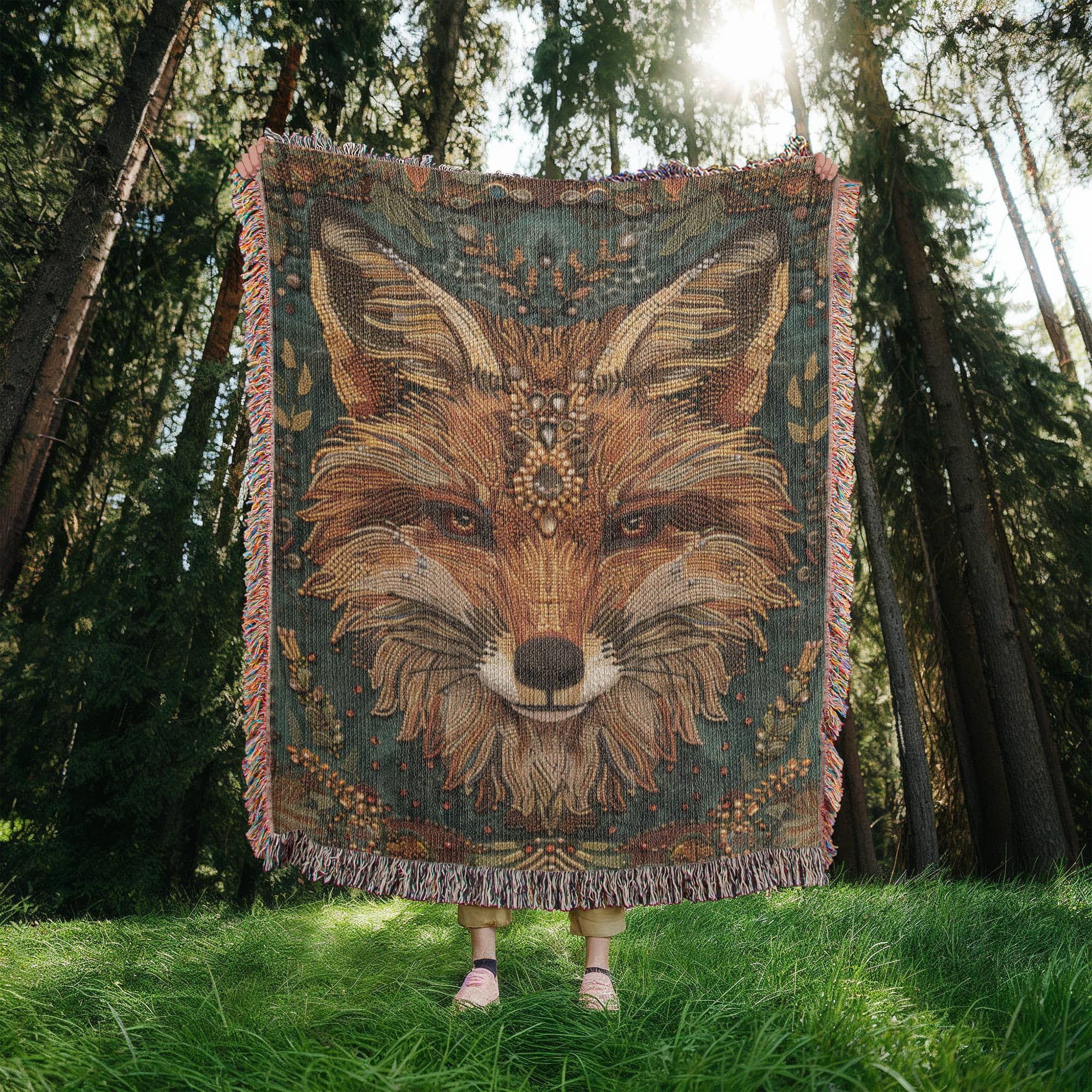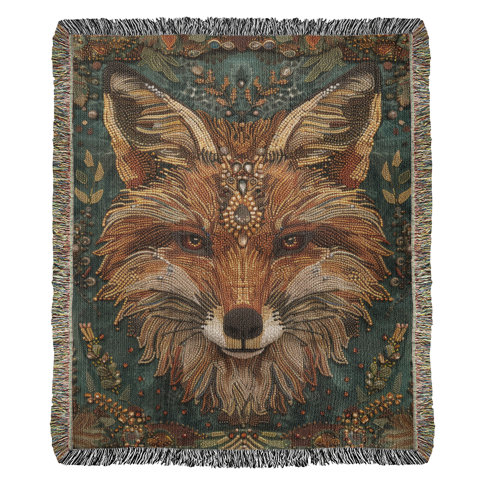 🧡 Bring home the mystique of the wild with this intricately beaded fox design woven blanket. Adorned with detailed beadwork-style accents and earthy autumn tones, this stunning throw adds warmth and artistry to any space. The rich forest green background enhances the fox's wise, centered gazeβ€”perfect for cozy evenings or rustic wall display.