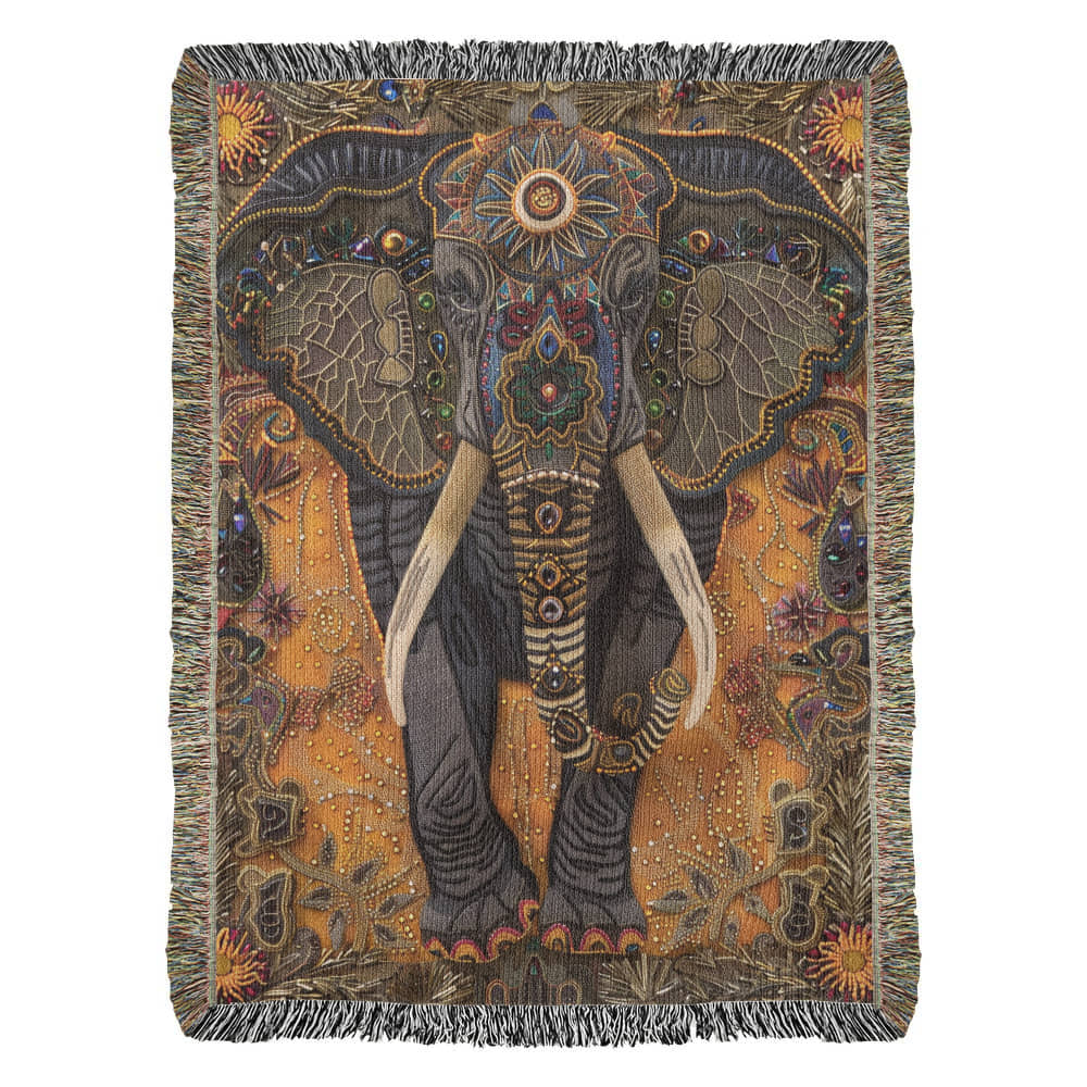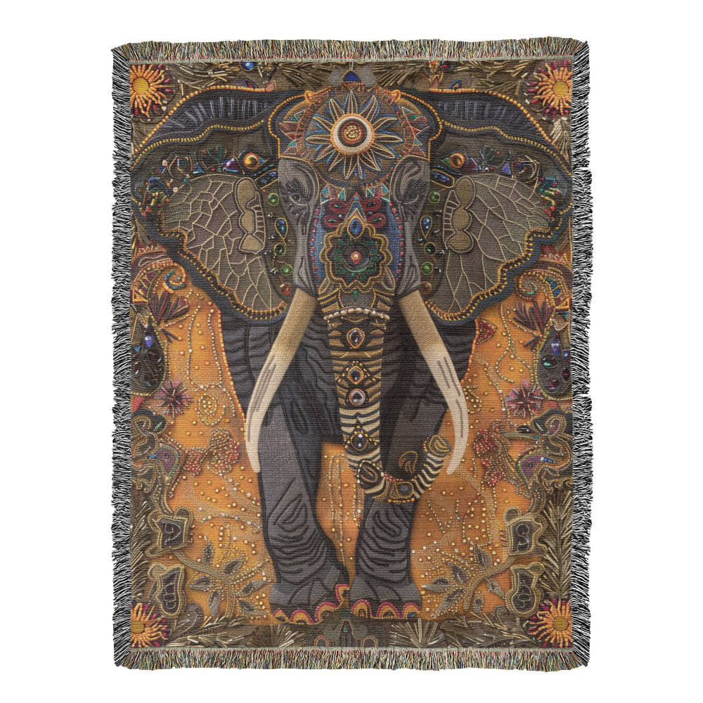 Infuse your space with bohemian warmth and wisdom through this Beaded Look Elephant Blanket, a stunning design that celebrates strength and serenity. Adorned with intricate tribal floral accents, this beaded-look woven design captures the elegance of handcrafted beadwork and embroidery. Rich earthy tones and ornate detailing create a piece that radiates grounded beauty, making it the perfect centerpiece for any cozy or eclectic décor style.