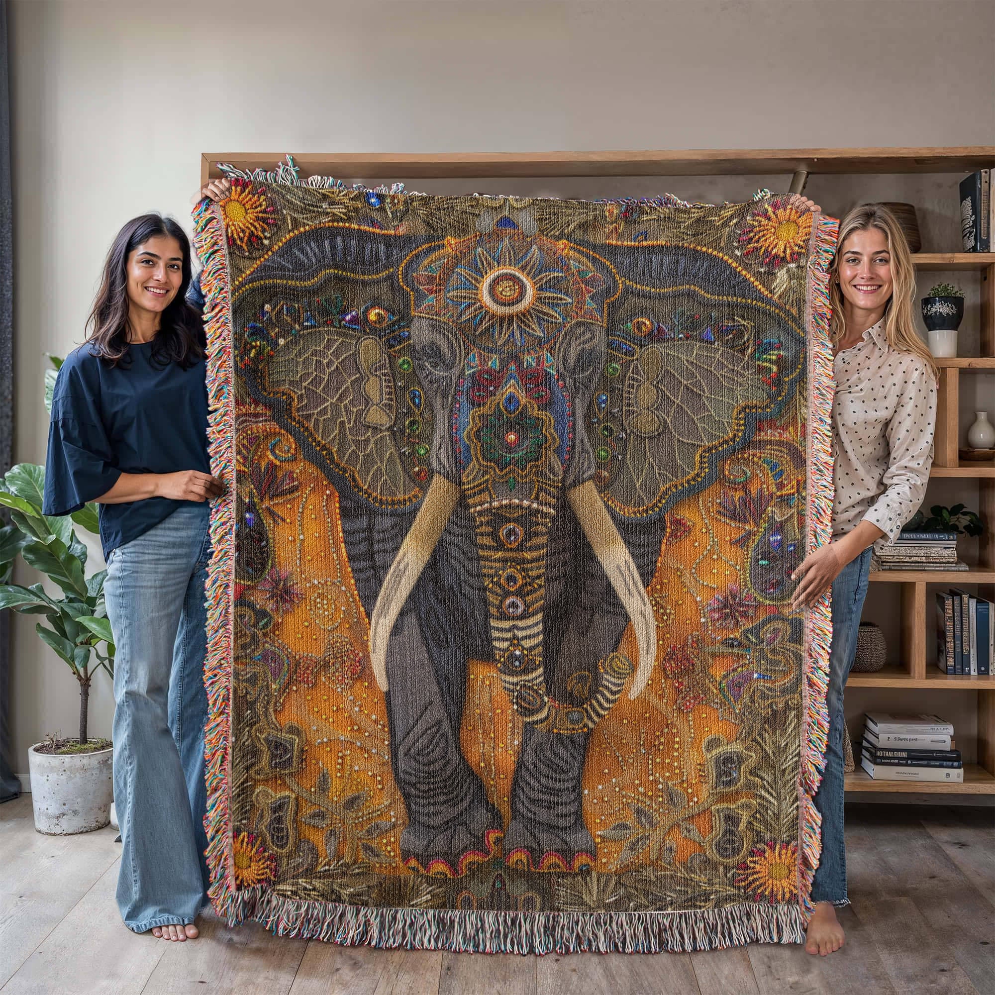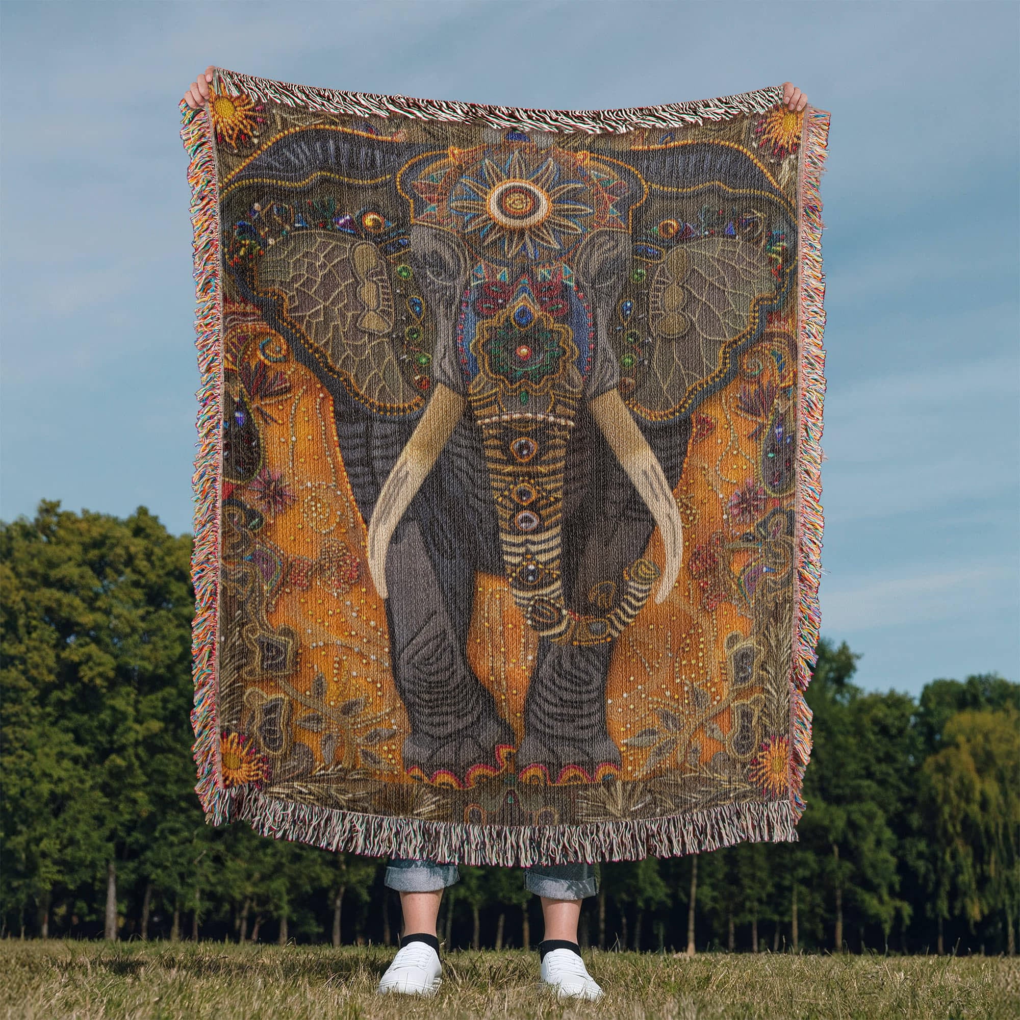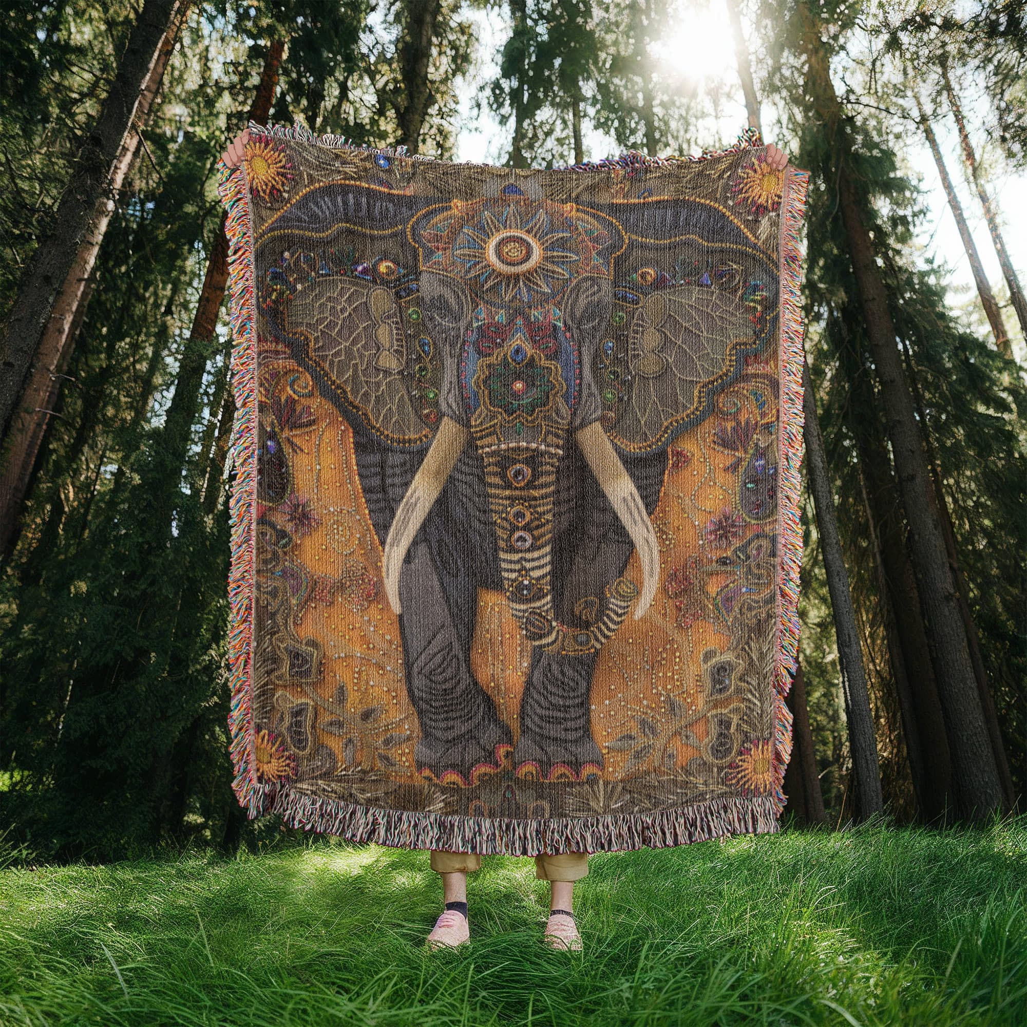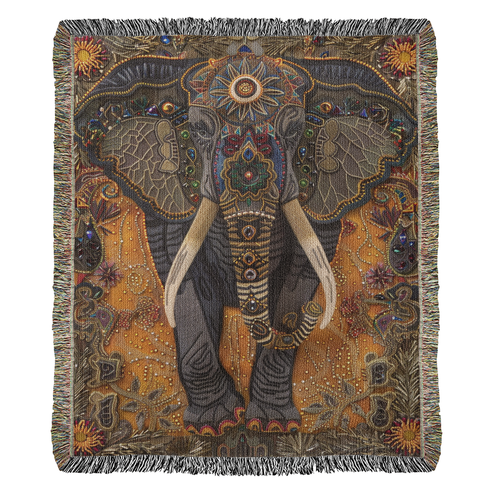 Please note: Our blankets feature a printed woven illusion of textured beads and embroidery, not raised or stitched surfaces. The design is smooth to the touch — a work of art meant to evoke the beauty of handcrafted textiles. 🐘