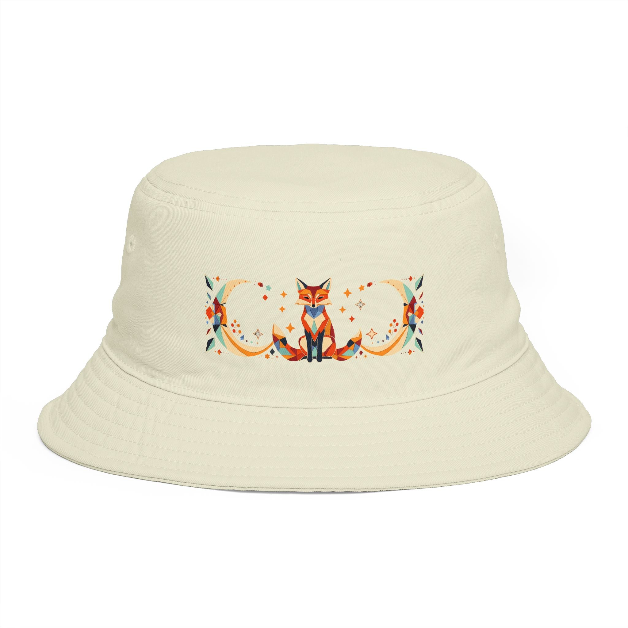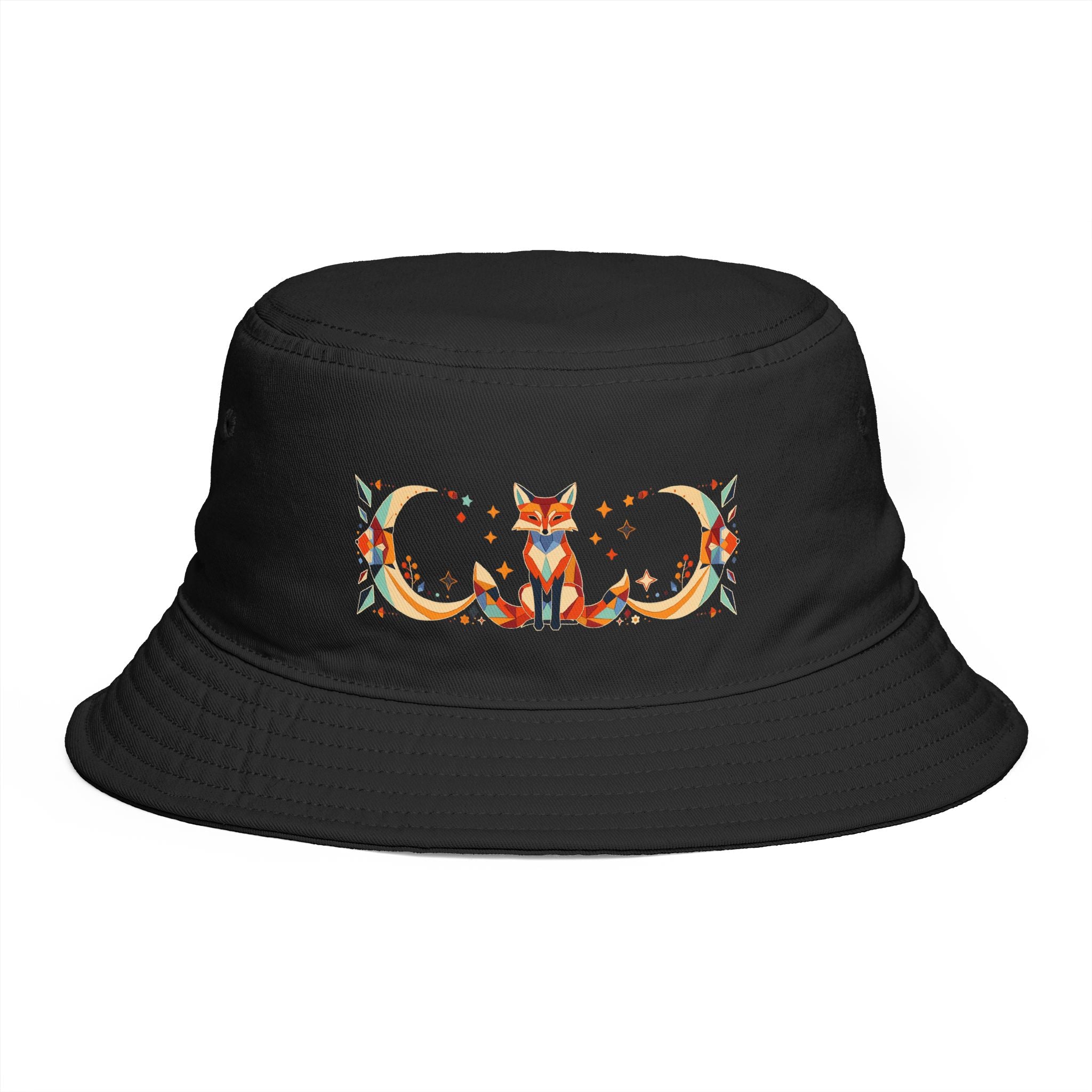 Celestial Fox Bucket Hat Step into the realm of moonlight and mystique with this embroidered-look boho bucket hat. Featuring a regal fox framed by crescent moons and stardust, this design blends earthy tones with cosmic elegance. The bold embroidered-look texture adds depth and charm, bringing a touch of magic to any outfit.