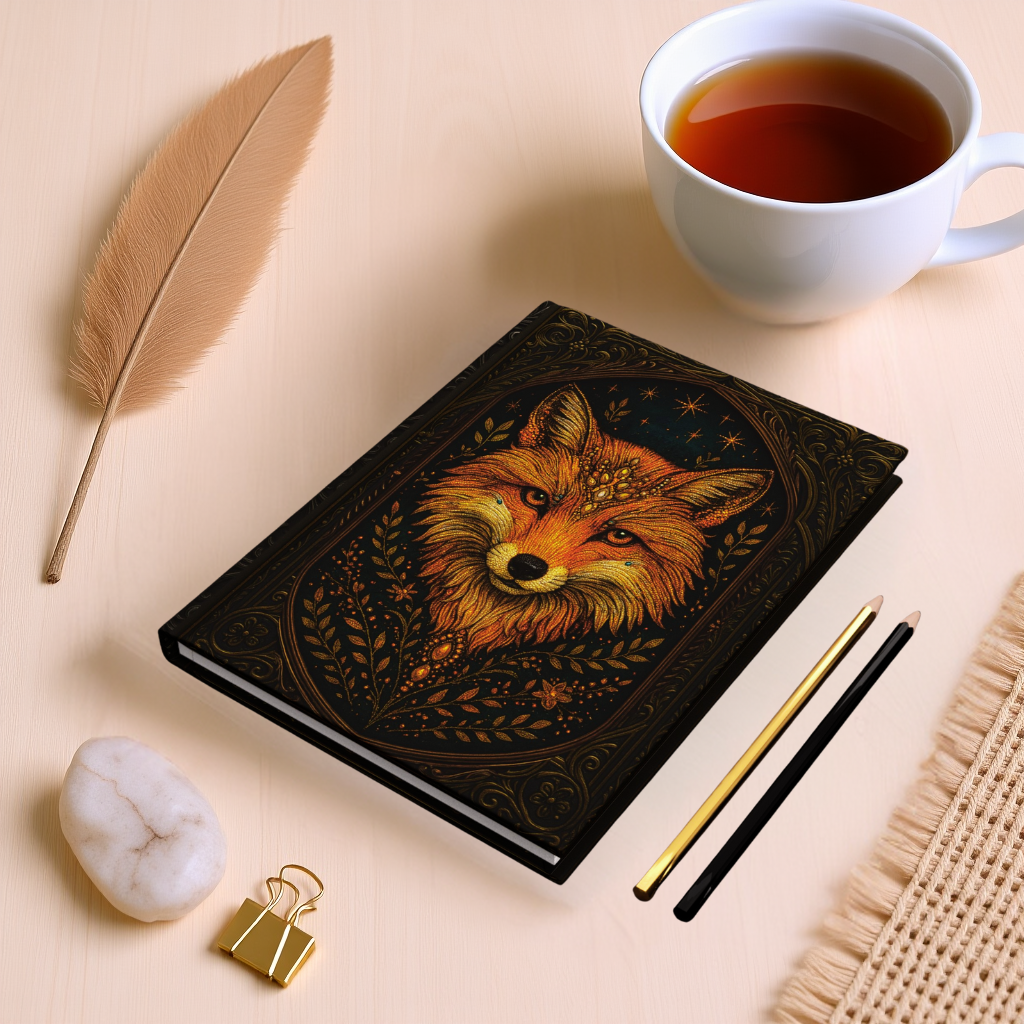 Some wisdom wears fur and walks softly. This enchanting fox journal captures the spirit of quiet cunning, gentle strength, and nature’s quiet magic. With piercing eyes, flowing fur, and golden celestial details, it’s a mystical space for writing, dreaming, and soul-searching.