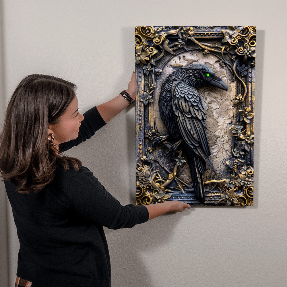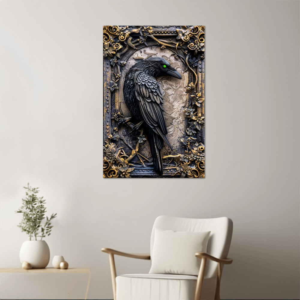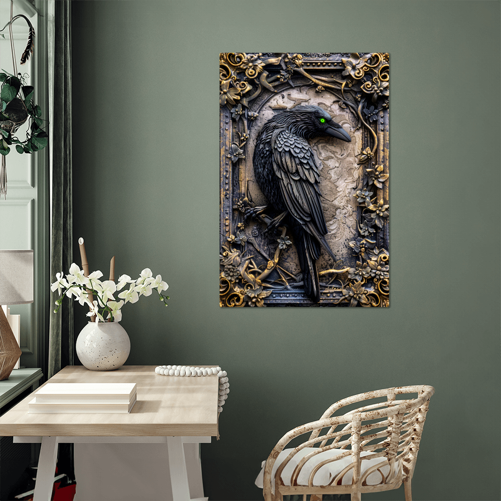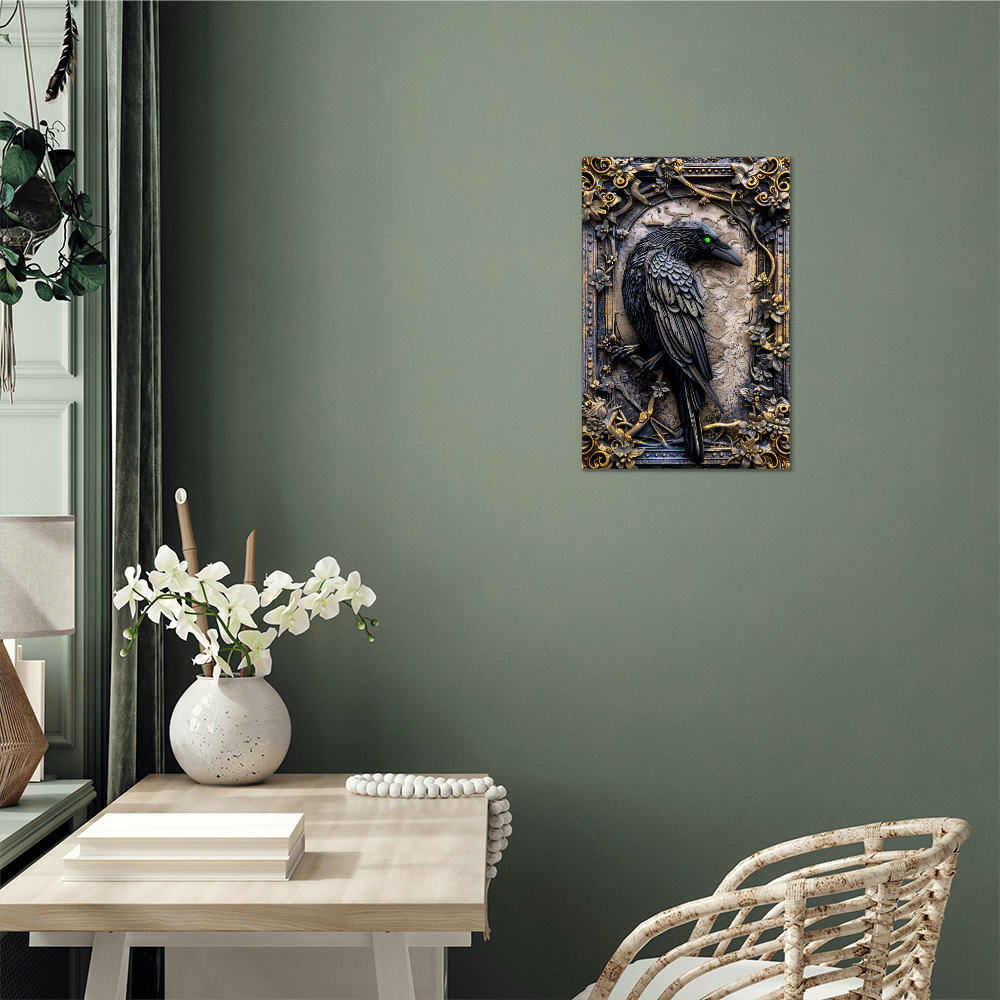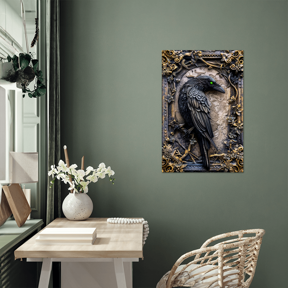 Corvex | Raven Metal Wall Art – High Gloss Print with Embossed-Style Detail (Not 3D)