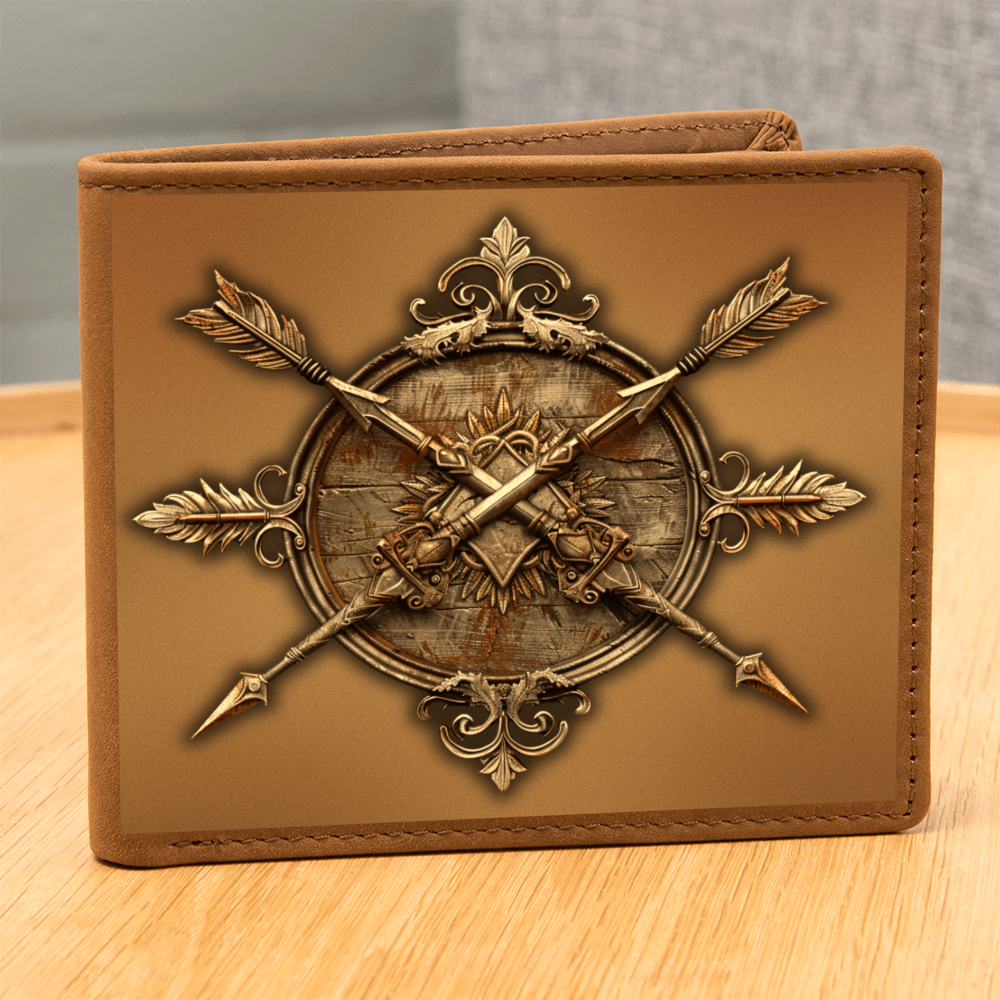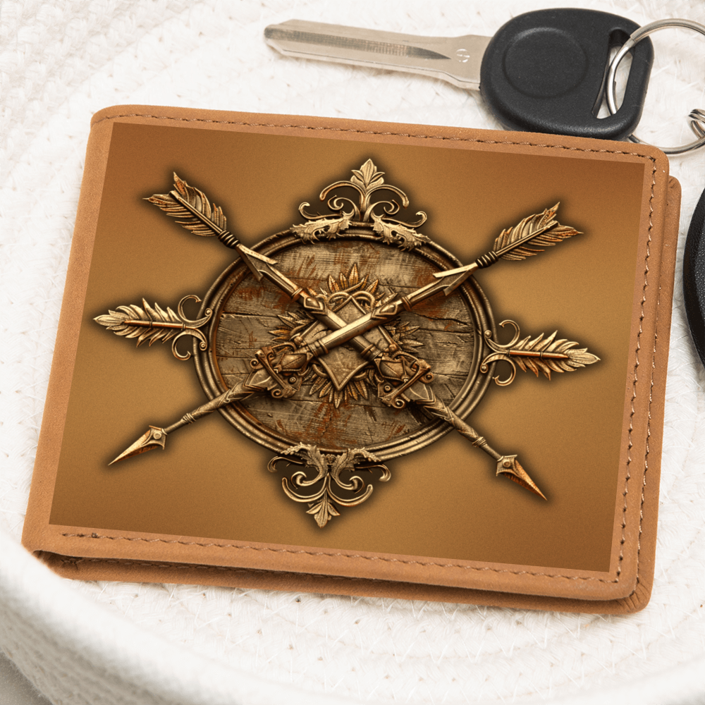 Armory Crossed Spears & Arrows Embossed Look Leather Wallet – Medieval Armory Collection