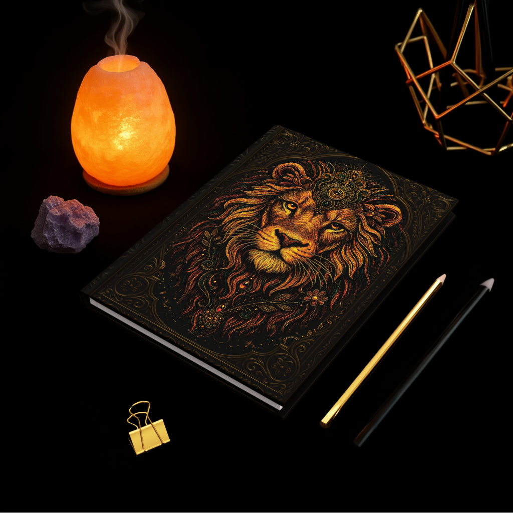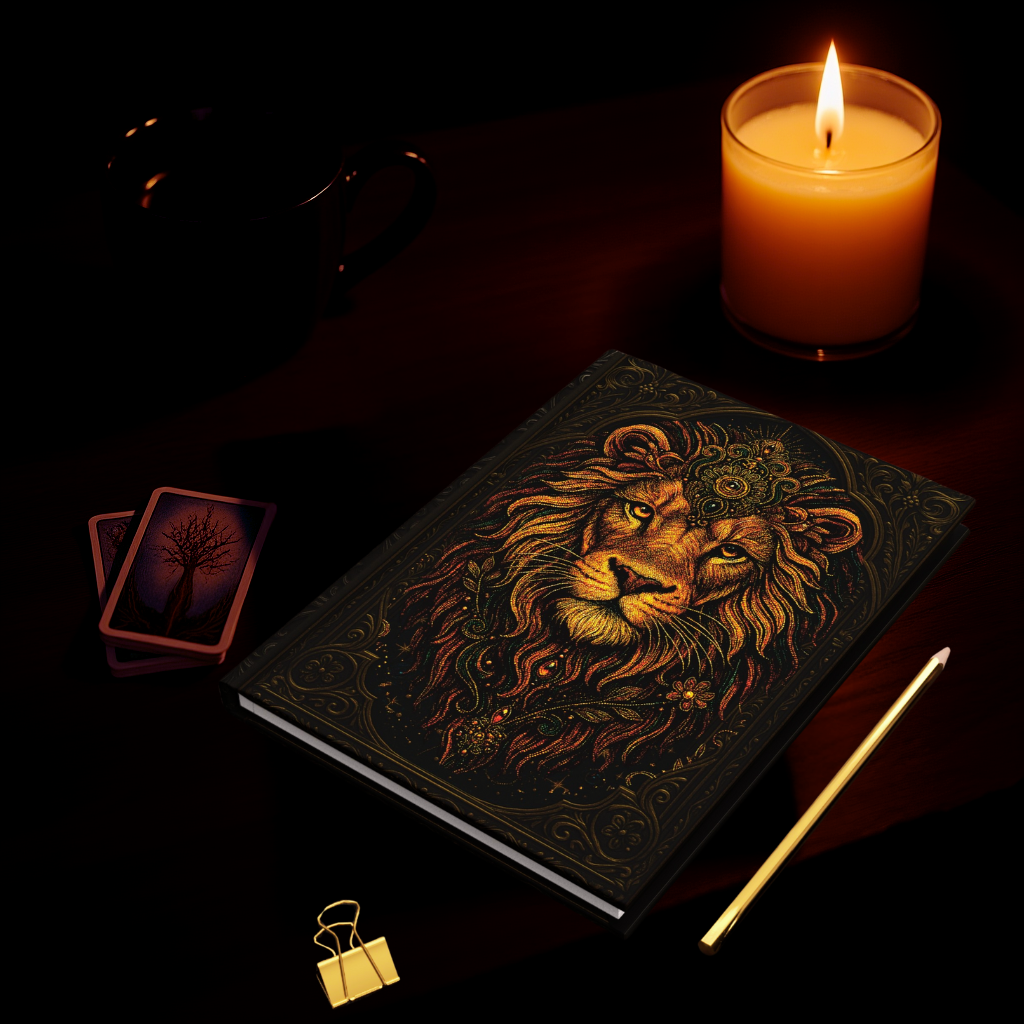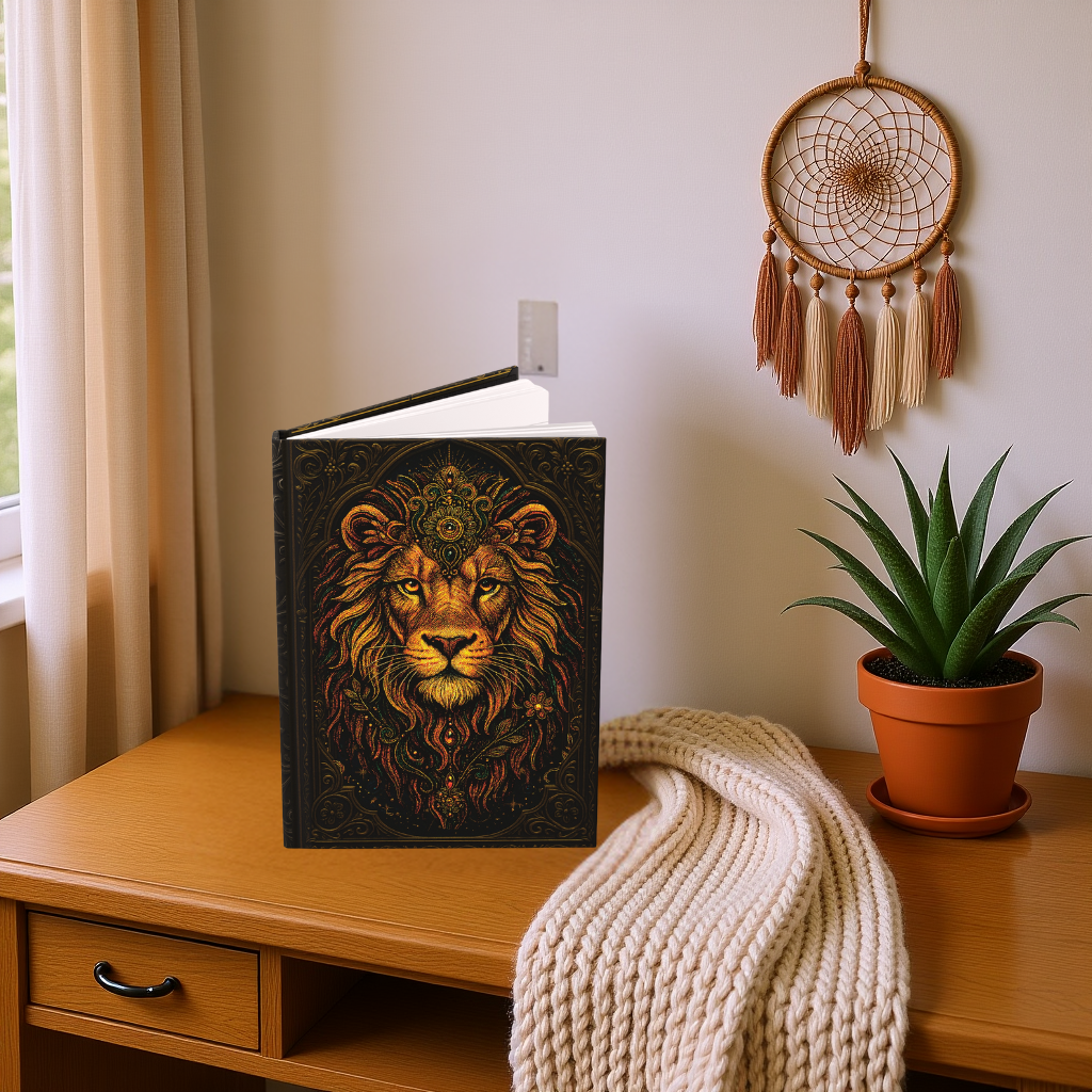 Lion Journal with Celestial Wraparound Art – Courage & Strength Notebook – Boho Hardcover Gift – Optional Personalized Back