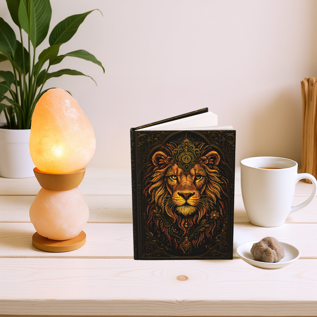 Strength is quiet—but it radiates from within. This regal lion journal channels confidence, protection, and timeless courage. With its golden mane, steady gaze, and cosmic detailing, it's a powerful space for self-reflection, leadership, and vision.