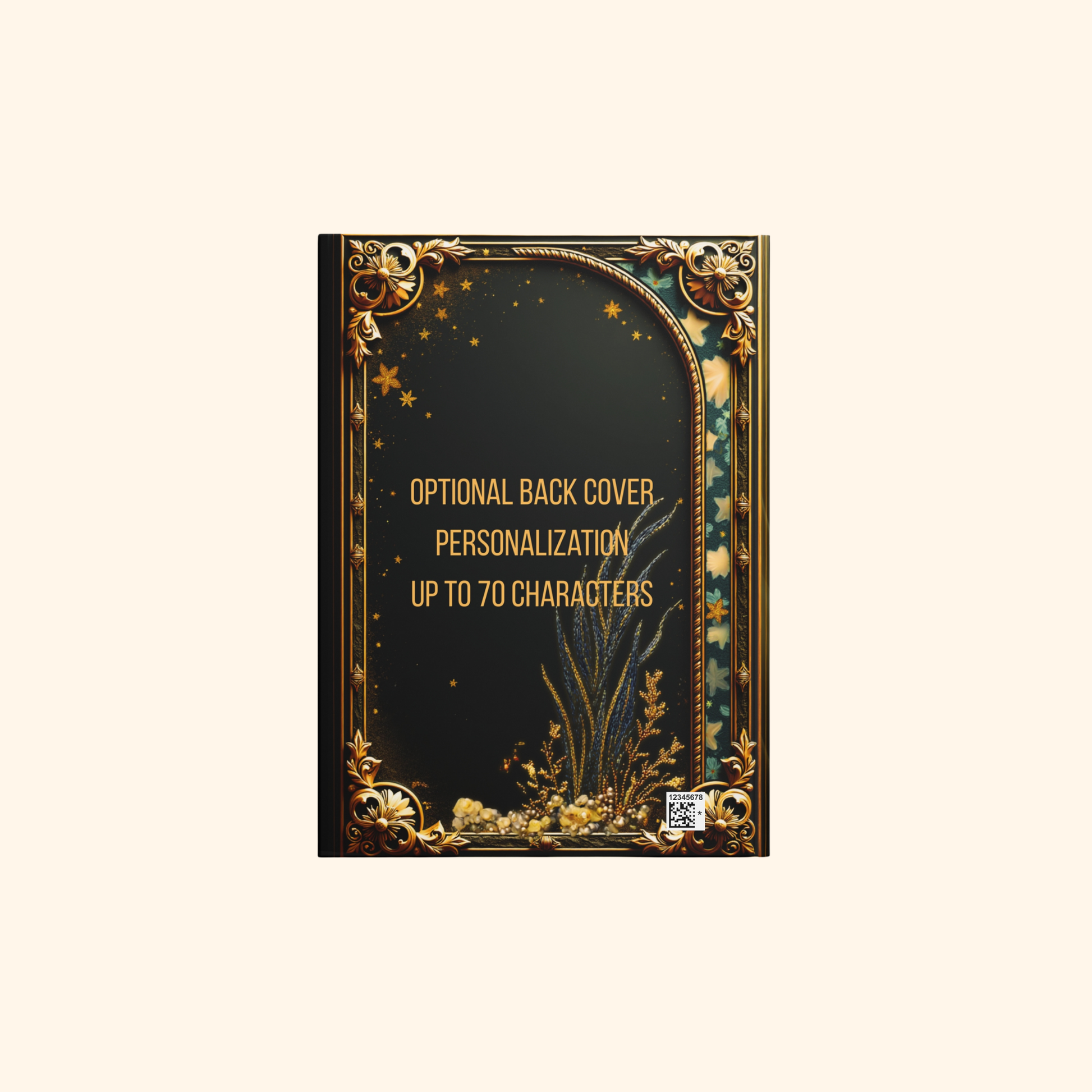 Featuring an ornate gold filigree seahorse surrounded by shimmering coral and seaweed, this fantasy ocean notebook captures the mystery of the deep sea and the serenity of coastal dreams. Each hardcover is designed with vivid detail, wrapping front to back in rich teal and golden hues — a true keepsake for any writer, artist, or sea lover.