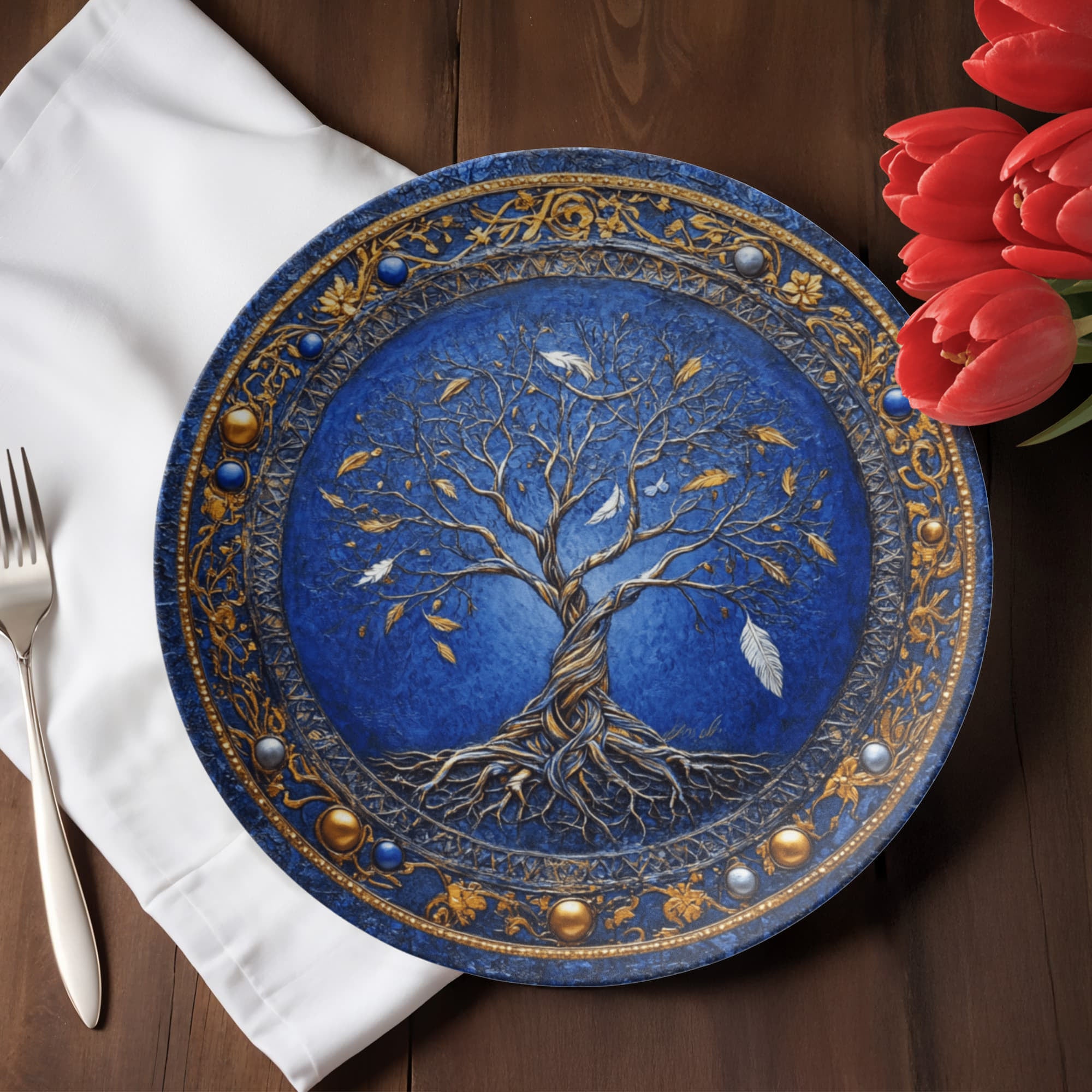 Feathered Realms – Tree of Life with Gold Rim & Falling Leaves Decorative Plate