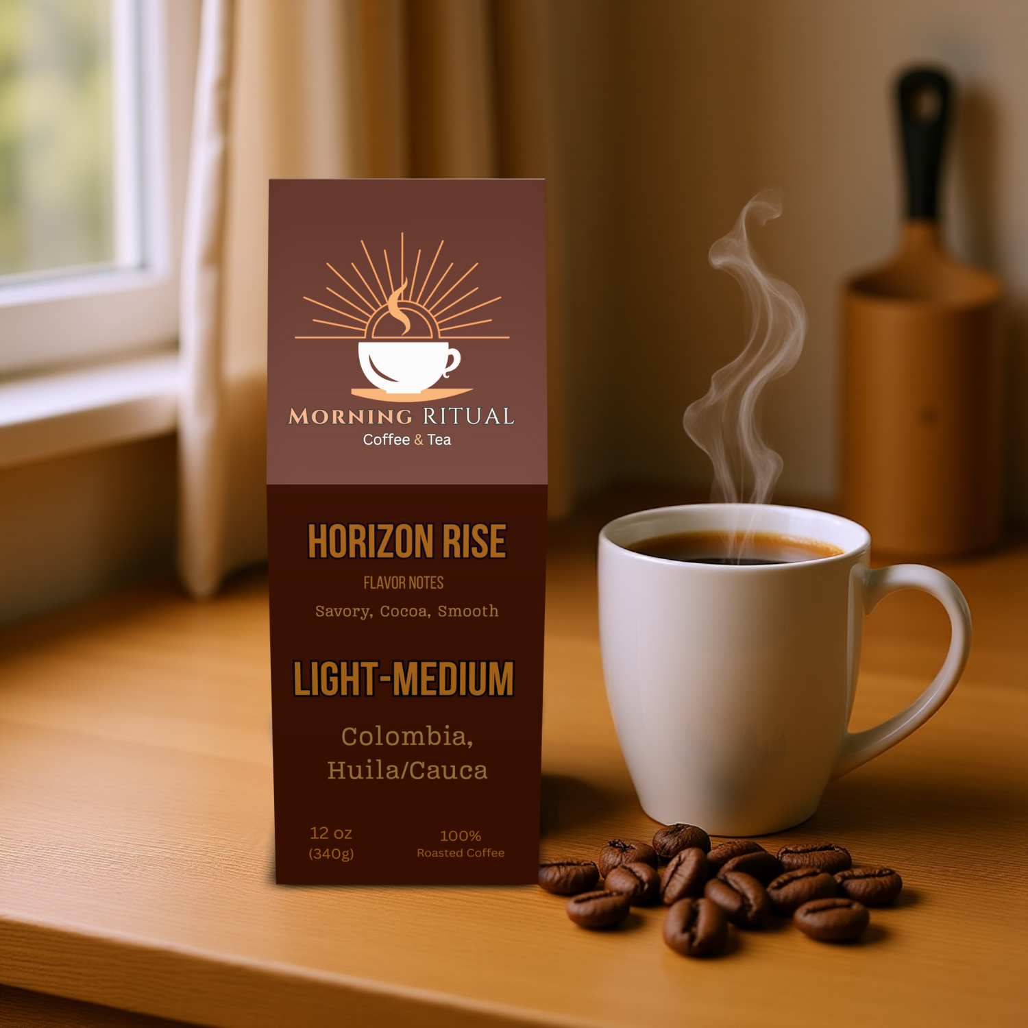 Awaken your ritual with Horizon Rise, a Colombian single origin from the celebrated regions of Huila and Cauca. This light-medium roast showcases the best of specialty coffee, offering a vibrant cup that’s both bright and comforting.