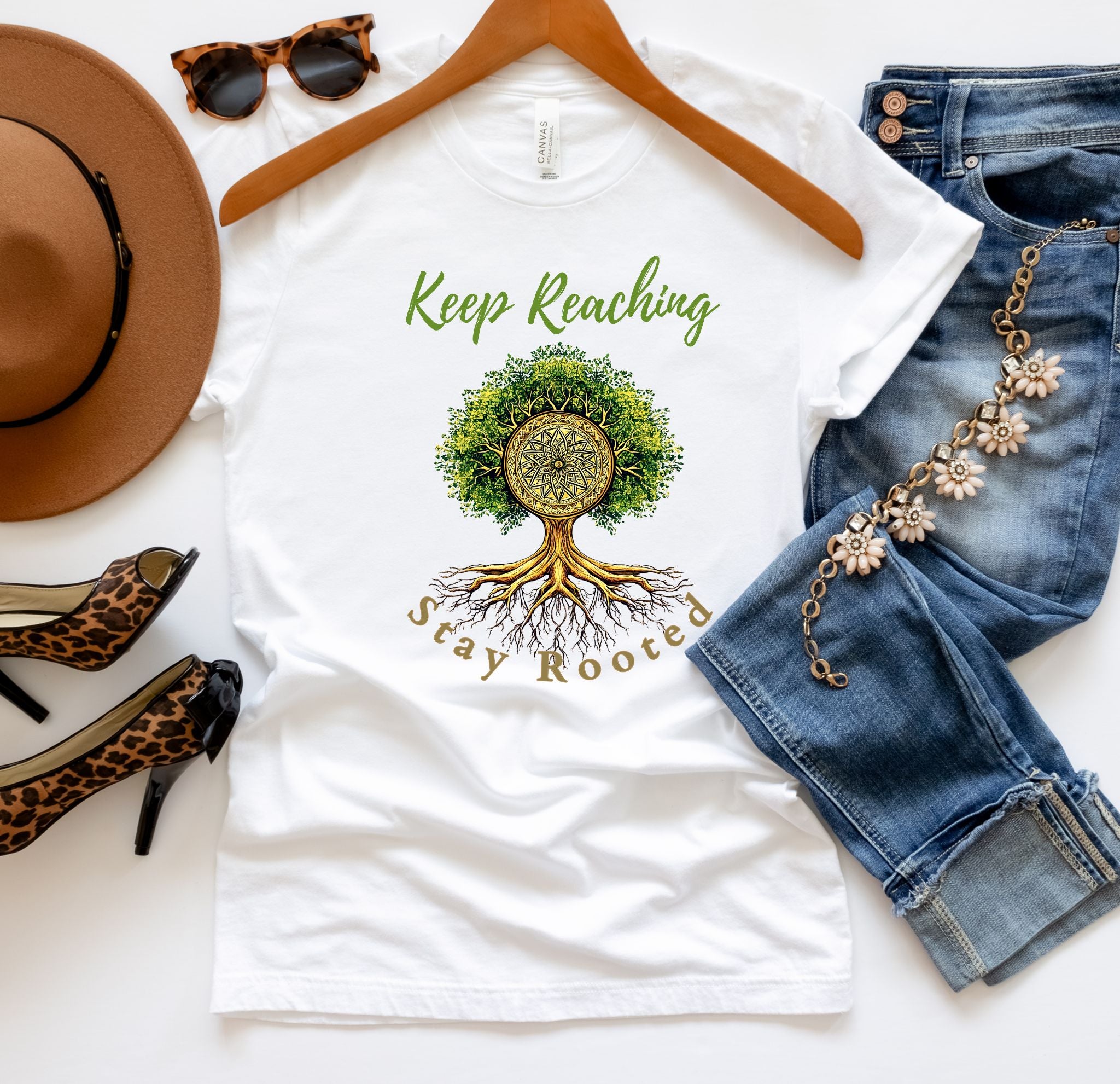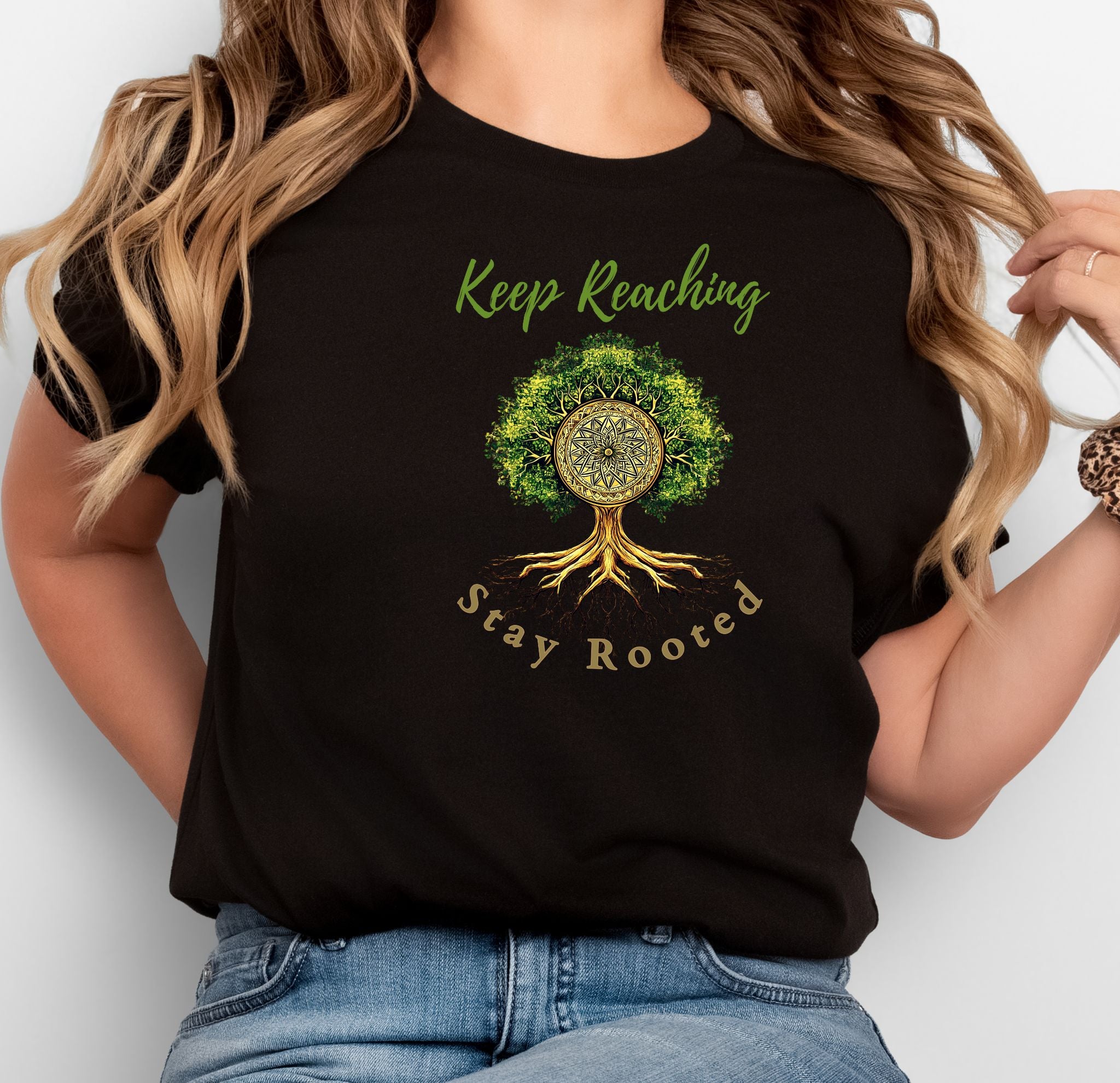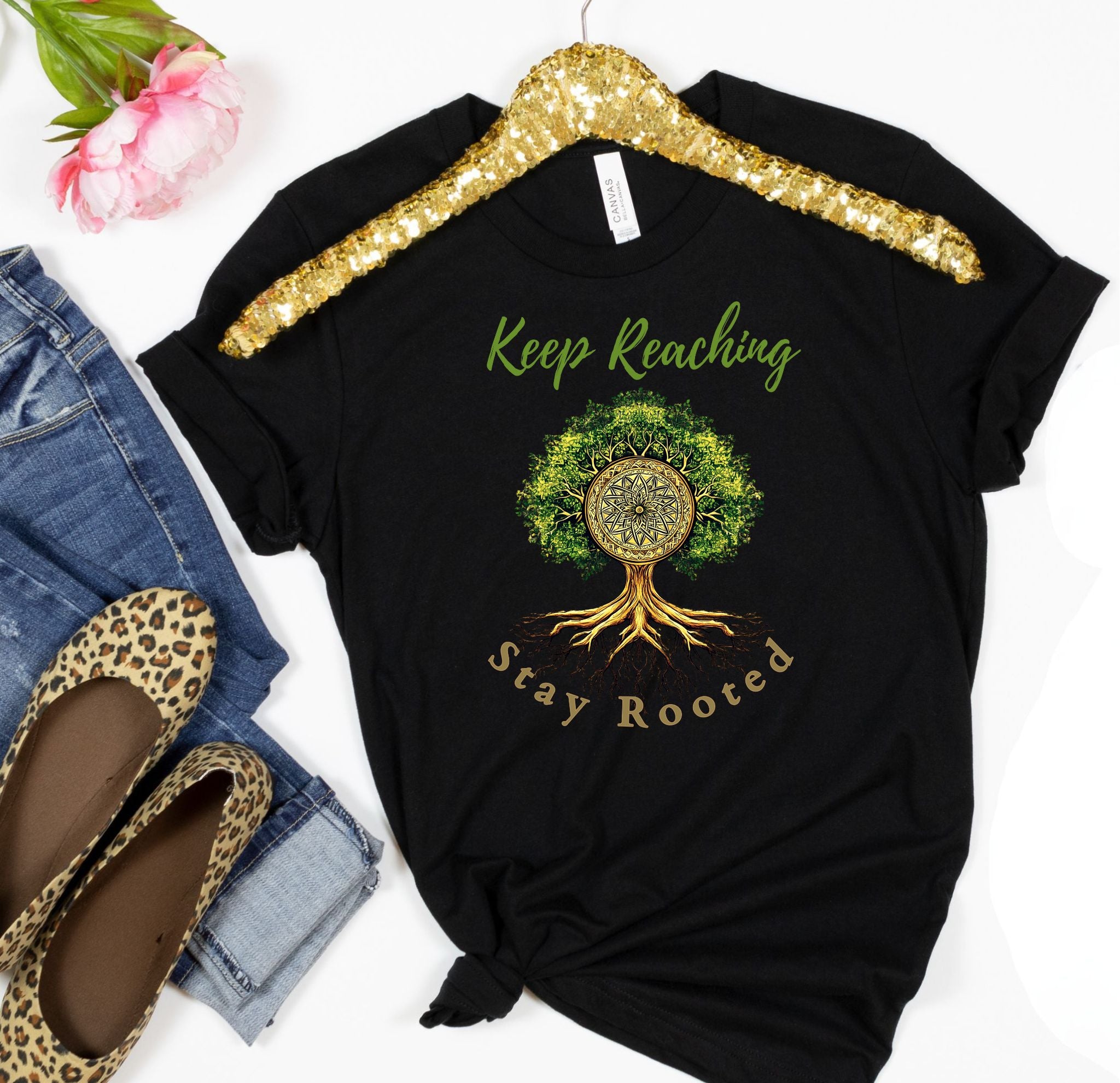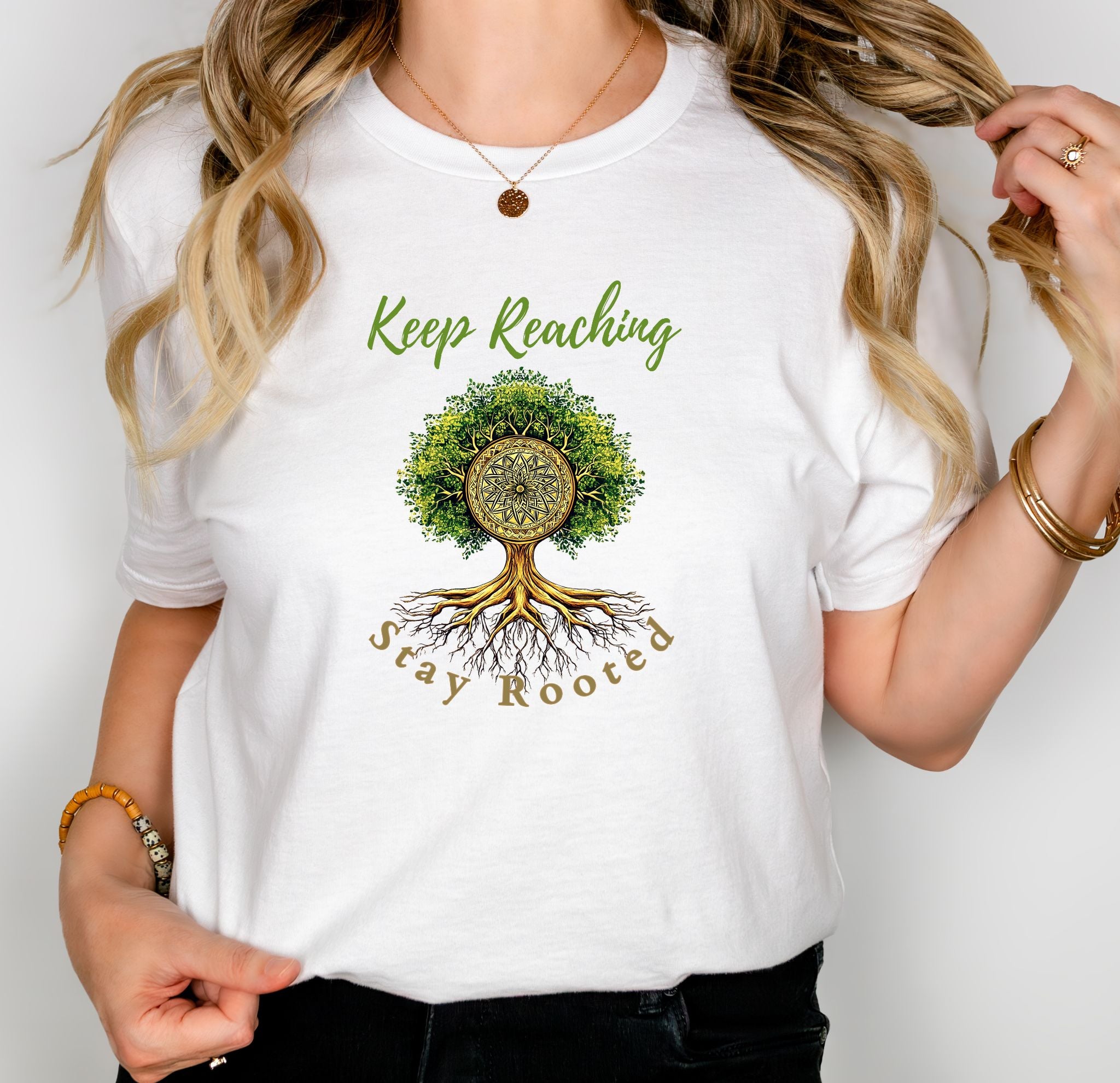 Introducing a beautifully designed Unisex Jersey Short Sleeve Tee that embodies a spirit of growth and connection. Featuring a serene tree graphic with the encouraging phrase "Keep Reaching, Stay Rooted," this tee brings a tranquil vibe to your daily wear. It’s perfect for adults who value comfort and style in both casual and semi-formal settings.