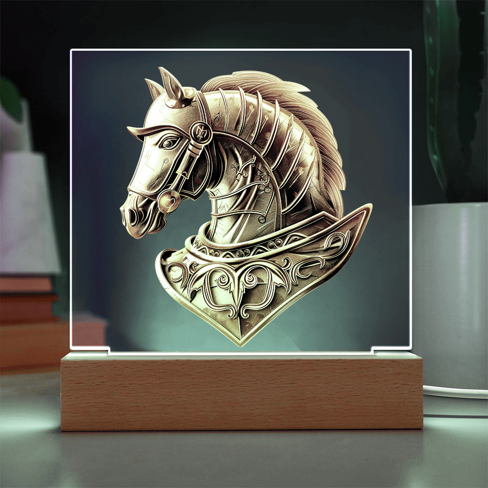 Ride into legend with the Knight’s Order Warhorse Plaque, featuring a noble warhorse in full ornamental armor. Designed in a radiant embossed look style, this piece embodies the courage, loyalty, and enduring strength of the knight’s most trusted companion. A commanding emblem of the chivalric code and medieval honor.