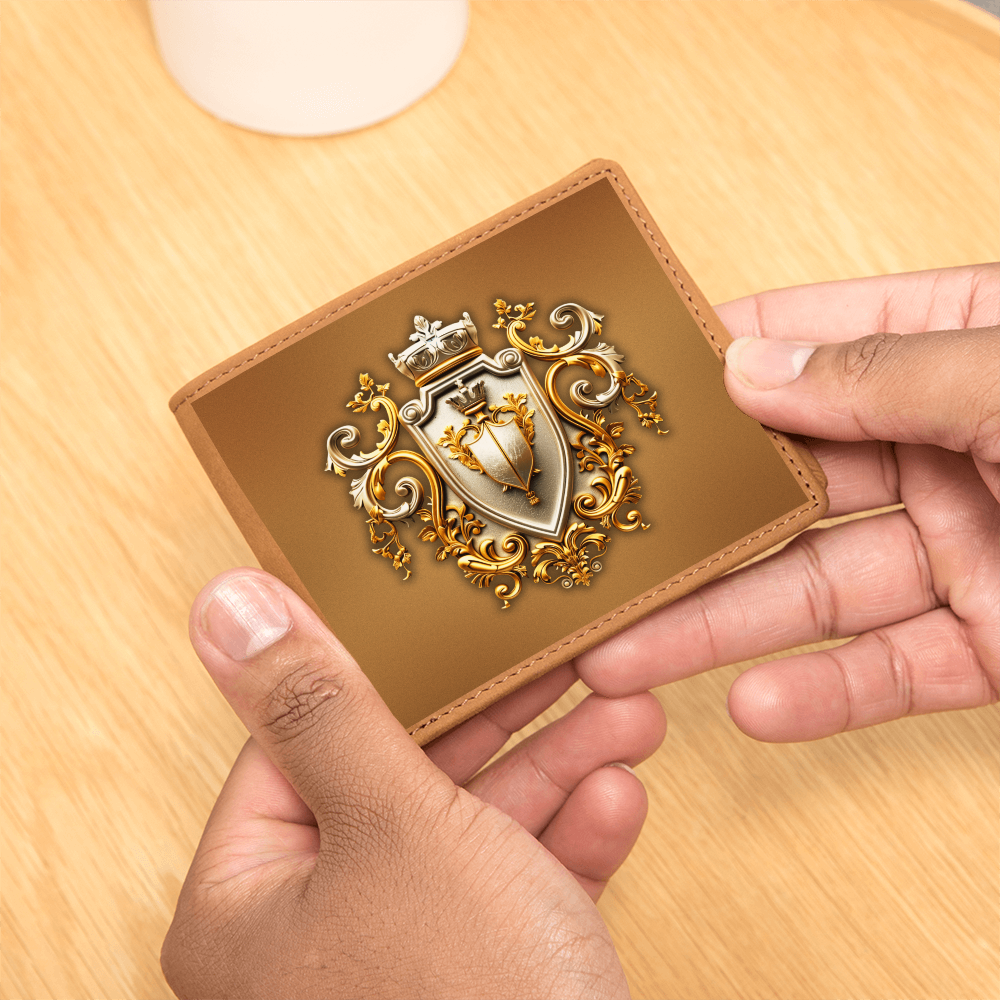 Carry the mark of loyalty and honor. This embossed-look leather wallet from the Knight’s Order Collection showcases a regal shield crest crowned with ornamental detailing, symbolizing courage and noble heritage. A refined medieval-inspired design for those who value strength and timeless style.
