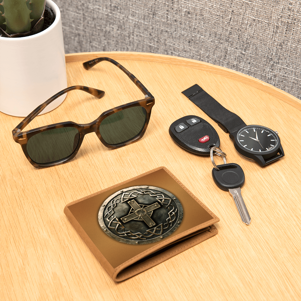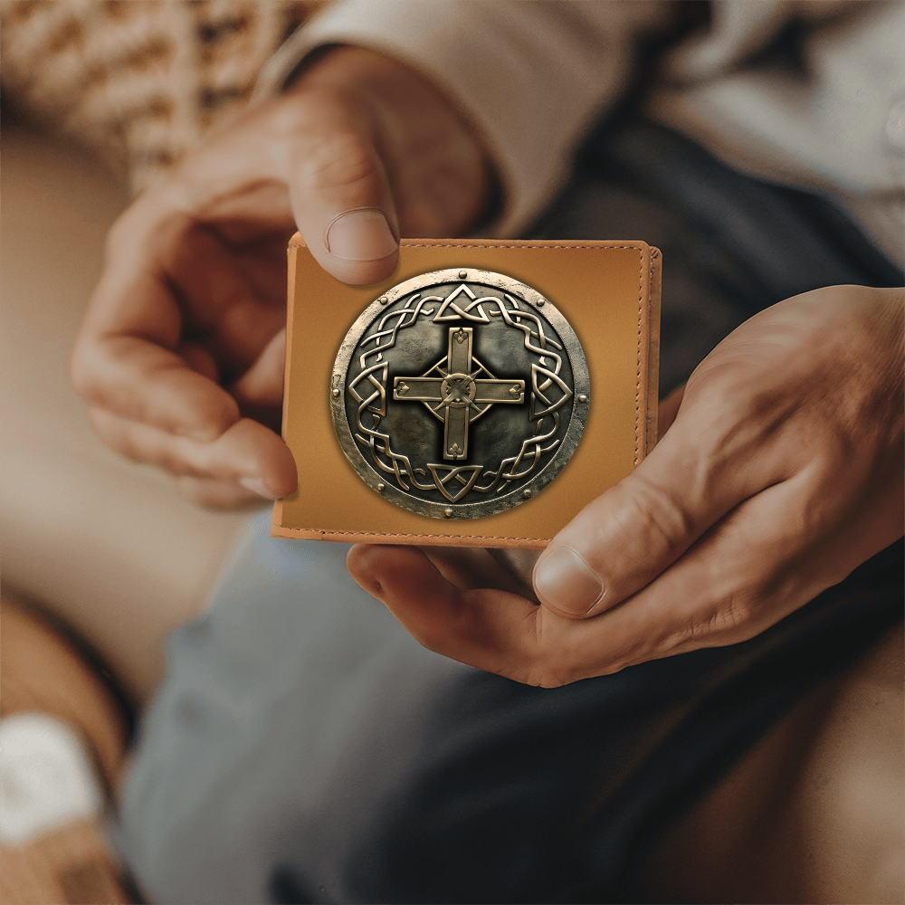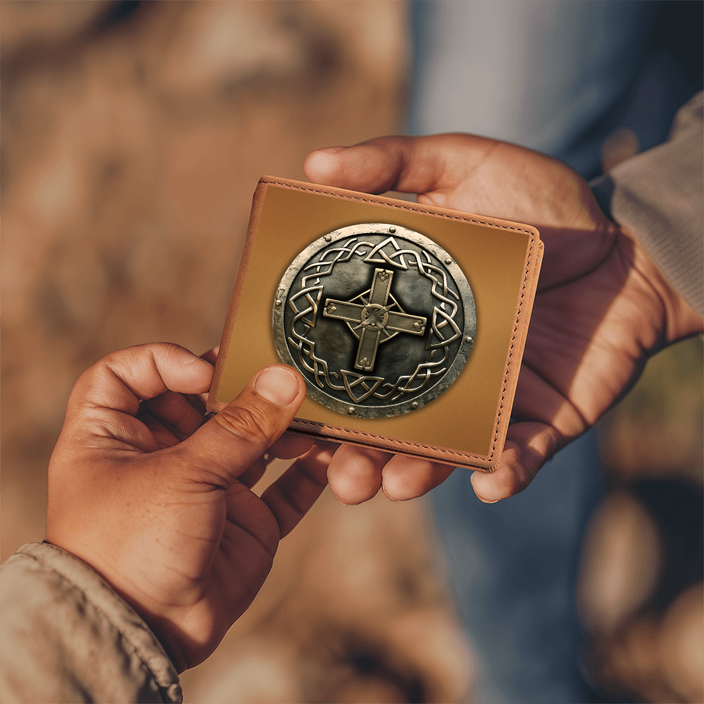 Carry the timeless symbol of faith and honor. This embossed-look leather wallet from the Knight’s Order Collection features a bold cross surrounded by intricate knotwork, symbolizing devotion, unity, and medieval strength. A meaningful piece that blends heritage design with everyday function.
