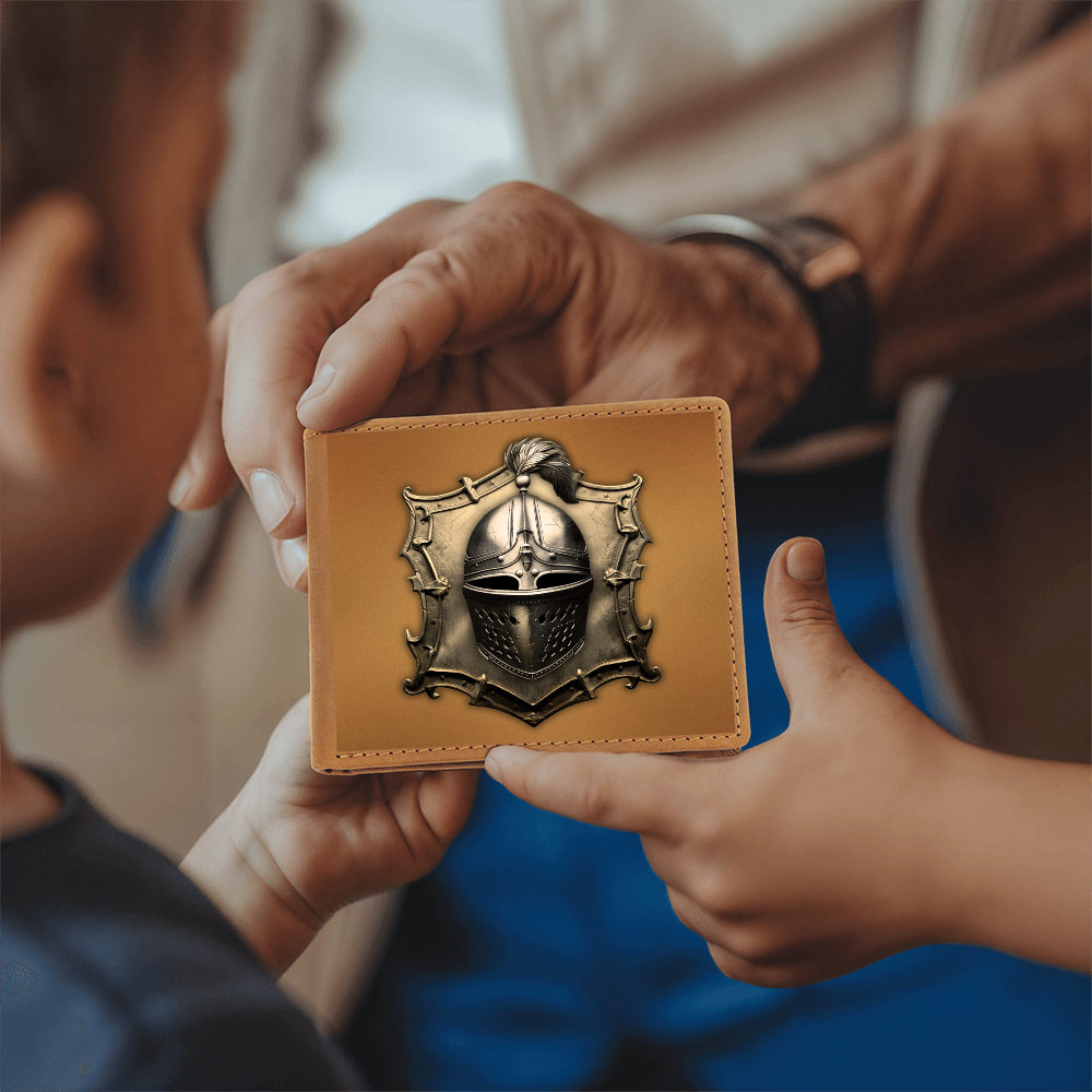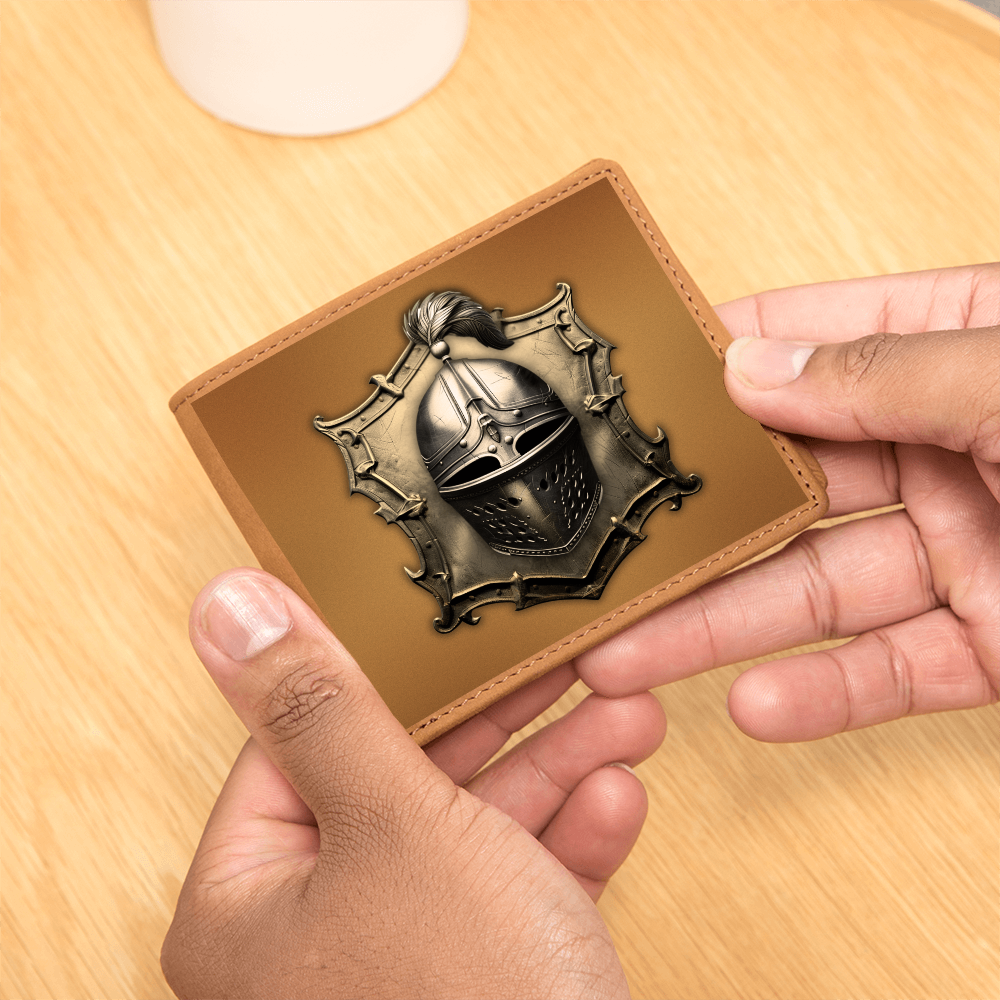 Stand tall with the strength of the knight. This embossed-look leather wallet from the Knight’s Order Collection features a detailed knight’s helmet, symbolizing honor, bravery, and timeless loyalty. Designed for those who carry medieval spirit into modern life, this piece blends heirloom style with everyday function.