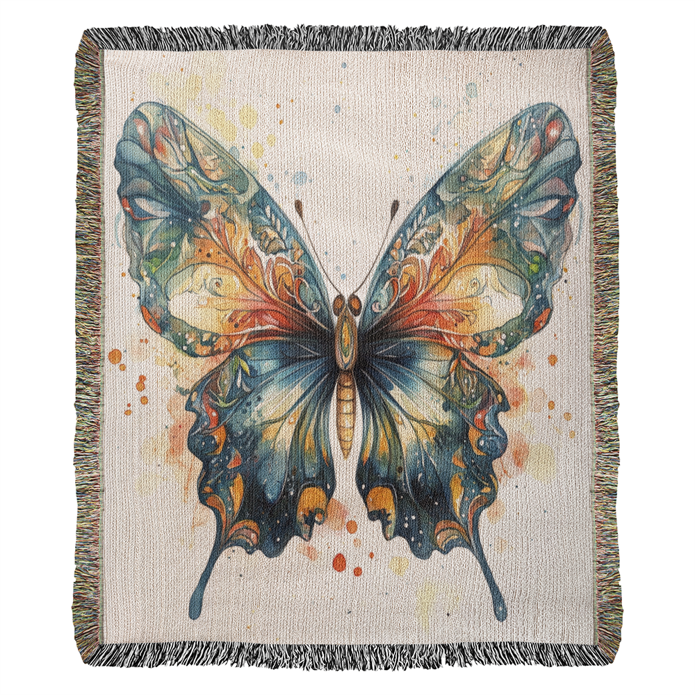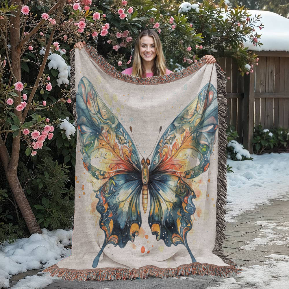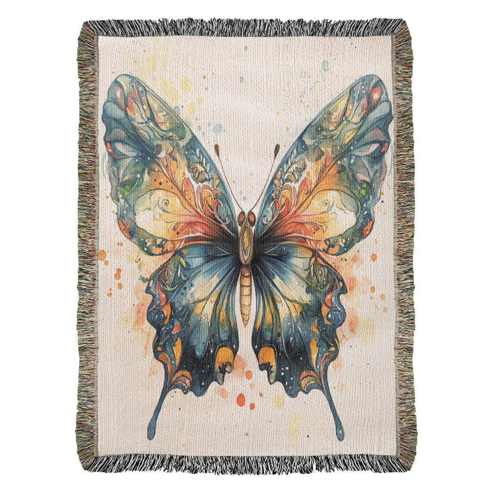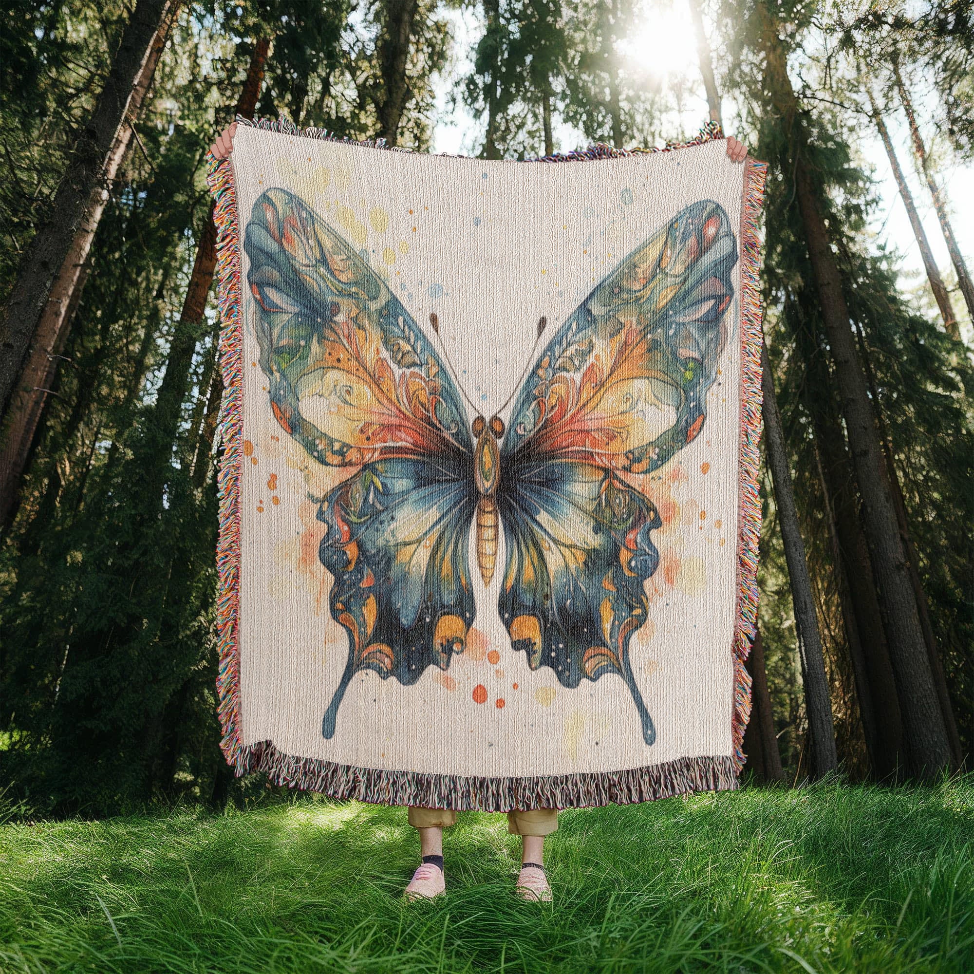 Metamorph Woven Blanket – Watercolor Butterfly in Motion