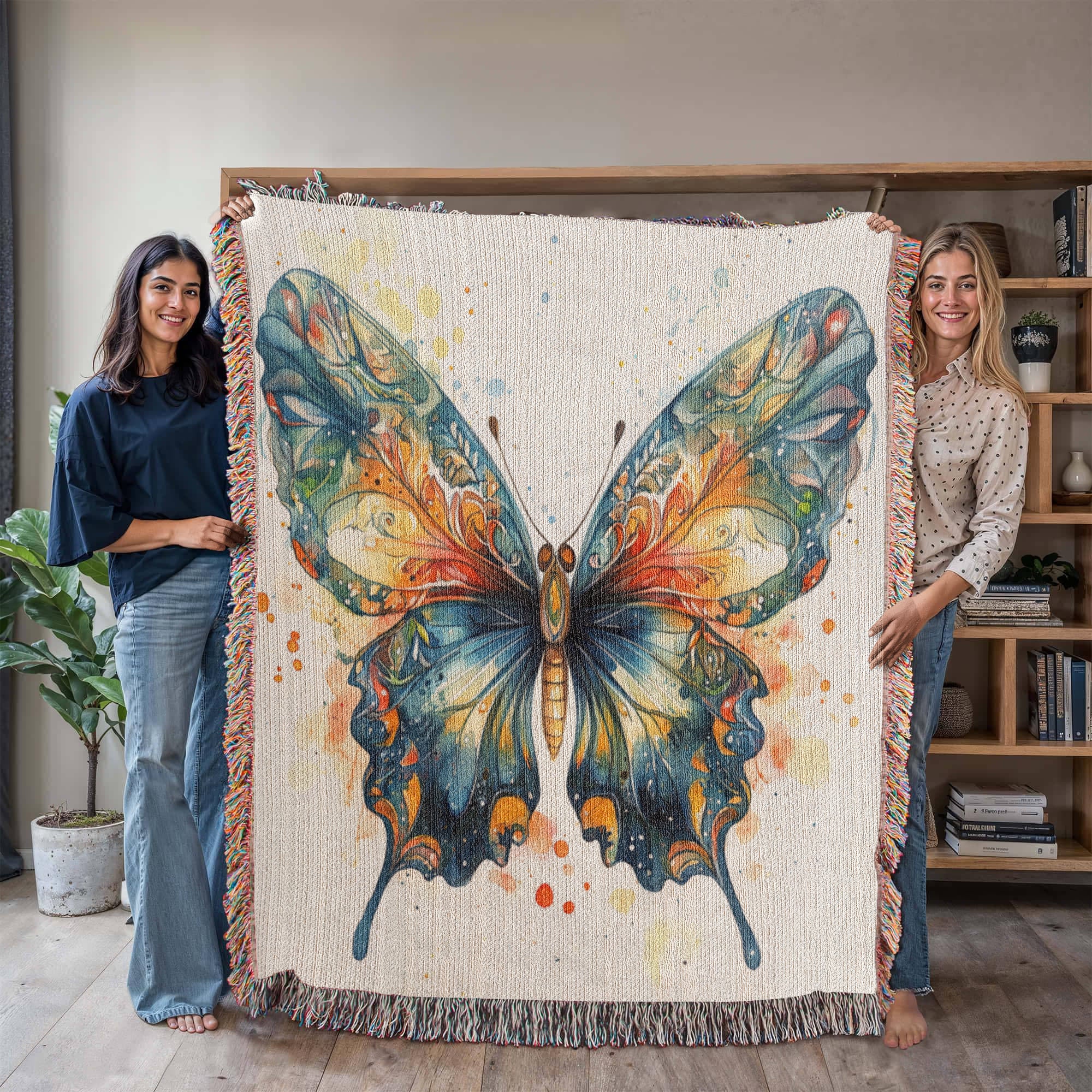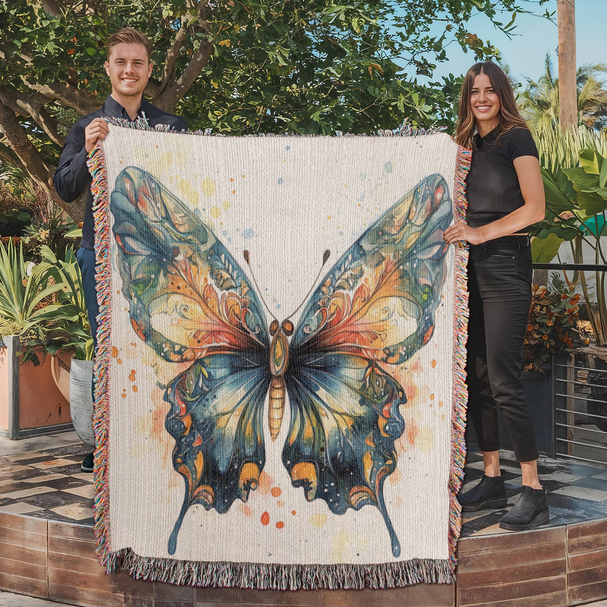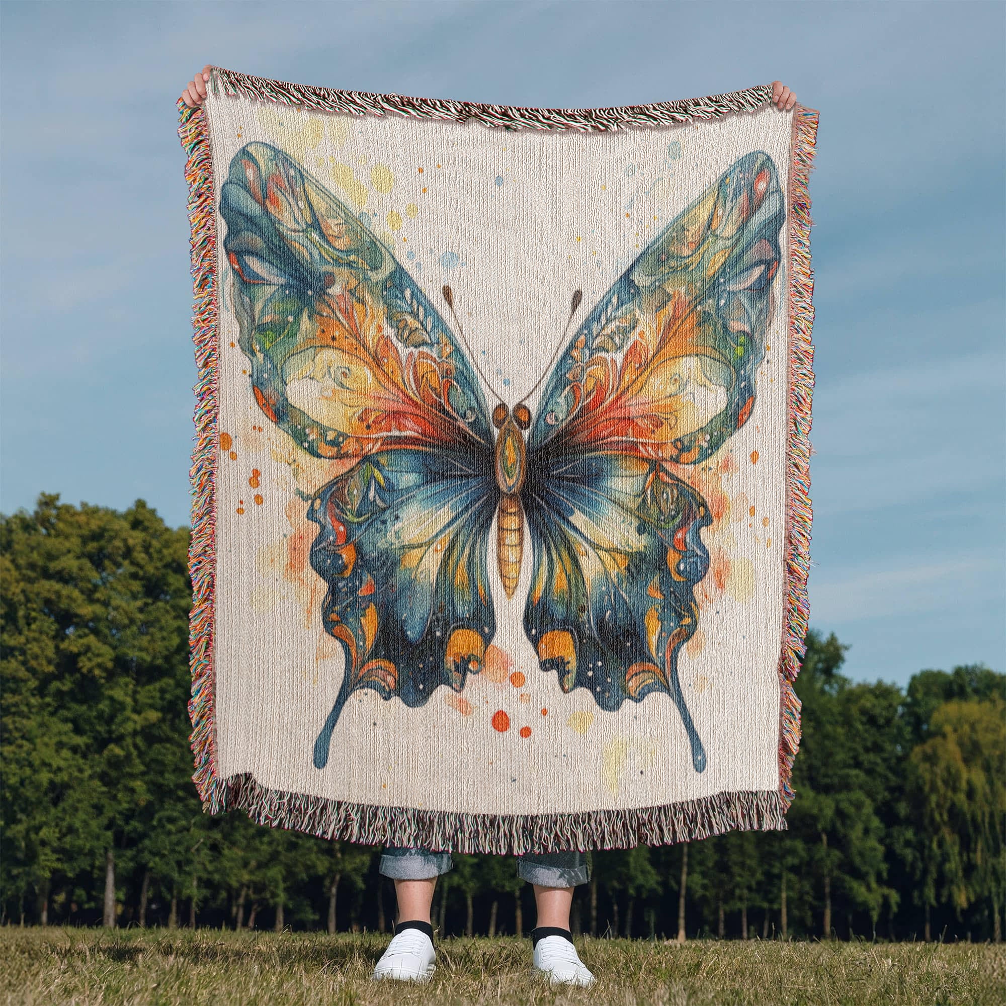 Metamorph Woven Blanket – Watercolor Butterfly in Motion