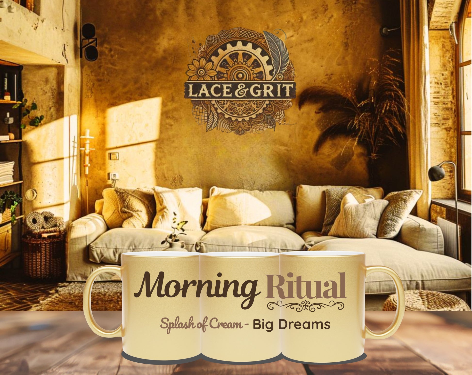 Morning Ritual Metallic Mug – Gold or Silver Coffee Mug – Boho Dreamer Gift – Slow Mornings Mug – Intentional Living Drinkware