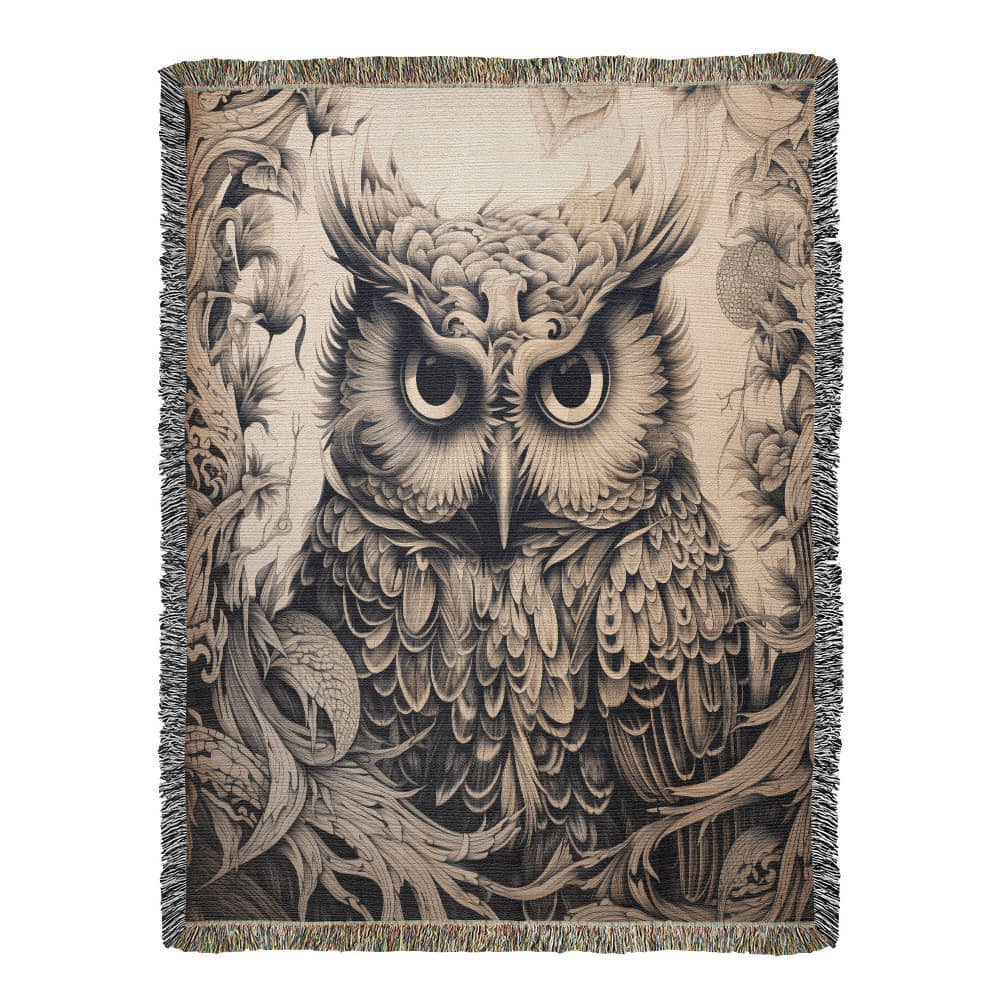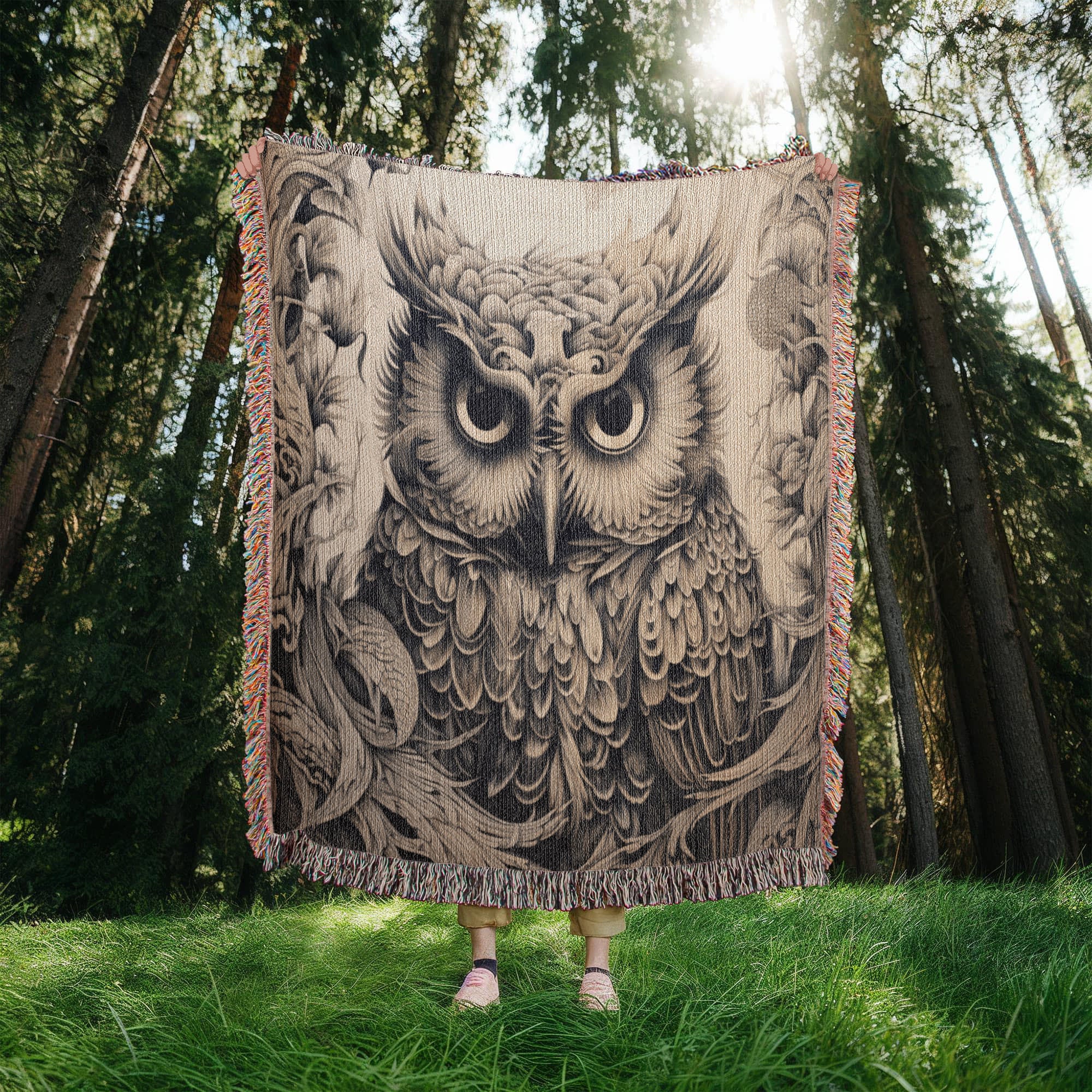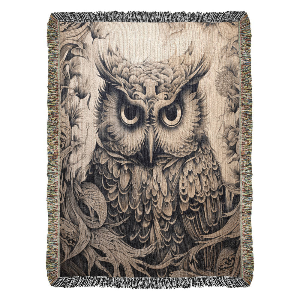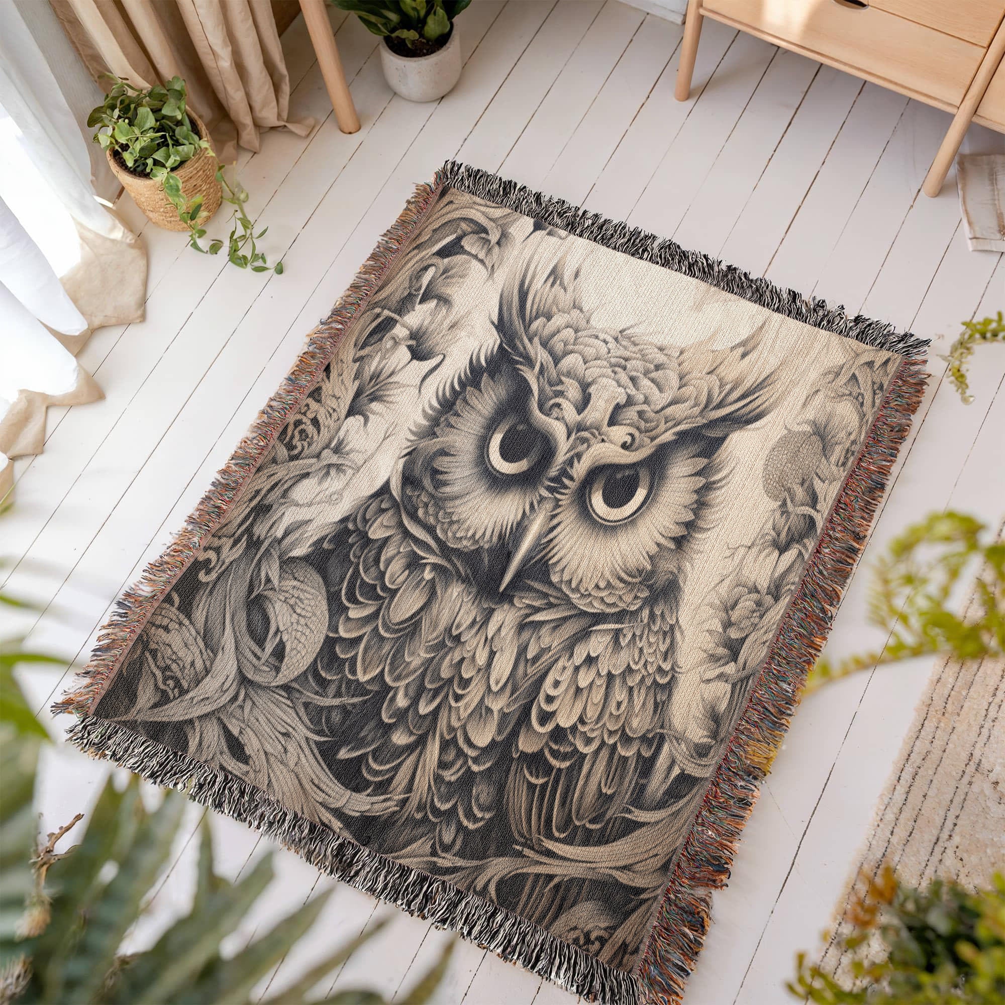 Mystical Owl Woven Blanket – Boho Wildlife Tapestry Throw | Intricate Nature-Inspired Decor