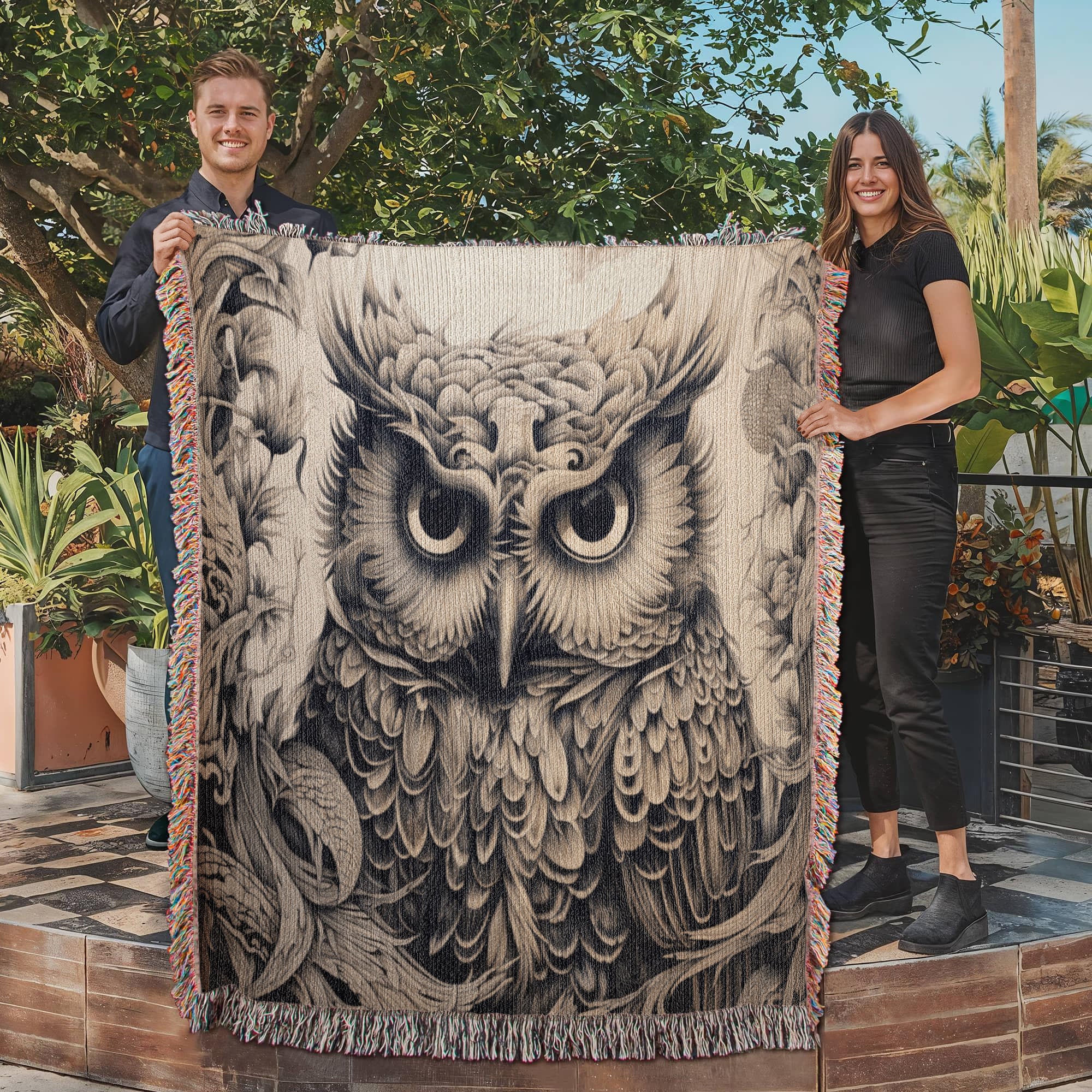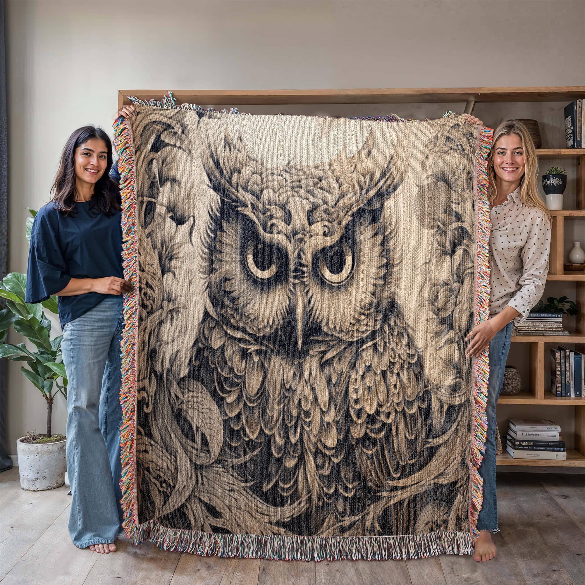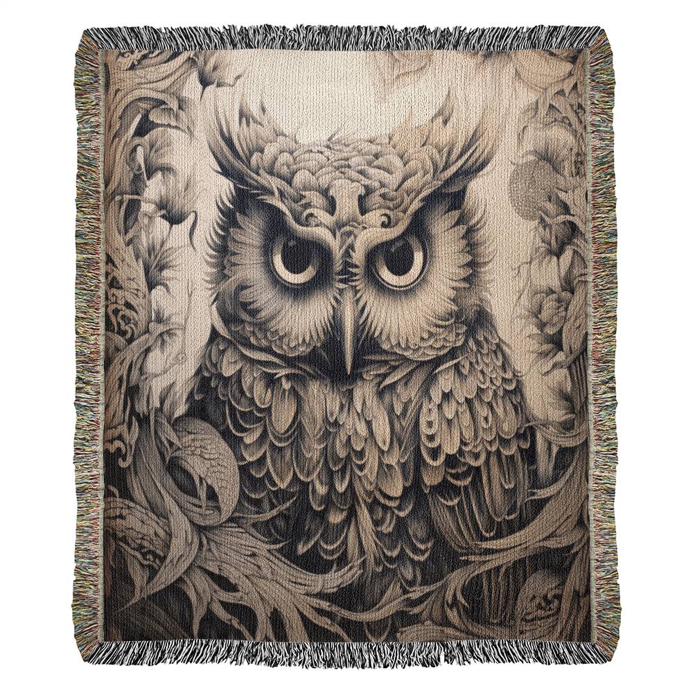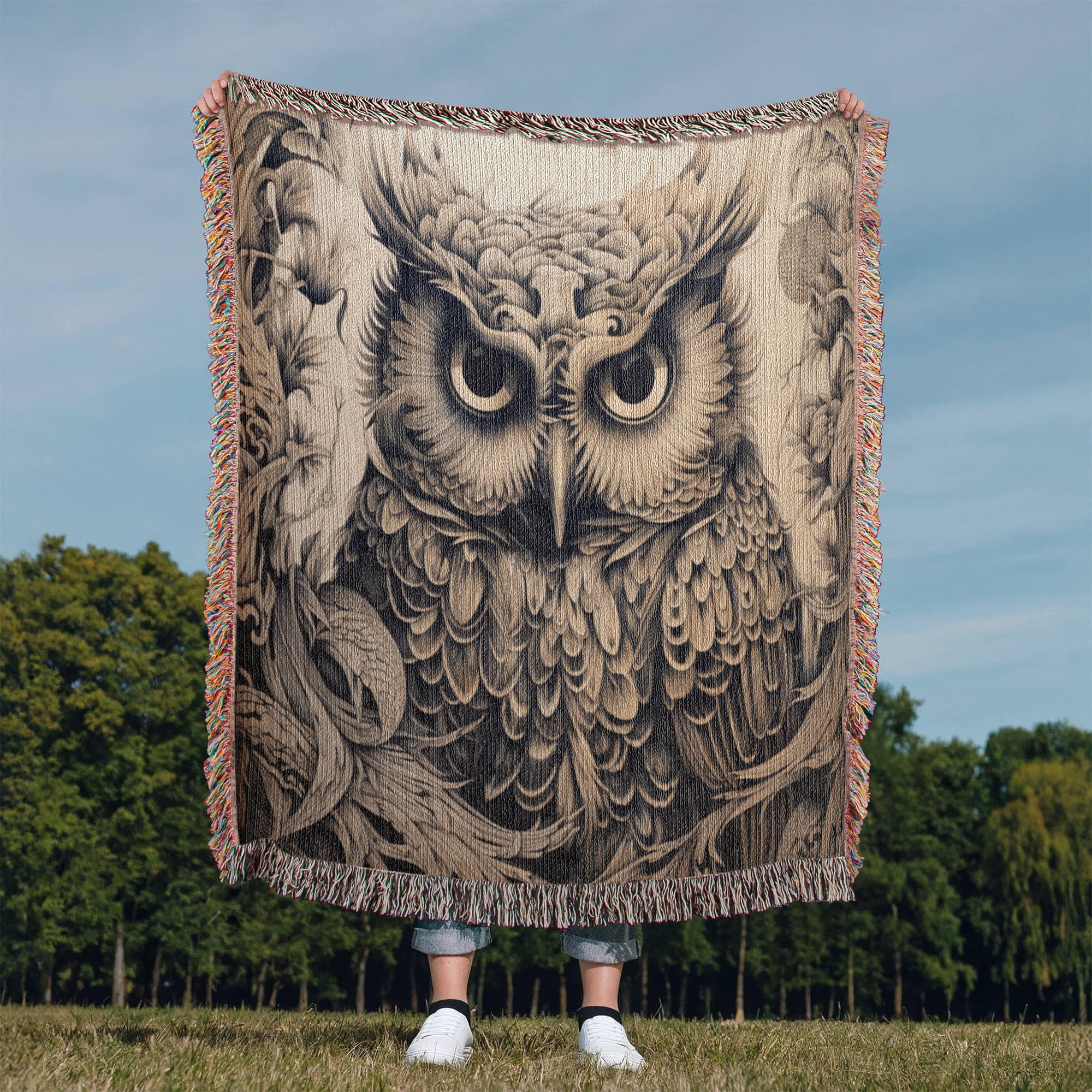 Mystical Owl Woven Blanket – Boho Wildlife Tapestry Throw | Intricate Nature-Inspired Decor
