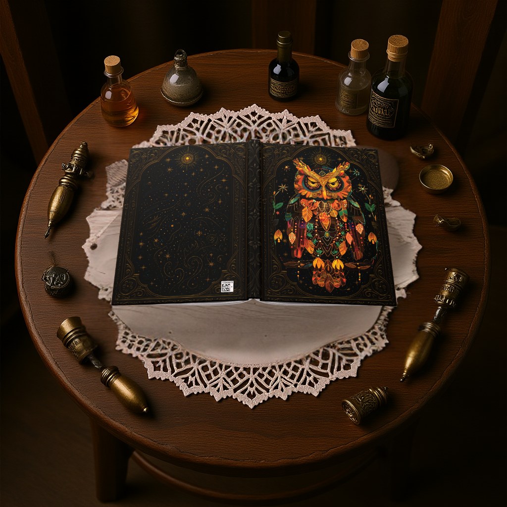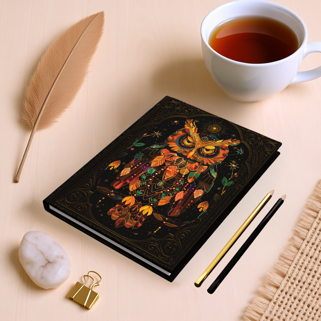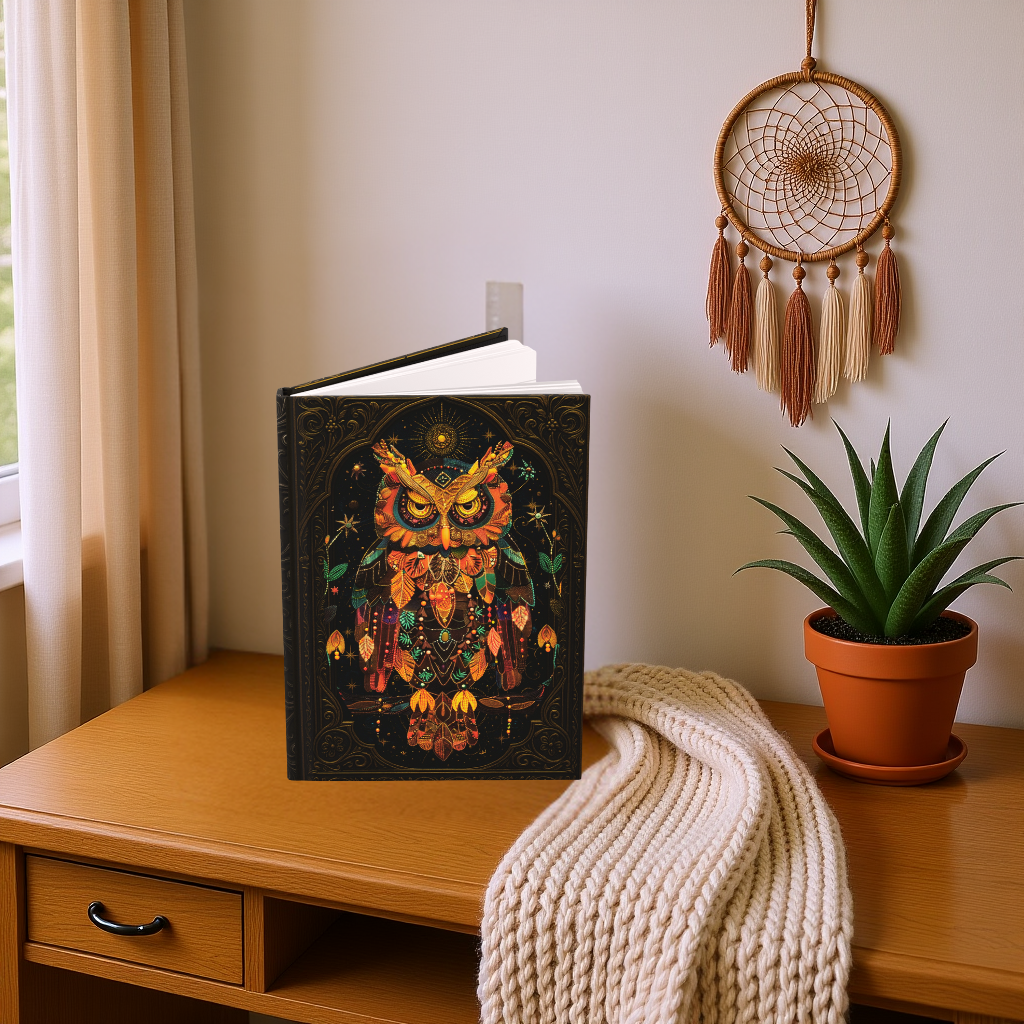 🌙 Perfect For: • Owl lovers and spiritual thinkers • Writers and wisdom seekers • Boho, gothic, and nature-inspired spaces • Daily journaling or shadow work