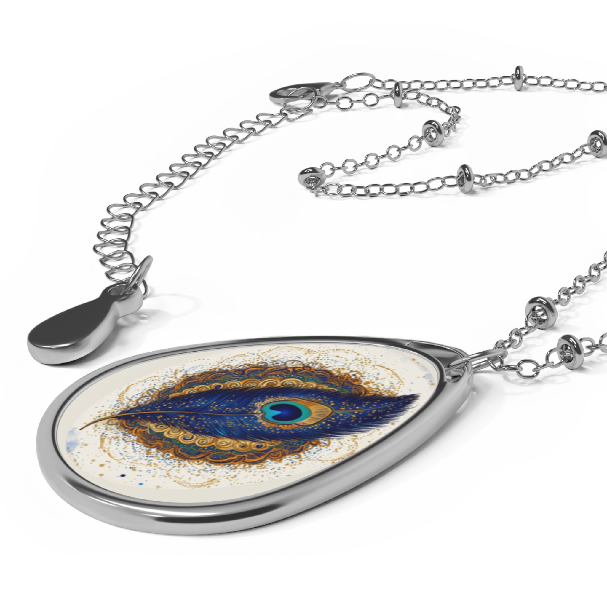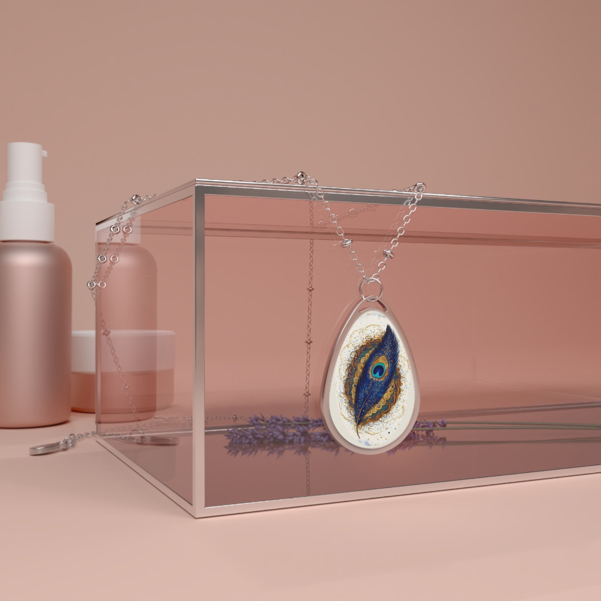 Peacock Feather Necklace – Bohemian Teardrop Pendant with Golden Flourish | Symbolic Nature-Inspired Jewelry for Free Spirits