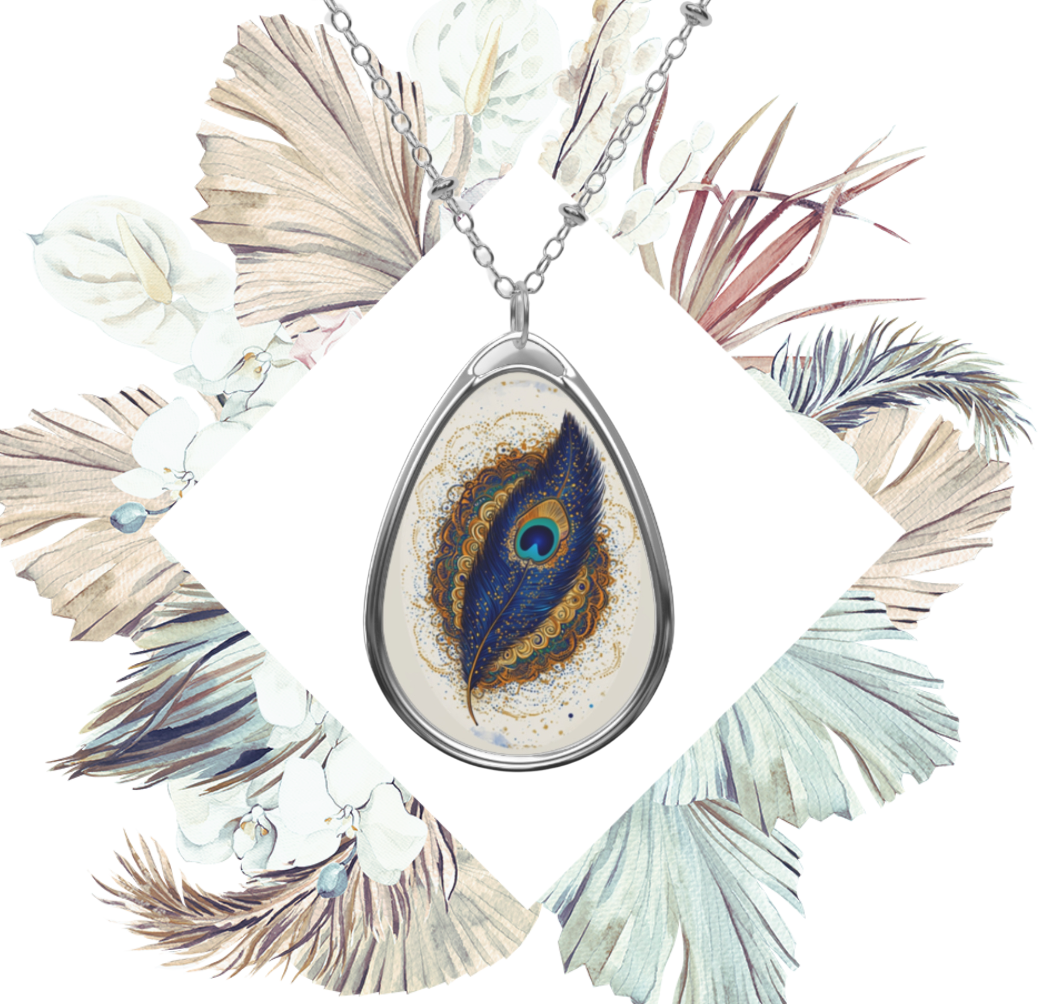 Our Peacock Feather Teardrop Necklace features a single elegant feather surrounded by golden flourishes—capturing the mystique of boho living in a wearable piece of art. Perfect for free spirits, nature lovers, and those drawn to symbolic style.