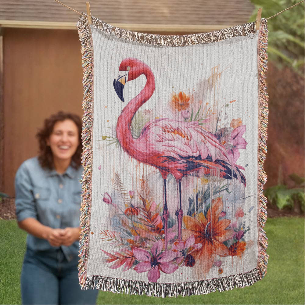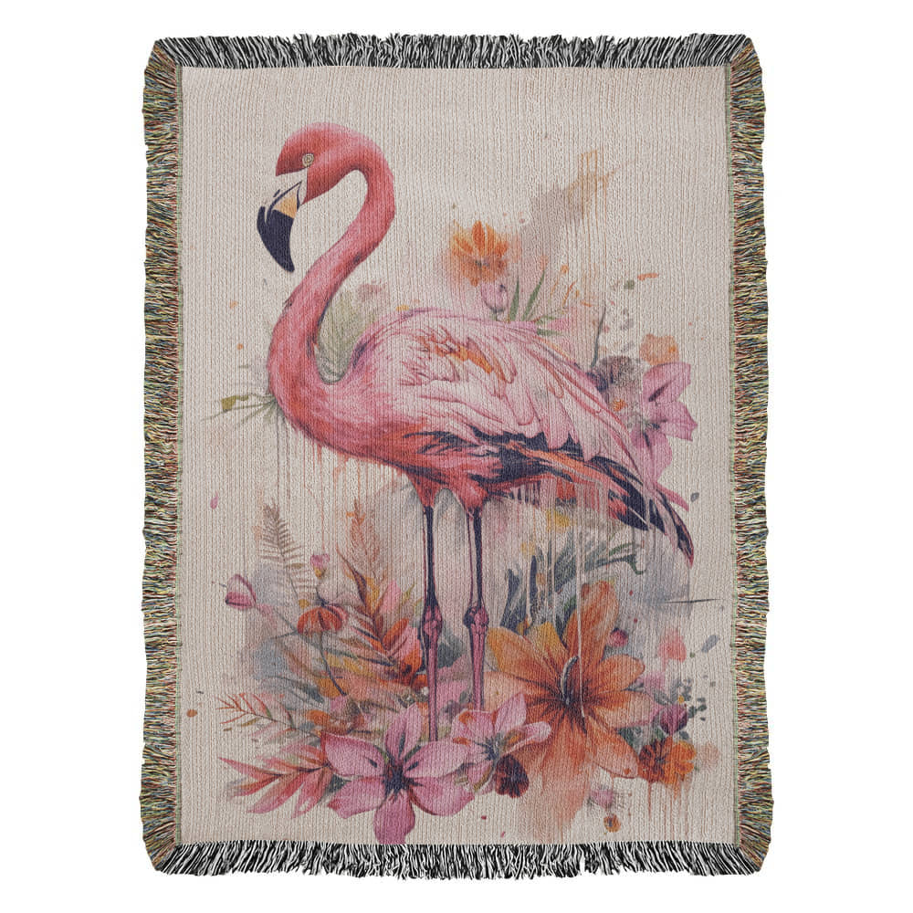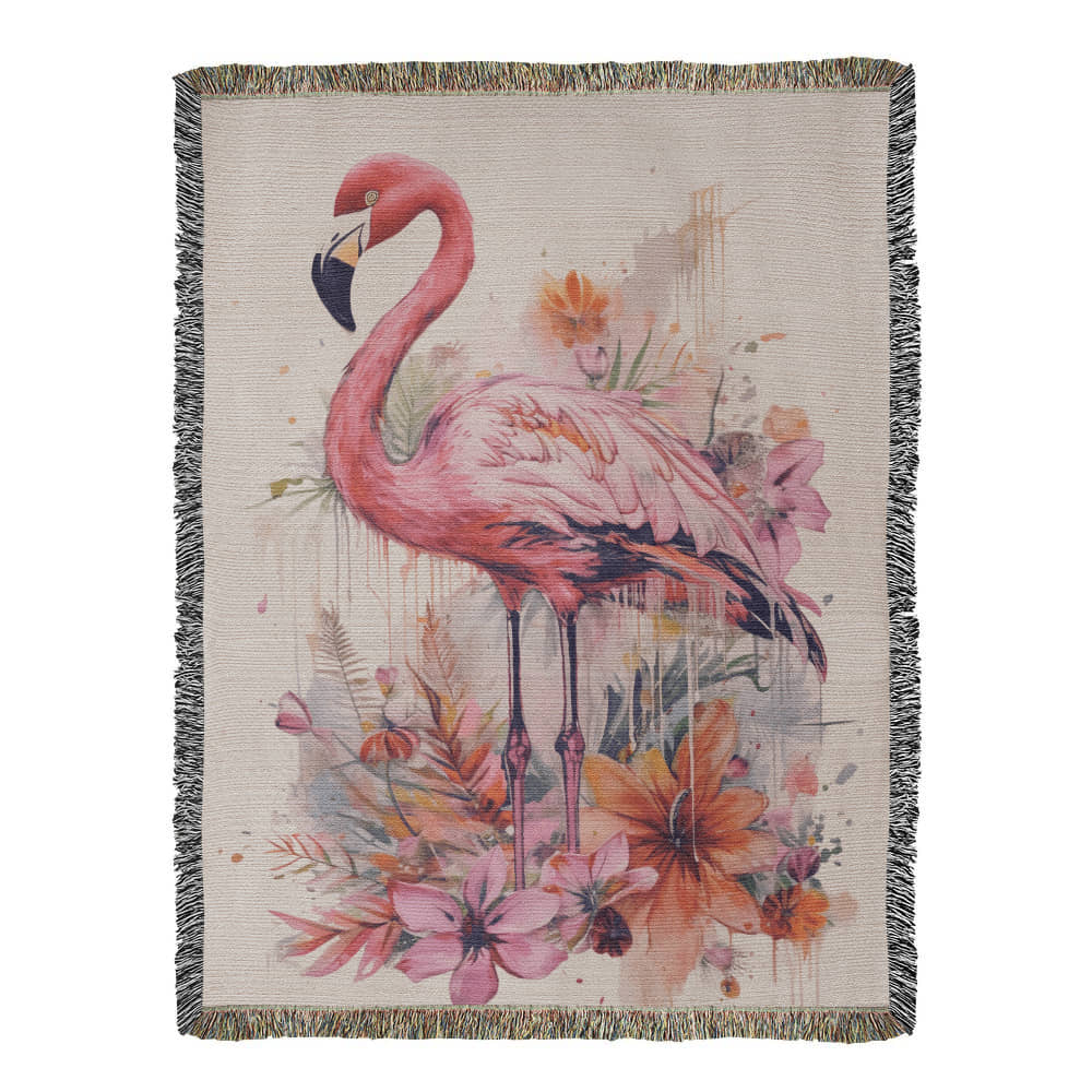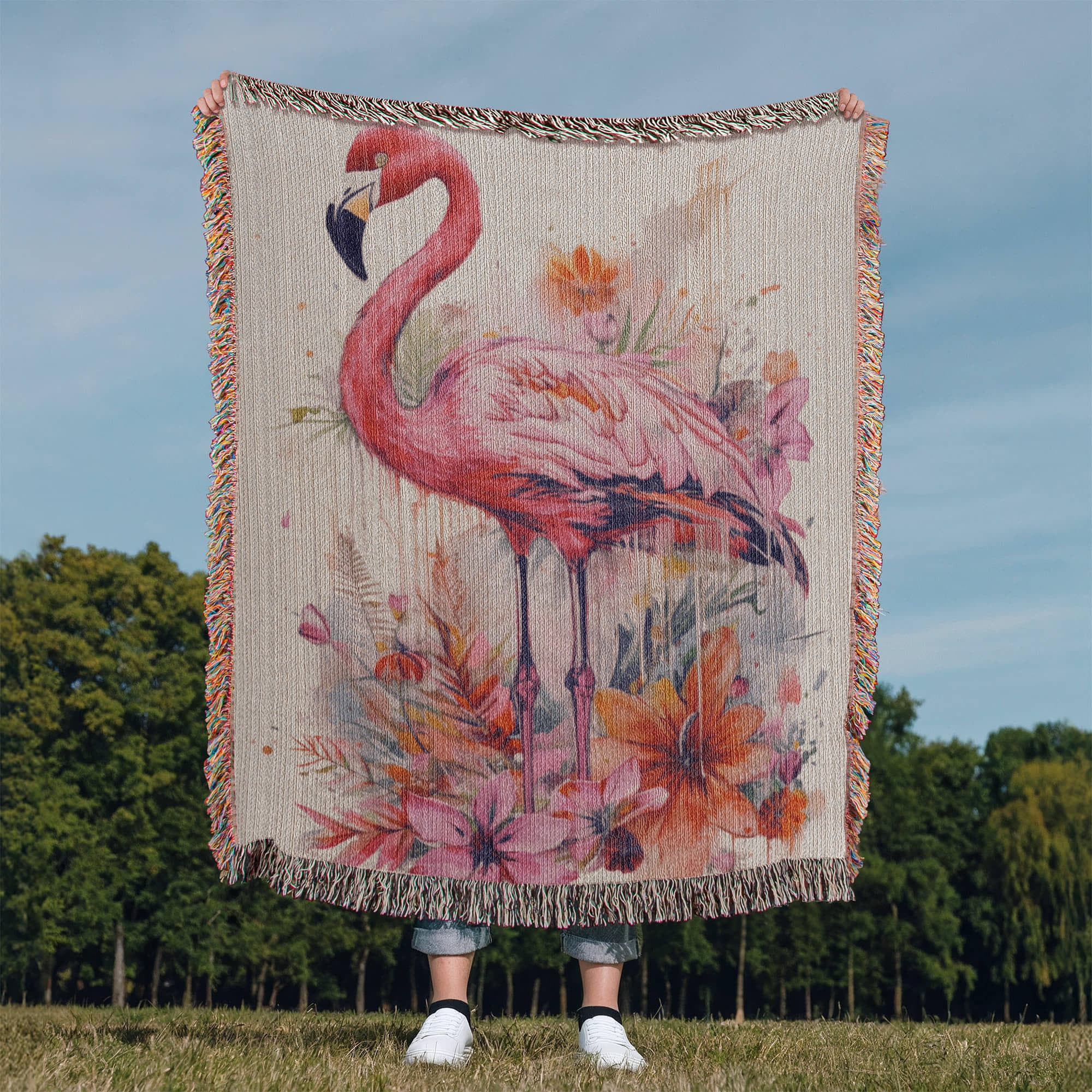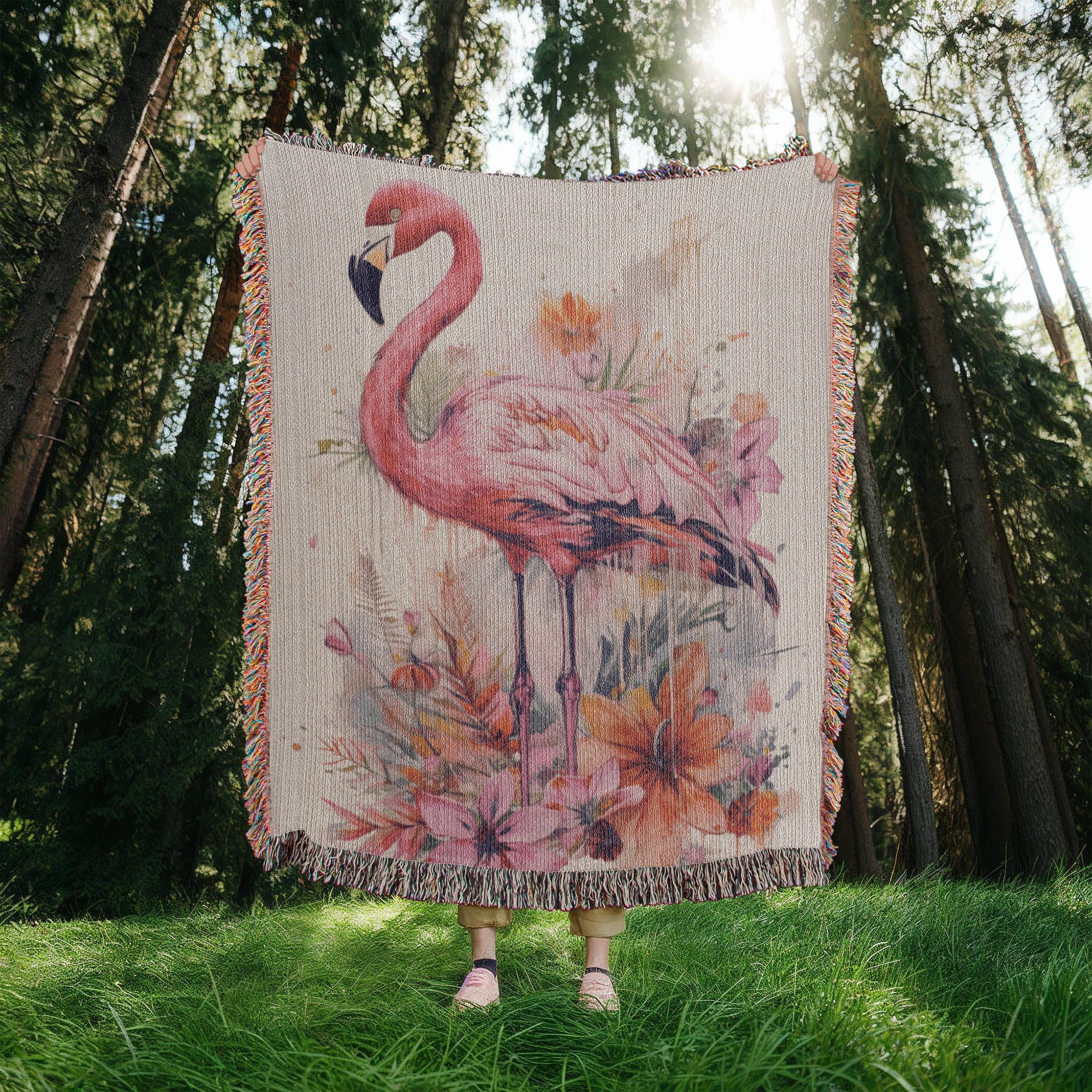 Sunwade Woven Blanket – Watercolor Flamingo in Blush Tones