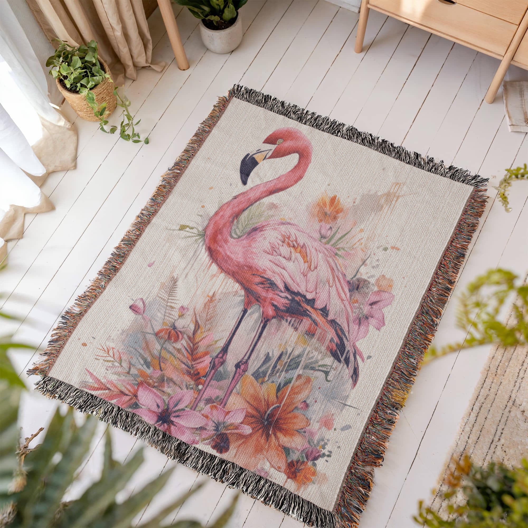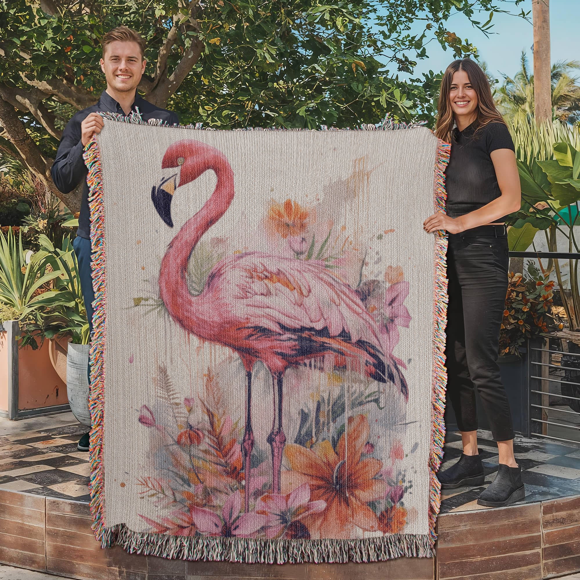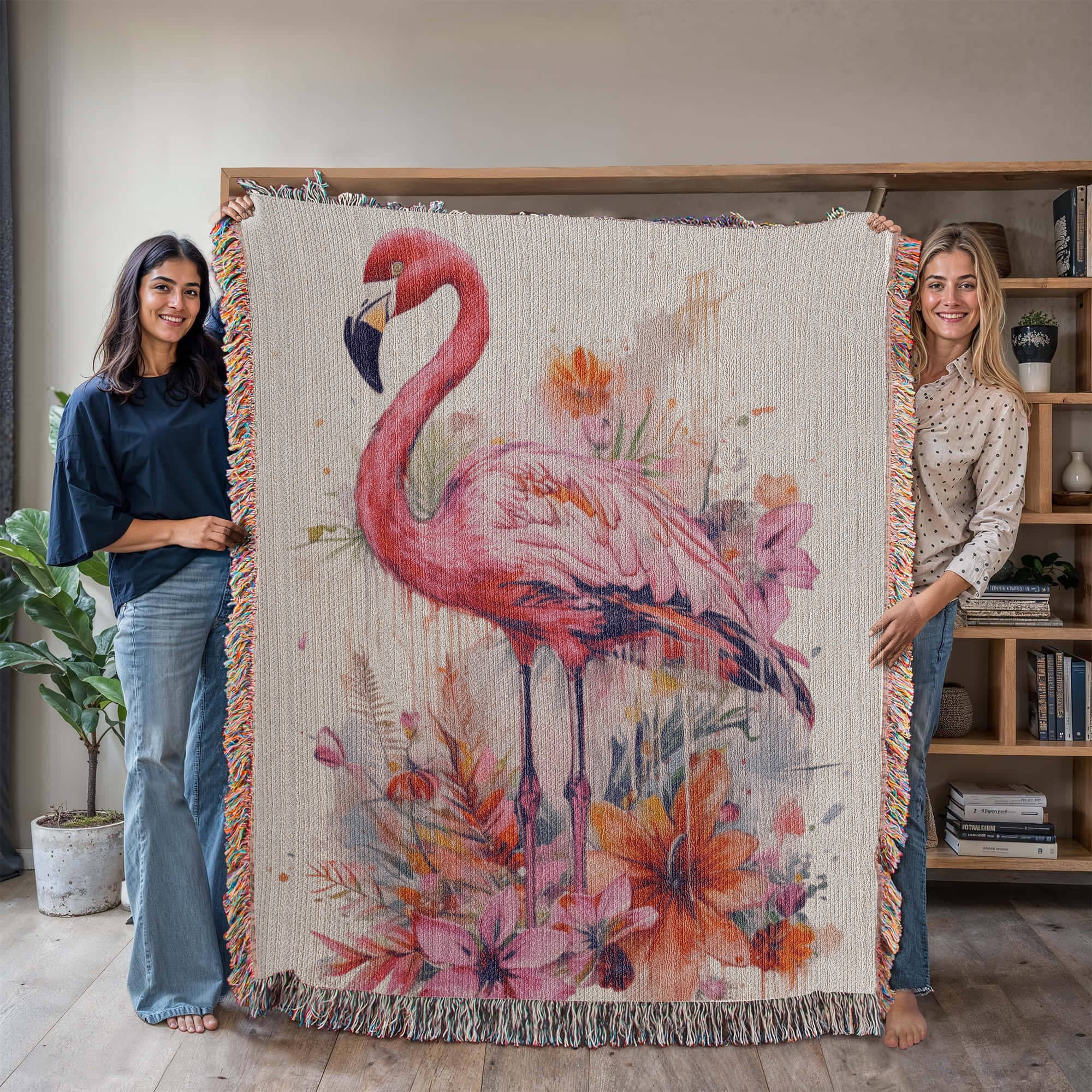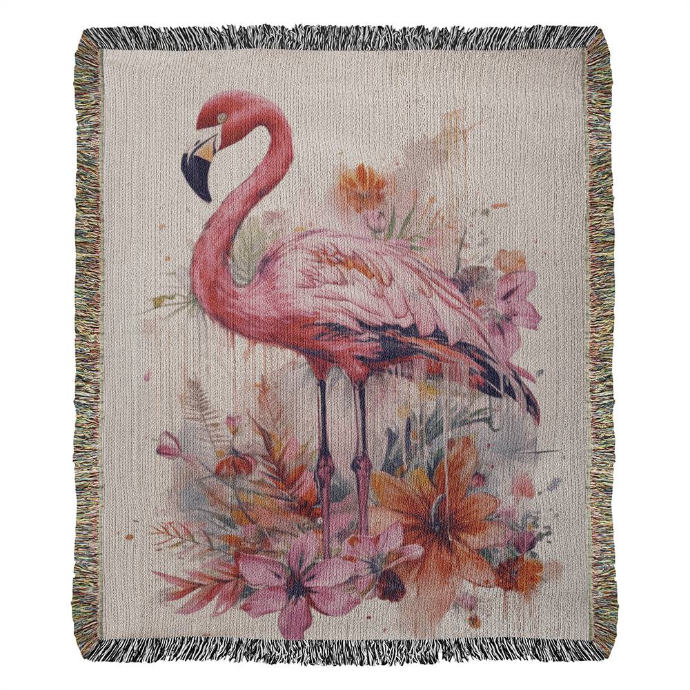 Sunwade Woven Blanket – Watercolor Flamingo in Blush Tones