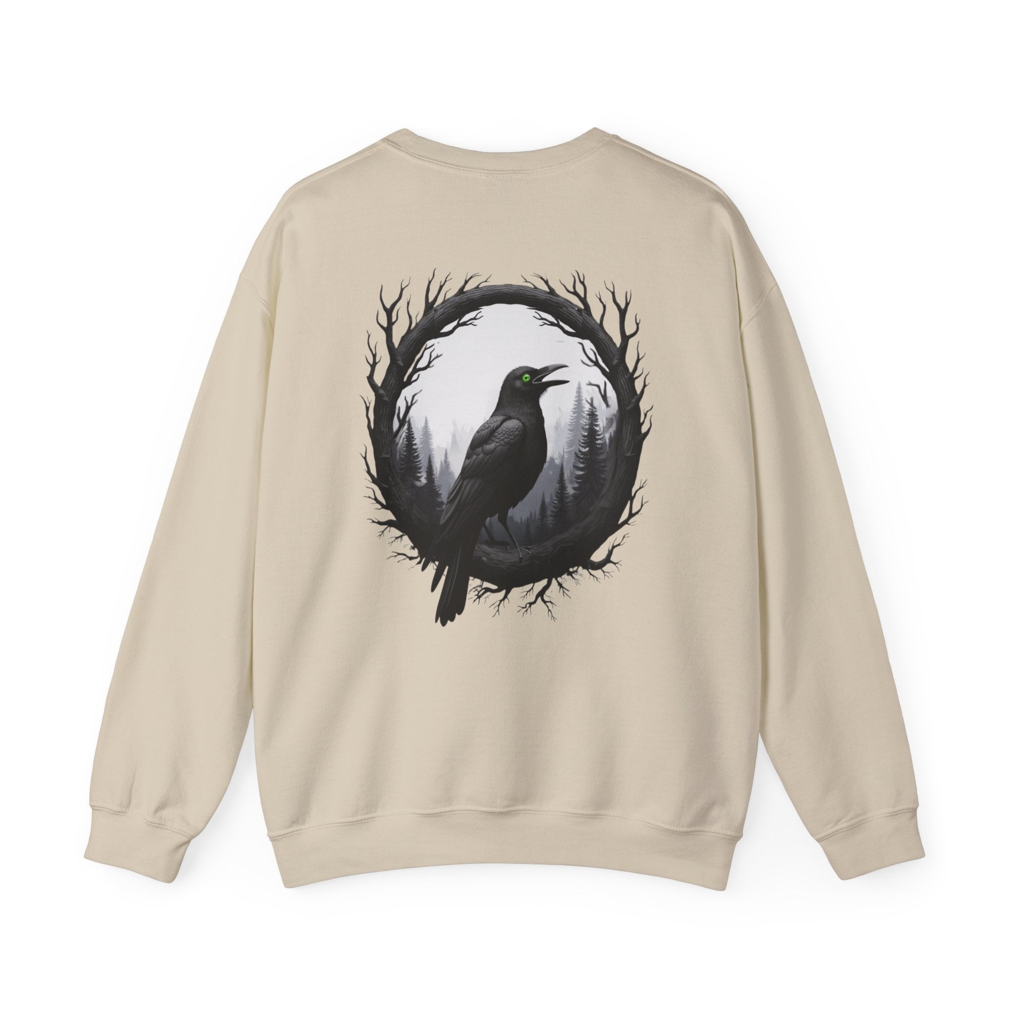 Keeper of secrets. Messenger between worlds. This Raven Spirit crewneck sweatshirt symbolizes wisdom, transformation, and deep intuition. A striking raven design anchors the front, while a subtle complementary detail on the back adds mystery and balance—creating a piece that feels both powerful and quietly knowing.