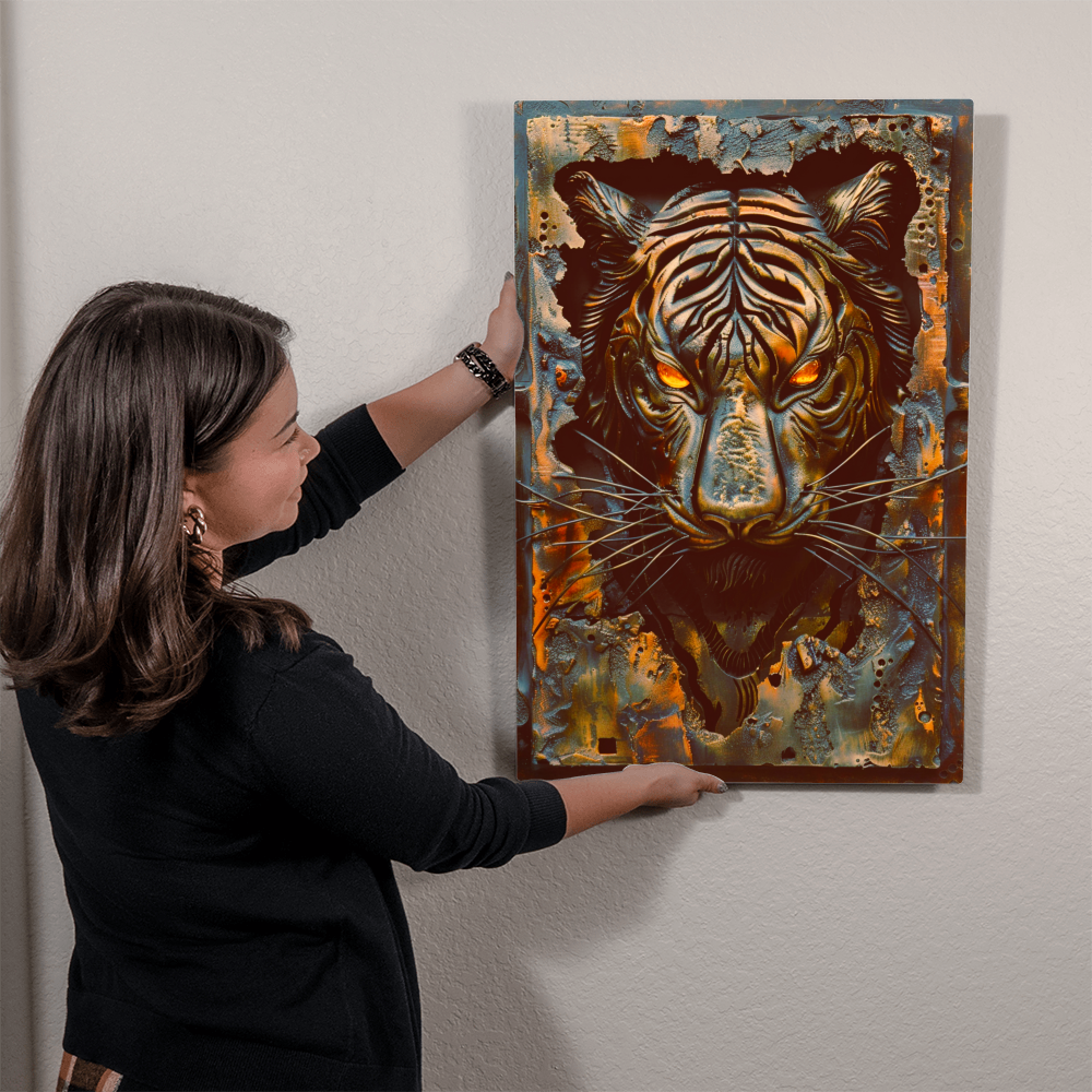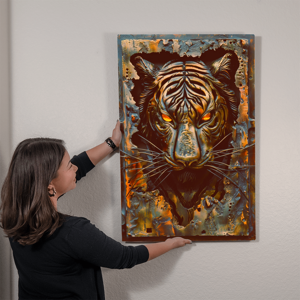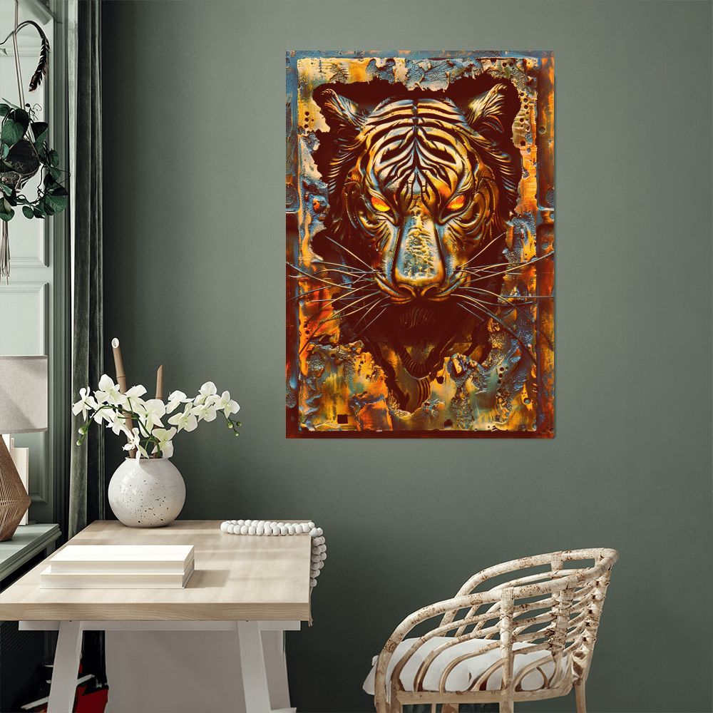 Rhaegor | Tiger Metal Wall Art – High Gloss Print with Embossed-Style Detail (Not 3D)