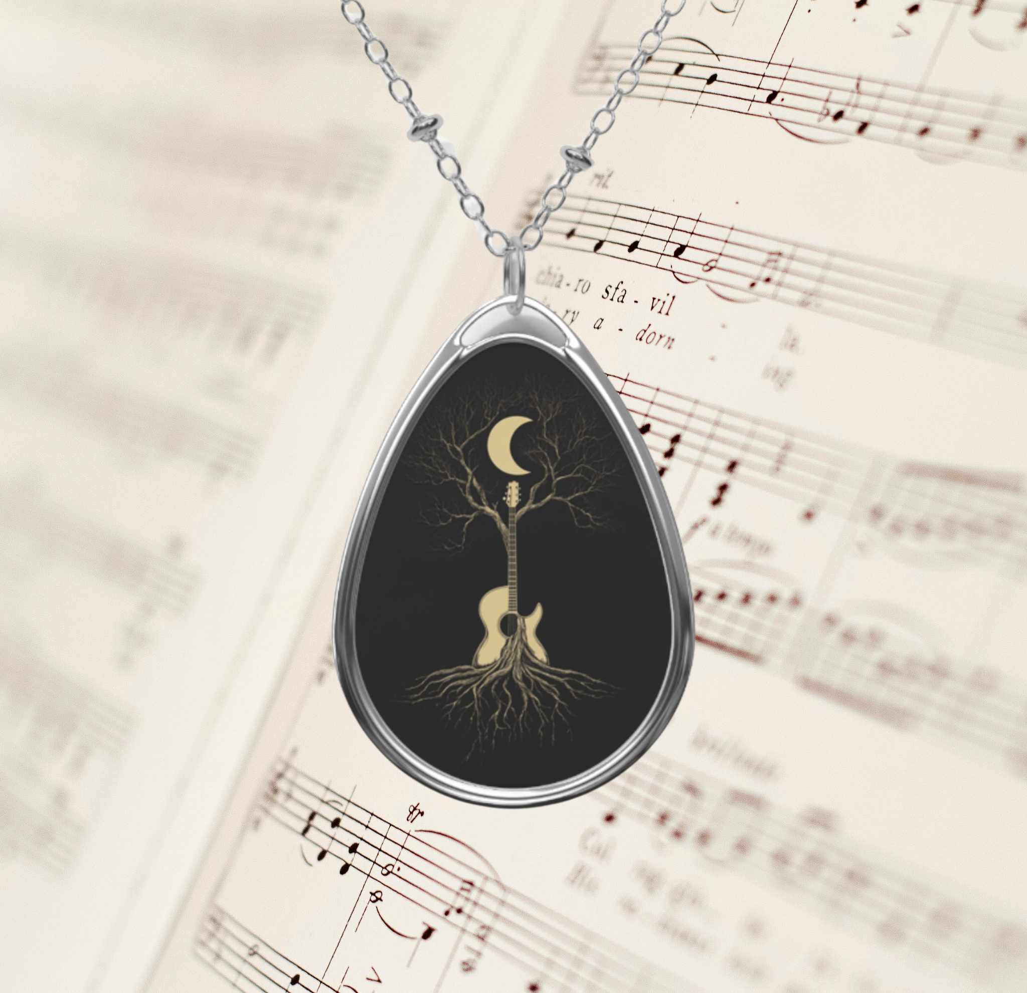 Rooted in Rhythm – Moonlit Guitar Tree Pendant Necklace | Boho Music-Inspired Jewelry for Creatives & Dreamers