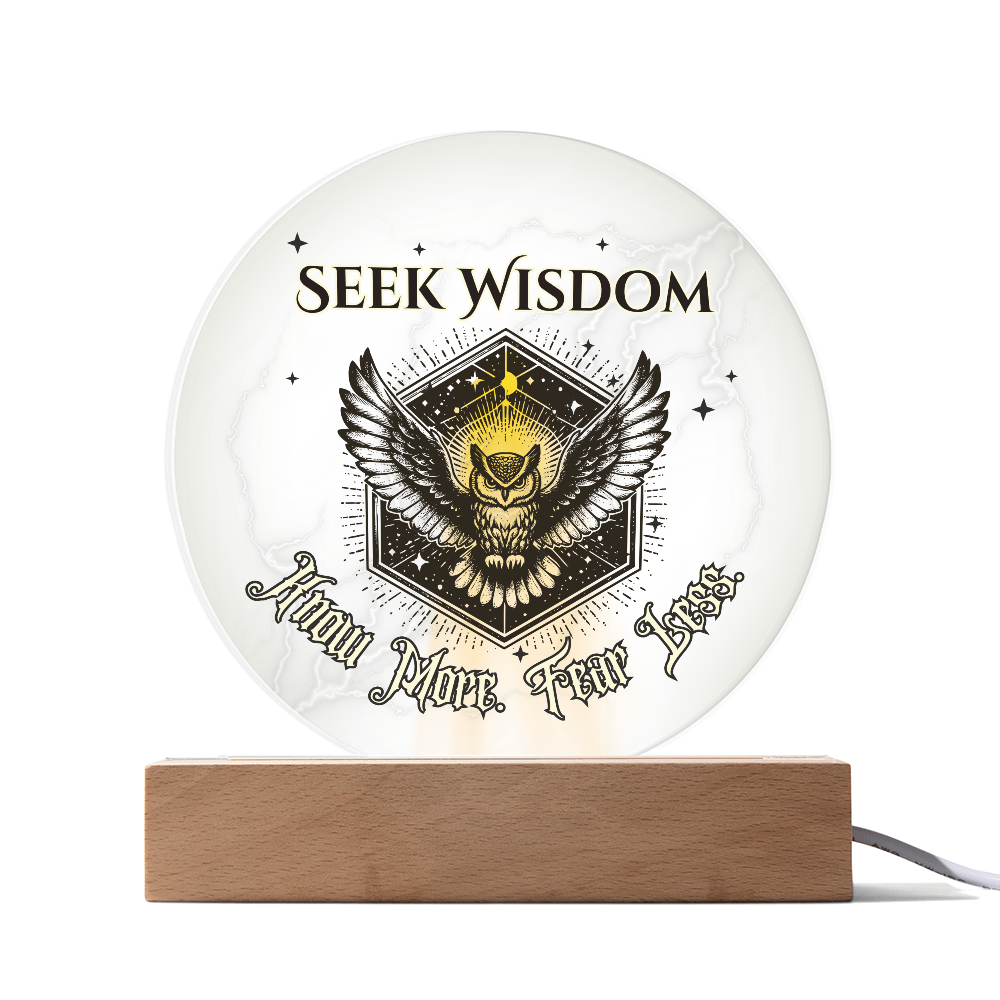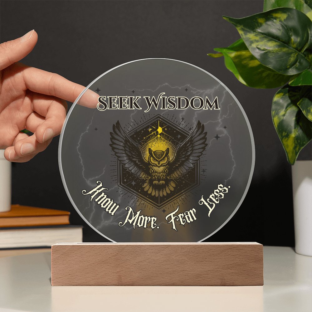 With wings spread wide and eyes sharp with clarity, “Seek Wisdom” is a powerful totem of insight and courage. This radiant owl emerges from the darkness as a guide—illuminating the truth with strength and grace.