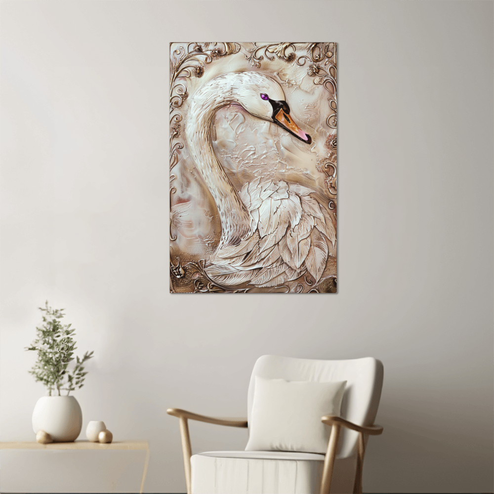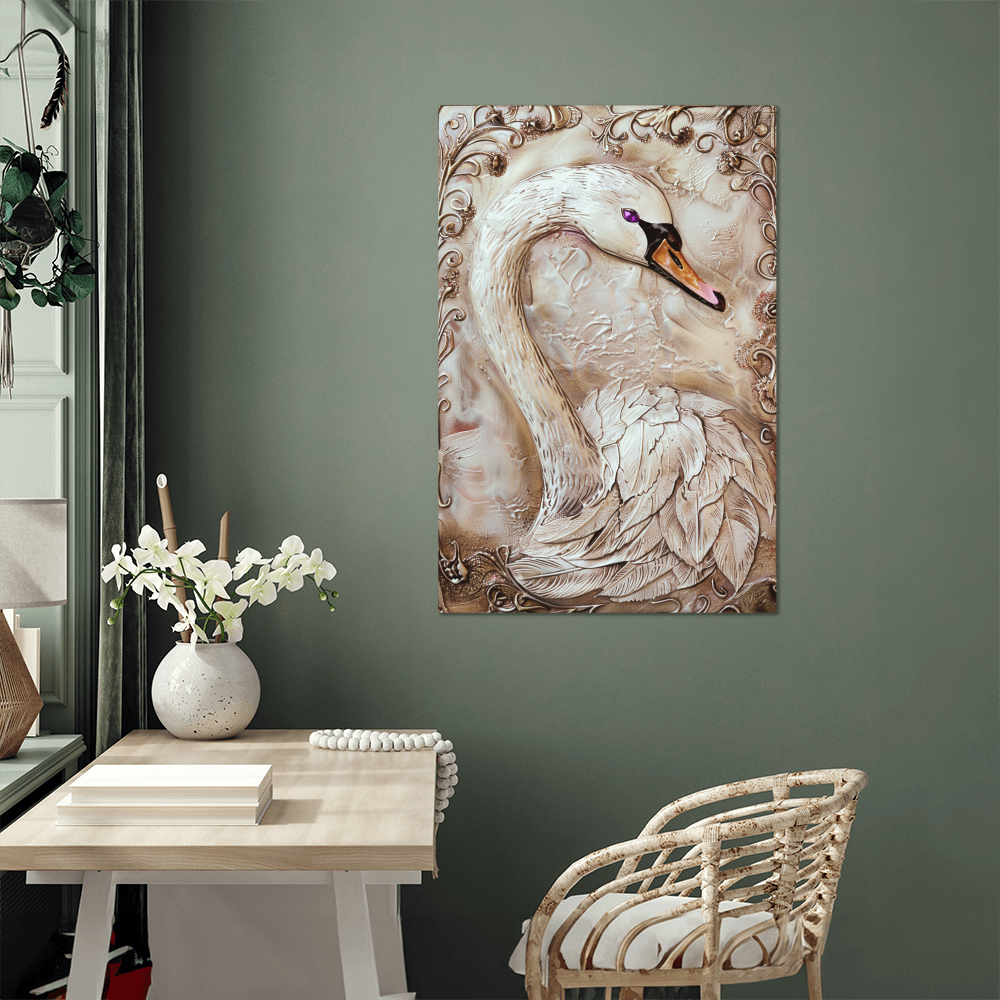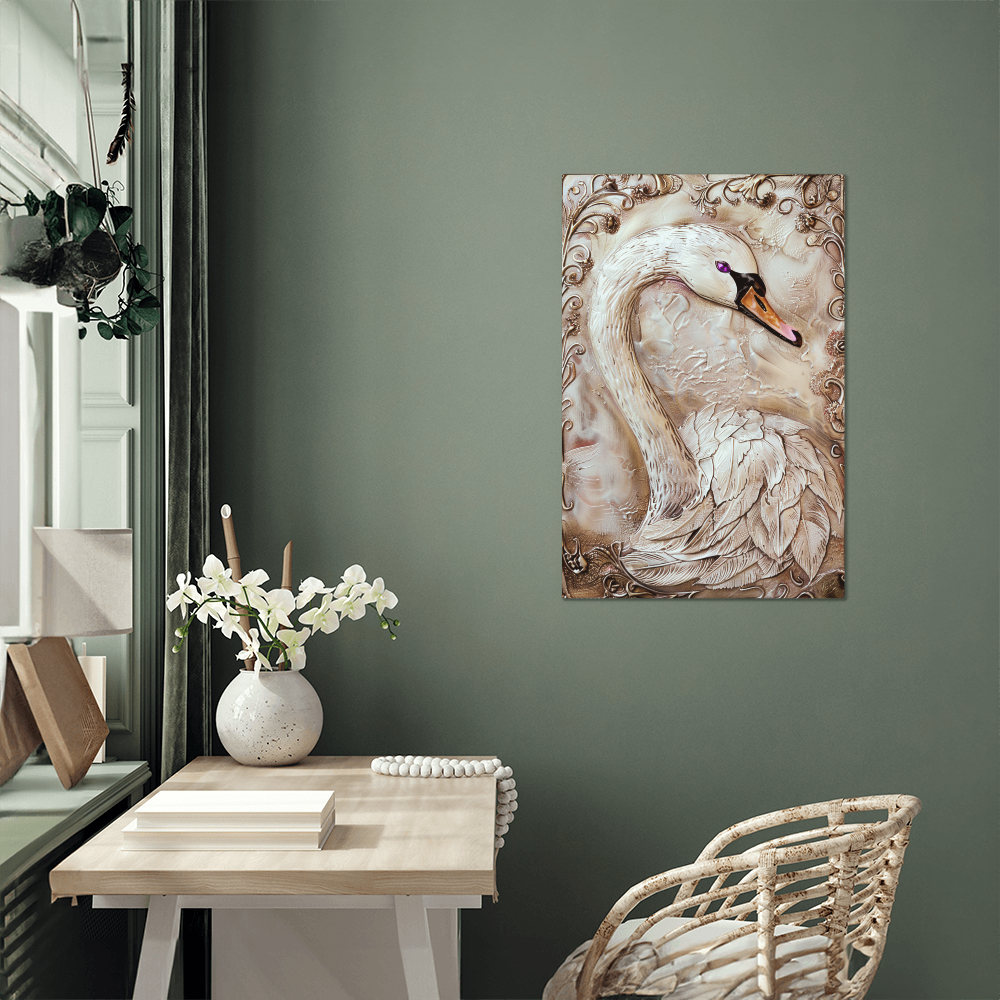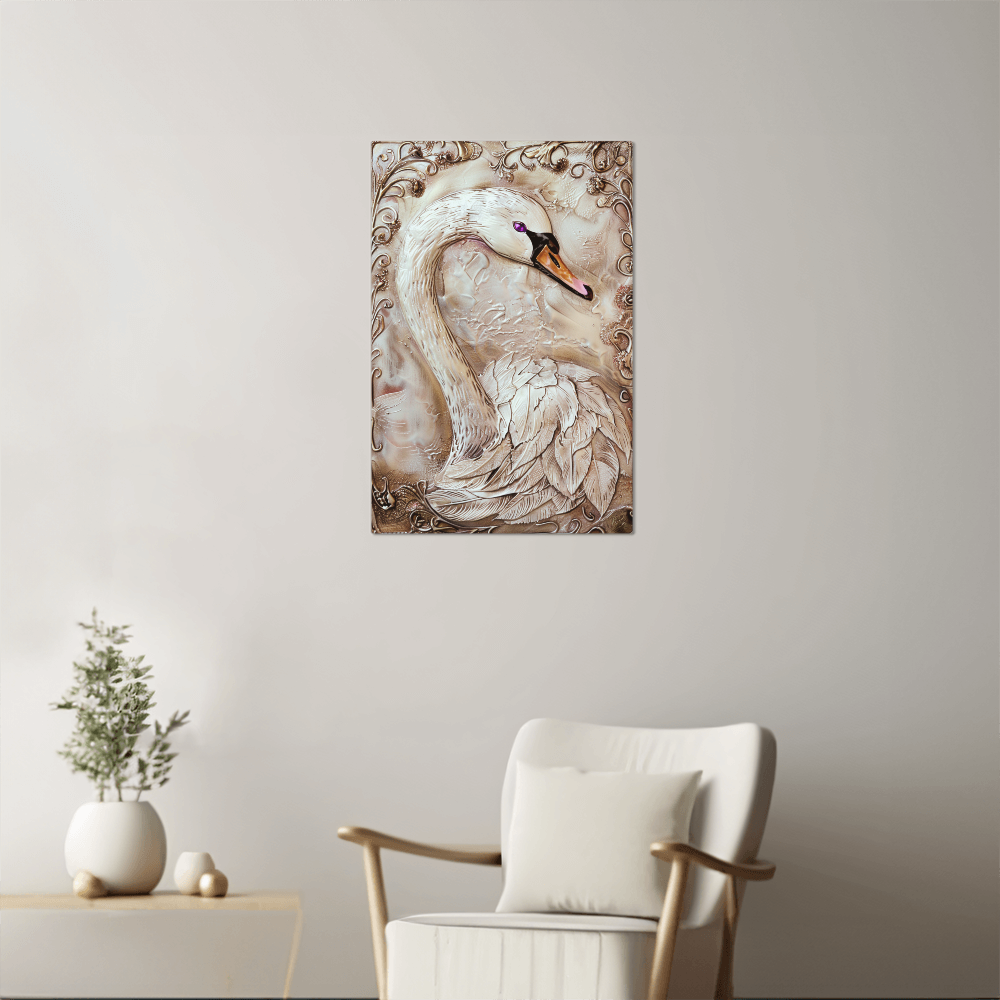 Seraphine | Swan Metal Wall Art – High Gloss Print with Embossed-Style Detail (Not 3D)
