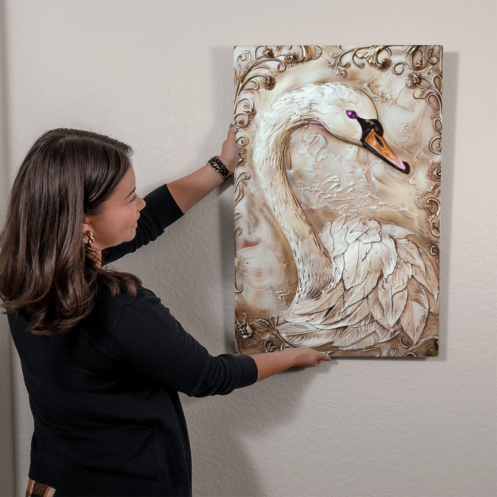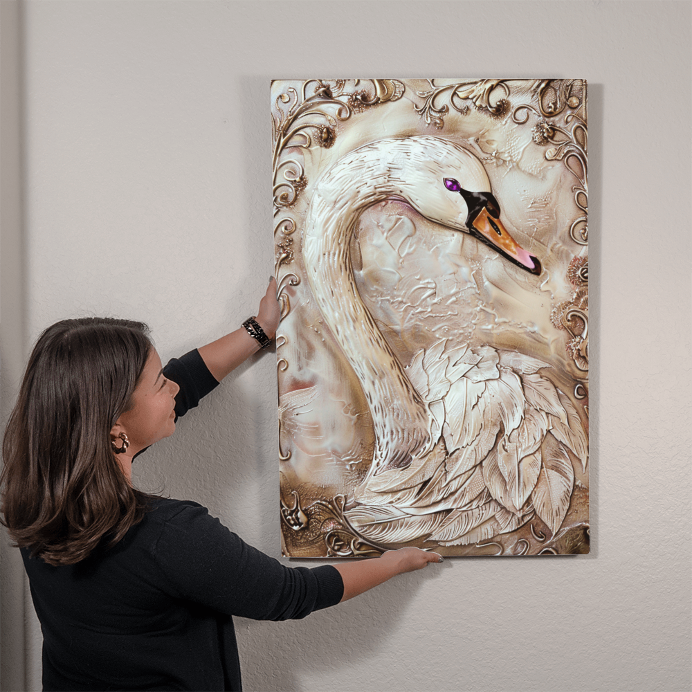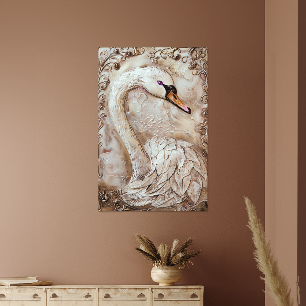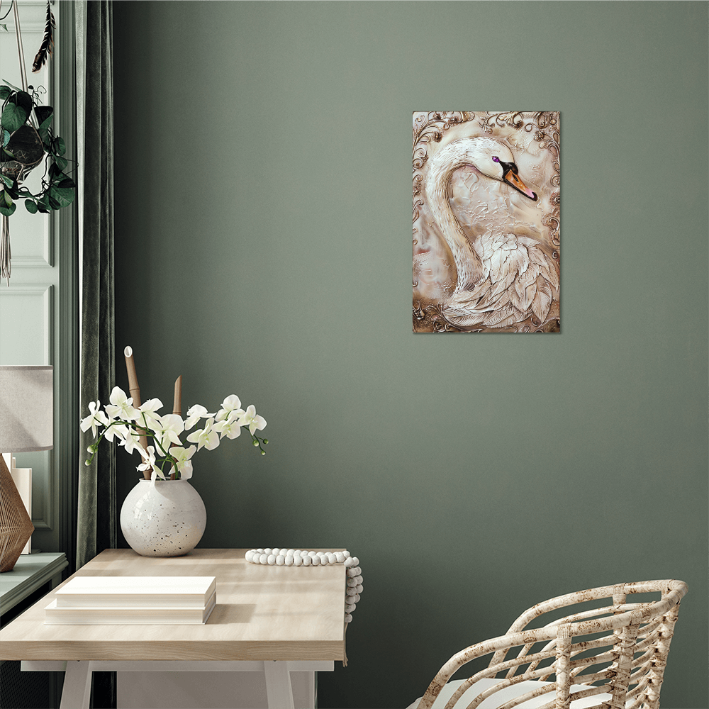 Seraphine | Swan Metal Wall Art – High Gloss Print with Embossed-Style Detail (Not 3D)
