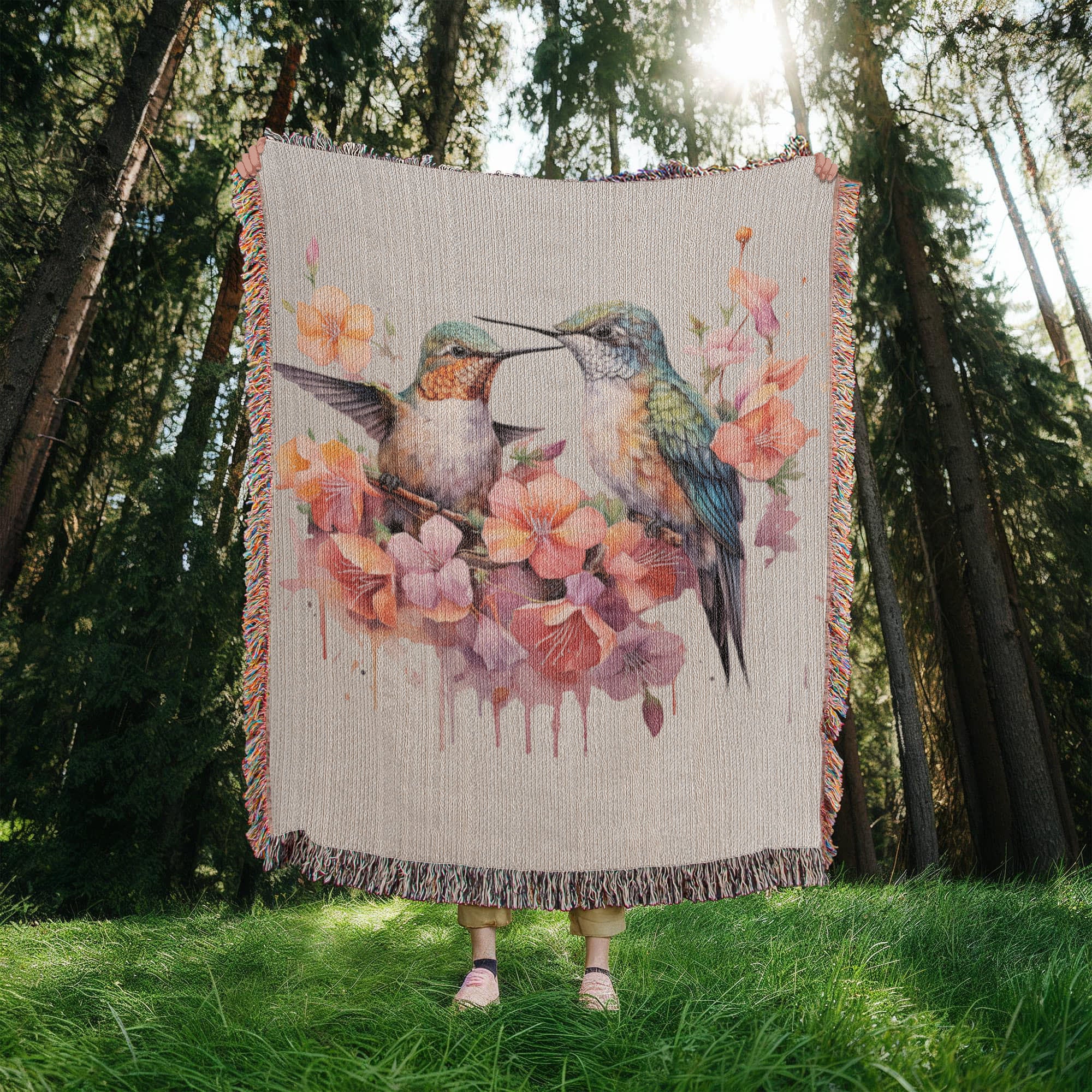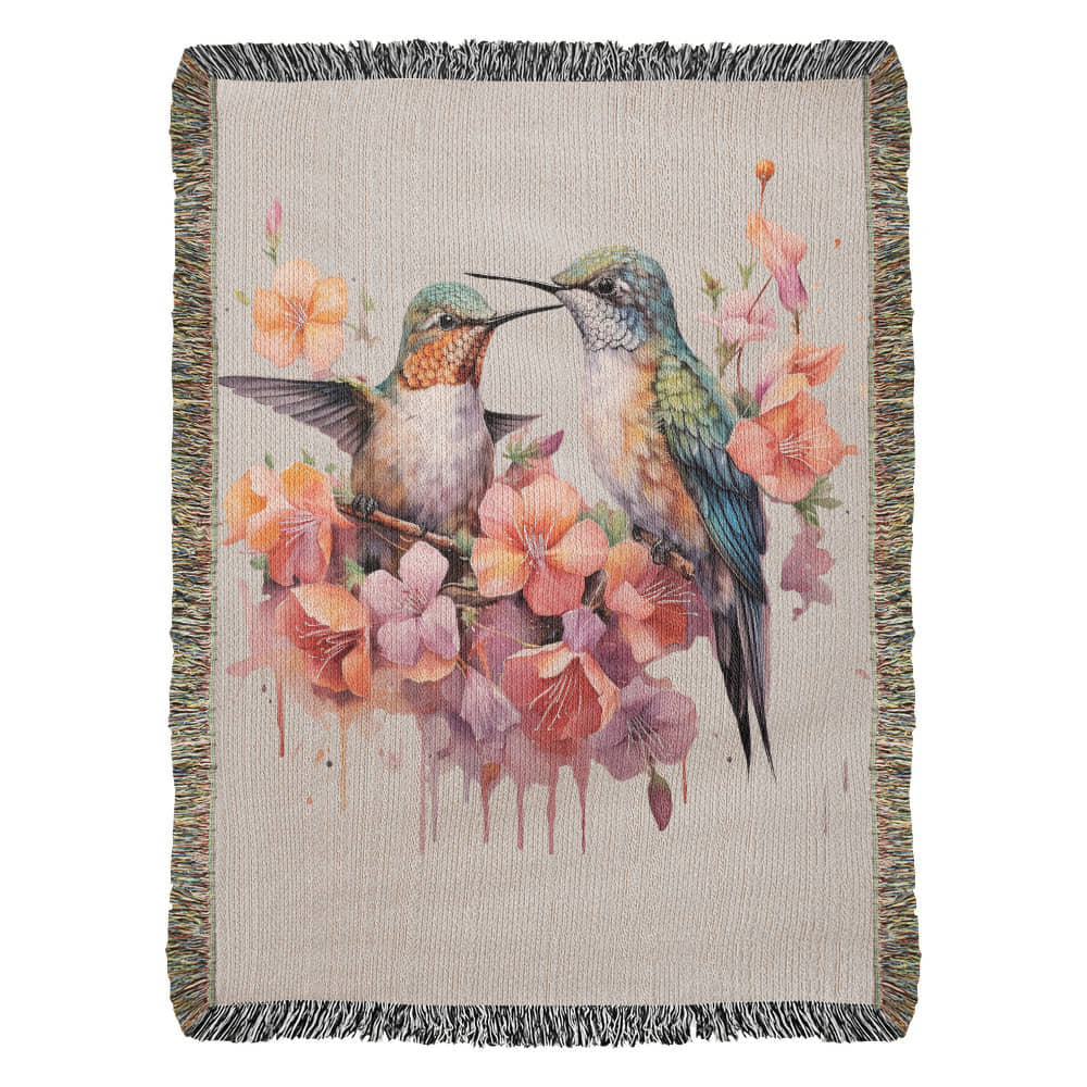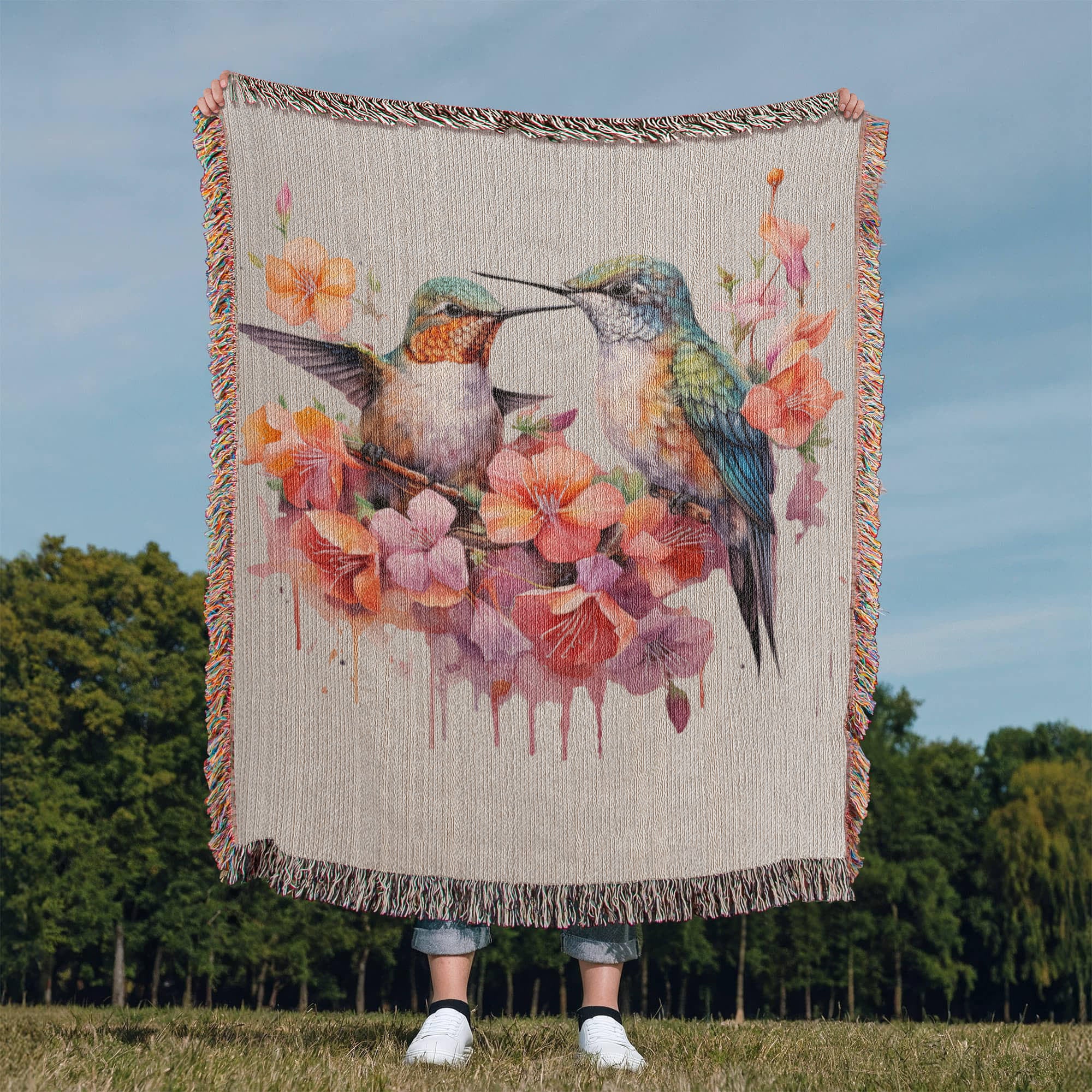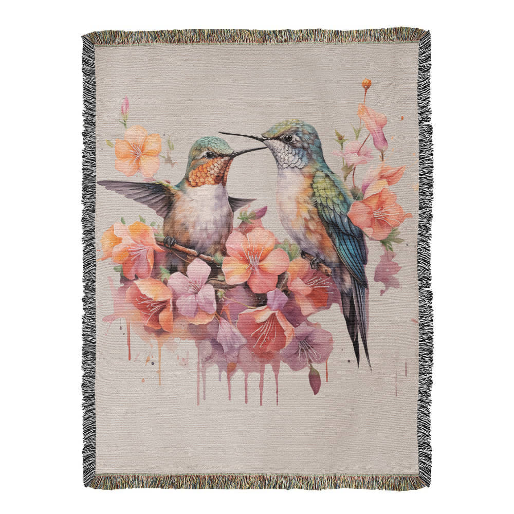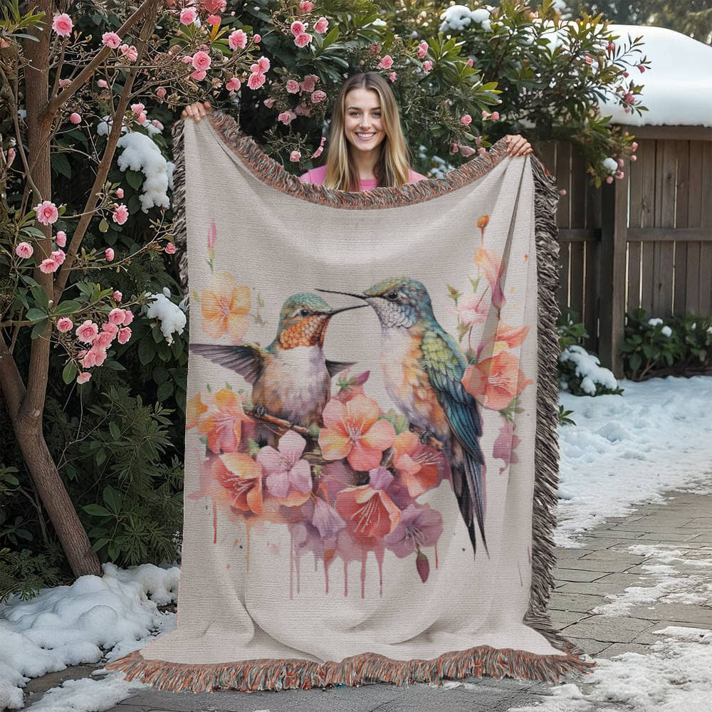 Skykiss Woven Blanket – Watercolor Hummingbirds in Bloom
