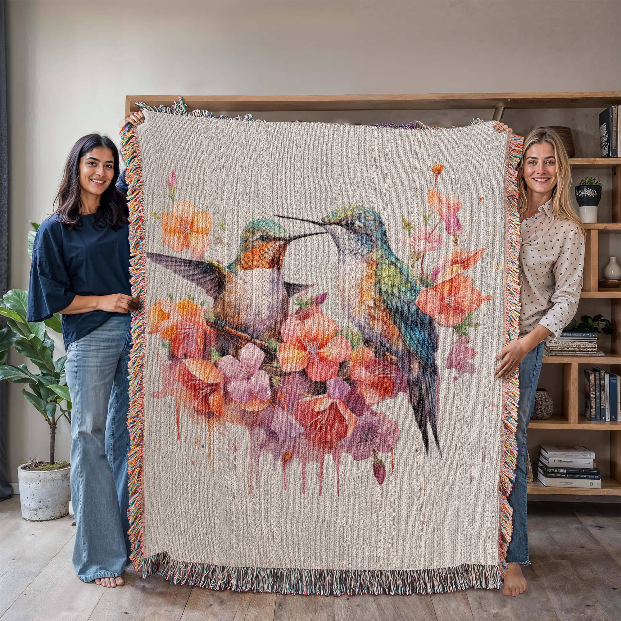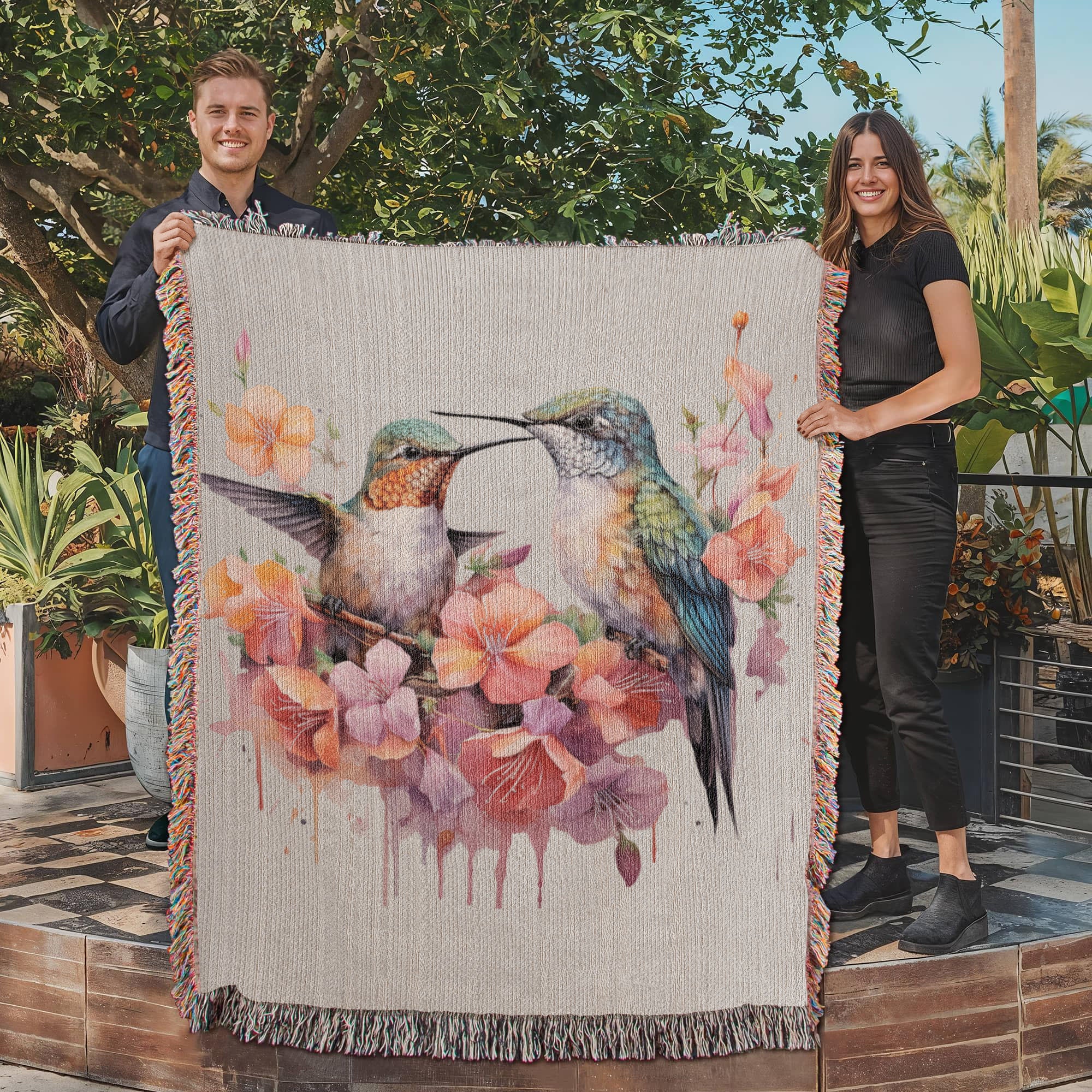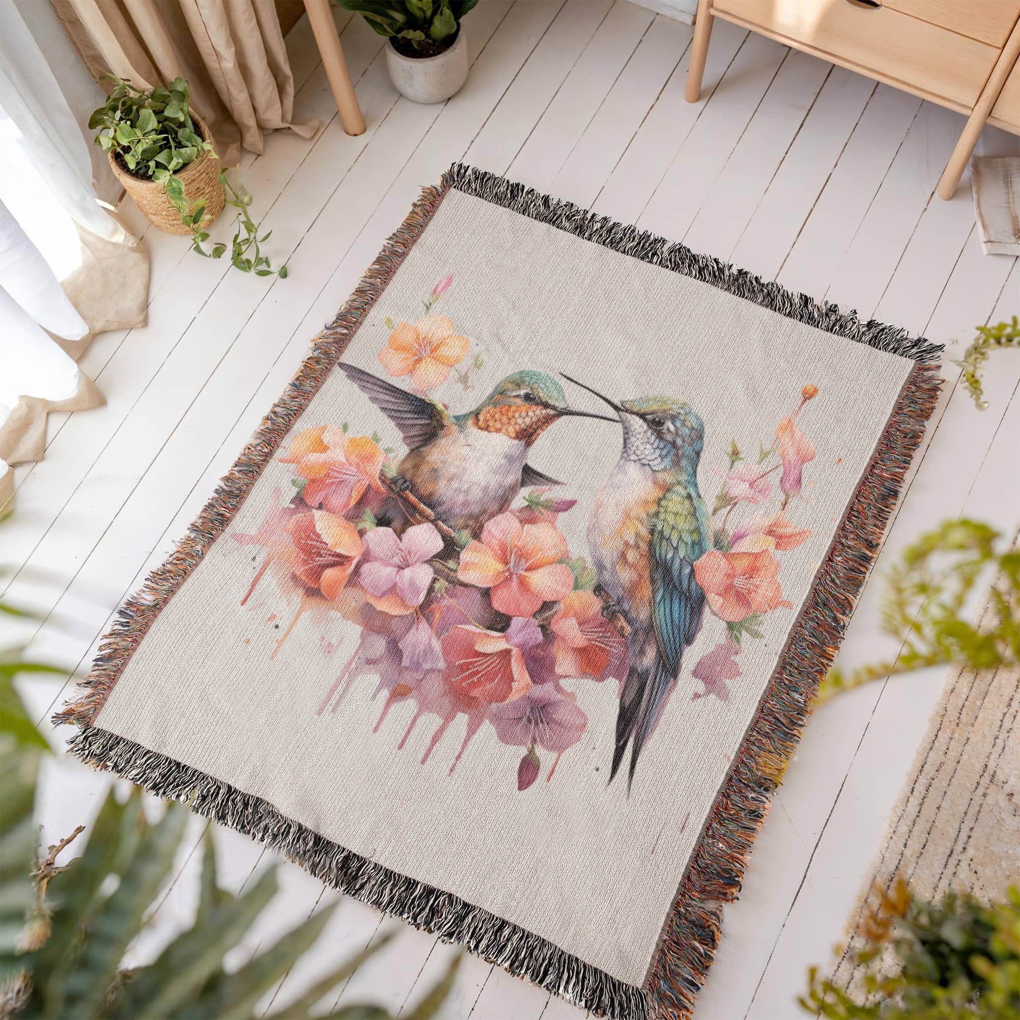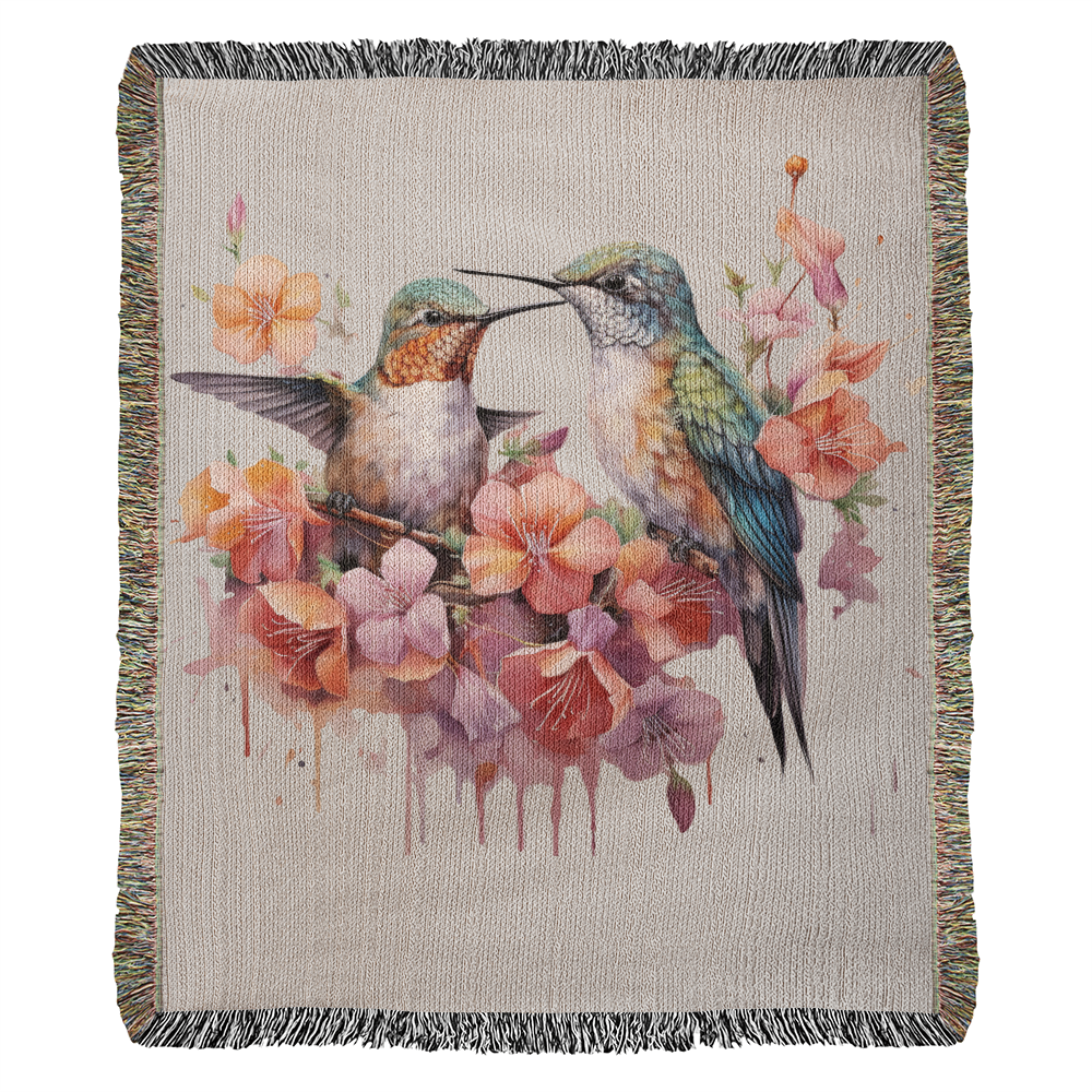 Skykiss Woven Blanket – Watercolor Hummingbirds in Bloom