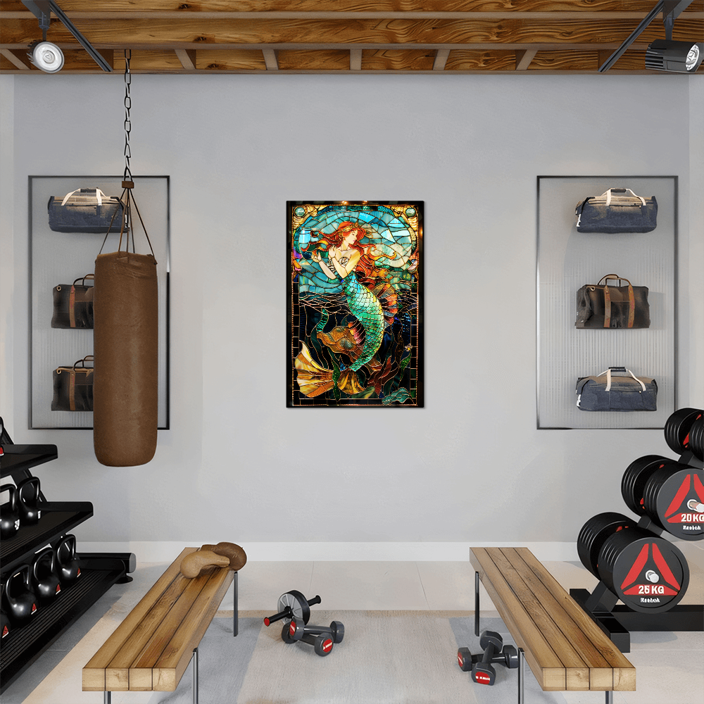 Stained Glass Mermaid Metal Wall Art transforms your space with luminous ocean fantasy and breathtaking stained-glass inspired beauty. This enchanting design features a graceful mermaid with flowing amber hair and shimmering turquoise scales, framed in glowing “leadwork” lines that mimic handcrafted stained glass. Brilliant jewel tones of aqua, gold, coral, and deep sapphire bring the entire underwater world to life, making this a stunning focal point for any room.