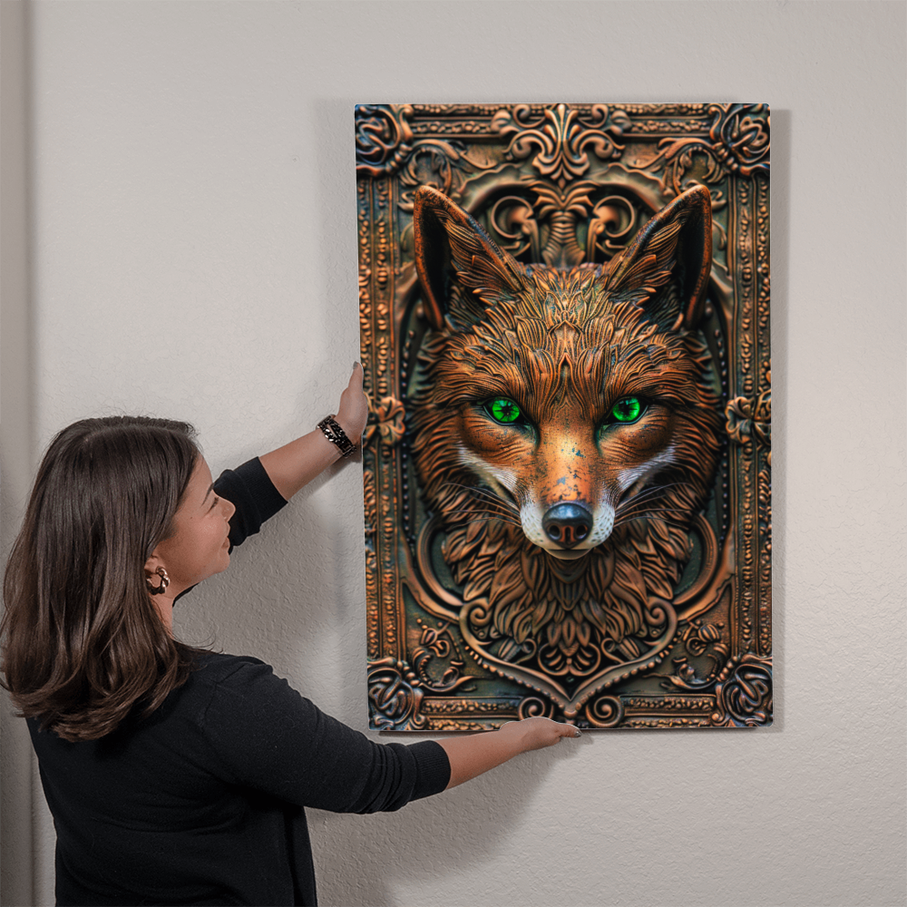 Sylvara | Fox Metal Wall Art – High Gloss Print with Embossed-Style Detail (Not 3D)