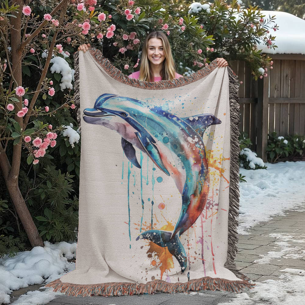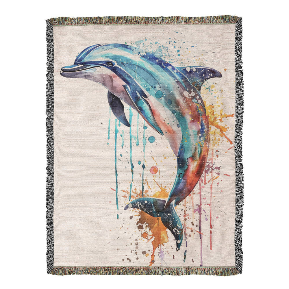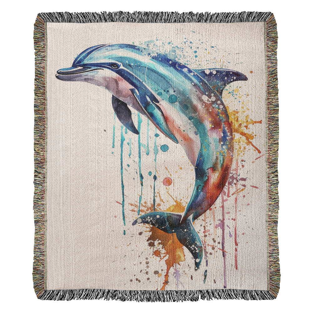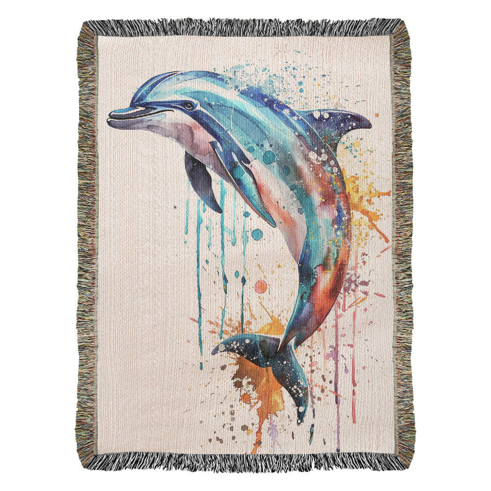 Tidewater Woven Blanket – Watercolor Dolphin in Motion