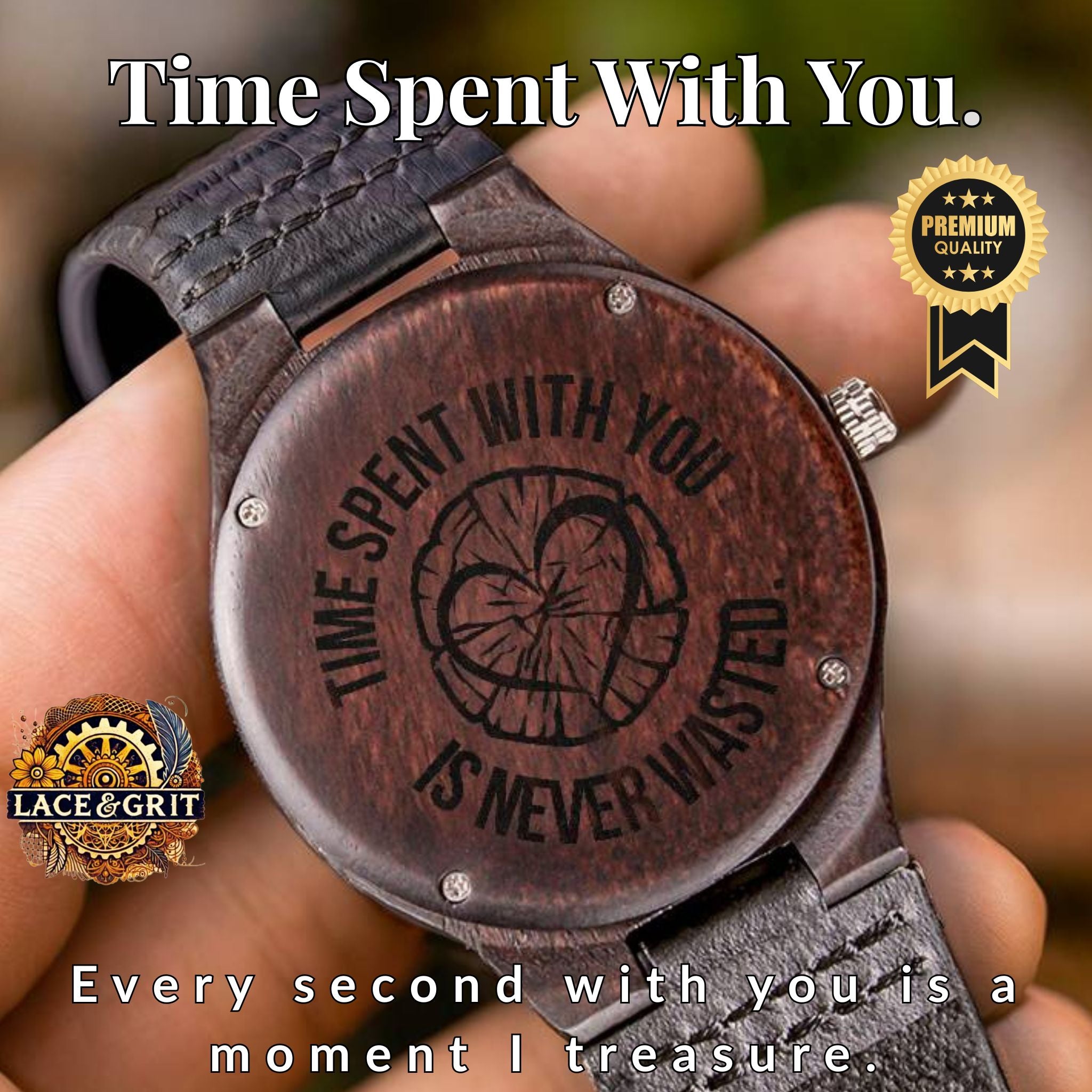 Time Spent With You Is Never Wasted – Tree Ring Heart Engraved Wooden Watch | Nature-Inspired Gift for Him